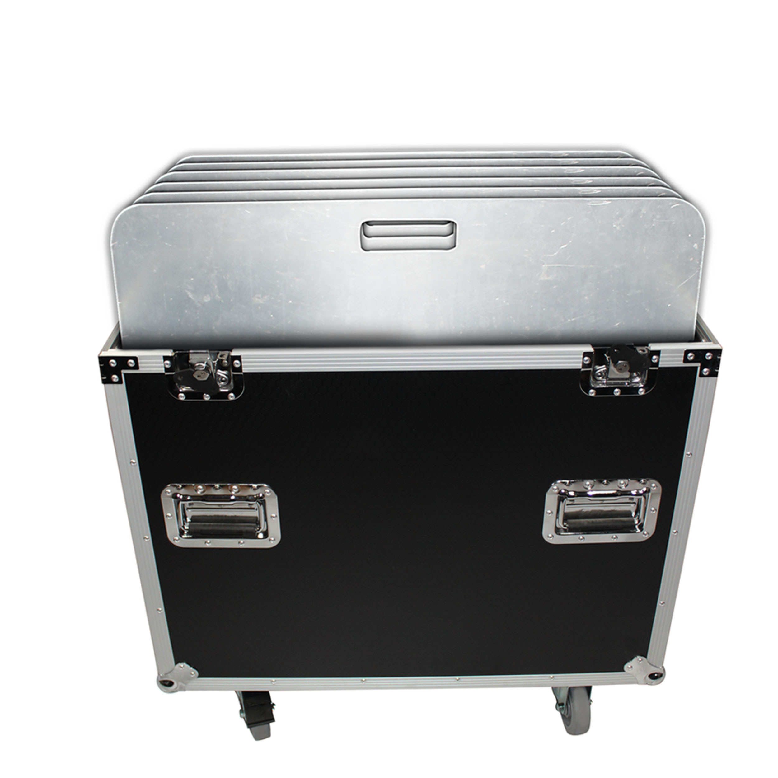 ProX XS-6XBP3030 Flight Case is constructed with our Signature Series Plywood, heavy duty commercial recessed handles, and reinforced steel ball corners for years of on the road use. Each case holds up to SIX thirty inches by thirty inches (30" x 30") base plates. You can easily move the base plates from truck to your set up site with the four large commercial-grade casters, mounted on a durable 3/4" plywood caster base, that roll across most surfaces with ease.