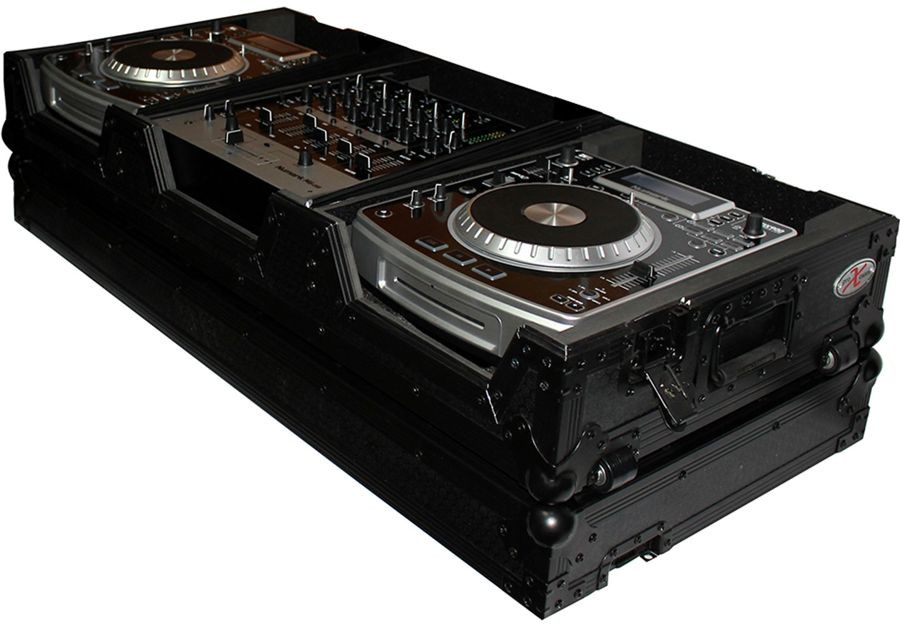 To FitHolds (2X) Large Format CD Players and 1 10" or 12" mixer. Some popular Large Format CD Players: Denon: DN-S3500/3700, DN-HS5500, DN-S5000, DN-S1000 Pioneer: CDJ-800mk2, CDJ-1000MK2/3, DVJ-1000, CDJ-350, CDJ-850 Stanton: C-303, C-313, C-314, C.324 Technics: SL-DZ1200 American Audio: Radius 3000 Gemini: CDJ-210, CDJ-600 Numark: NDX200, NDX400 Gemsound: CD-T525 Some popular 10" Mixers: Rane TTM-56S, TTM57SL Numark M1USB, M2, M3, X5, X6, X9 Stanton M.203, M.20, SMX.202 Pioneer DJM-350, DJM-400, DJM-909 Vestax PMC280 Behringer VMX300, VMX300USB Gemini PS424X, PS626X Some popular 12" Mixers: Pioneer: DJM-800, DJM-700, DJM-600 Behringer: DDM-4000, DDM4000, DJX-750, DJX-700, DX626 Denon: DN-X1500, DN-X1600 American Audio: MX-1400 Allen & Heath: Xone:42 Numark: M6 USB, X6 Rane: TTM-56, TTM-56S, TTM-57SL Vestax: PMC-280 Stanton: SMX.202