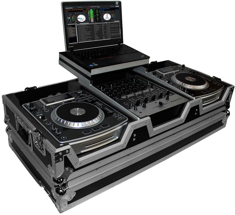 To FitHolds (2X) Large Format CD Players and 1 10" or 12" mixer Some popular Large Format CD Players: Denon: SC3900, DN-S3500/3700, DN-HS5500, DN-S5000, DN-S1000 Pioneer: CDJ-900, CDJ-800mk2, CDJ-1000MK2/3, DVJ-1000, CDJ-350, CDJ-850 Stanton: C-303, C-313, C-314, C.324 Technics: SL-DZ1200 American Audio: Radius 3000 Gemini: CDJ-210, CDJ-600 Numark: NDX200, NDX400 Gemsound: CD-T525 Some popular 12" Mixers: Pioneer: DJM-800, DJM-700, DJM-600 Behringer: DDM-4000, DDM4000, DJX-750, DJX-700, DX626 Denon: DN-X1500, DN-X1600 American Audio: MX-1400 Allen & Heath: Xone:42 Numark: M6 USB, X6 Rane: TTM-56, TTM-56S, TTM-57SL Vestax: PMC-280 Stanton: SMX.202 Some popular 10" Mixers: Rane TTM-56S, TTM57SL Numark M1USB, M2, M3, X5, X6, X9 Stanton M.203, M.20, SMX.202 Pioneer DJM-350, DJM-400, DJM-909 Vestax PMC280 Behringer VMX300, VMX300USB Gemini PS424X, PS626X