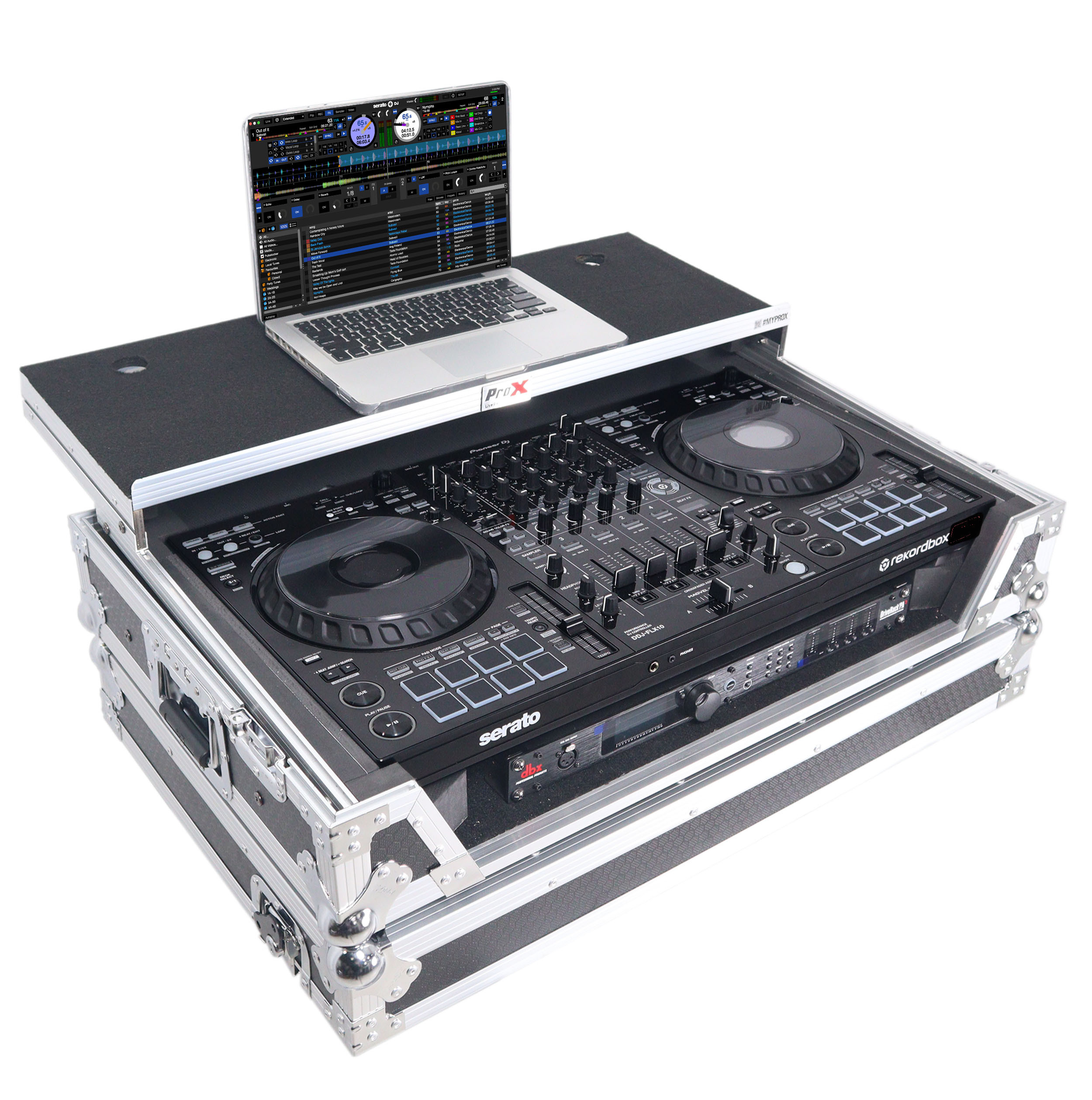ProX XS-DDJFLX10WLT Flight Style Road Case For Pioneer DDJ-FLX10 DJ Controller with Laptop Shelf 1U Rack Space and Wheels. Designed with high-quality materials and workmanship to give you the ultimate security for your digital DJ controller. If you have a passion for your gear and want to always keep it safe, this case will always perform at the highest level. These cases come in a variety of colors and features.