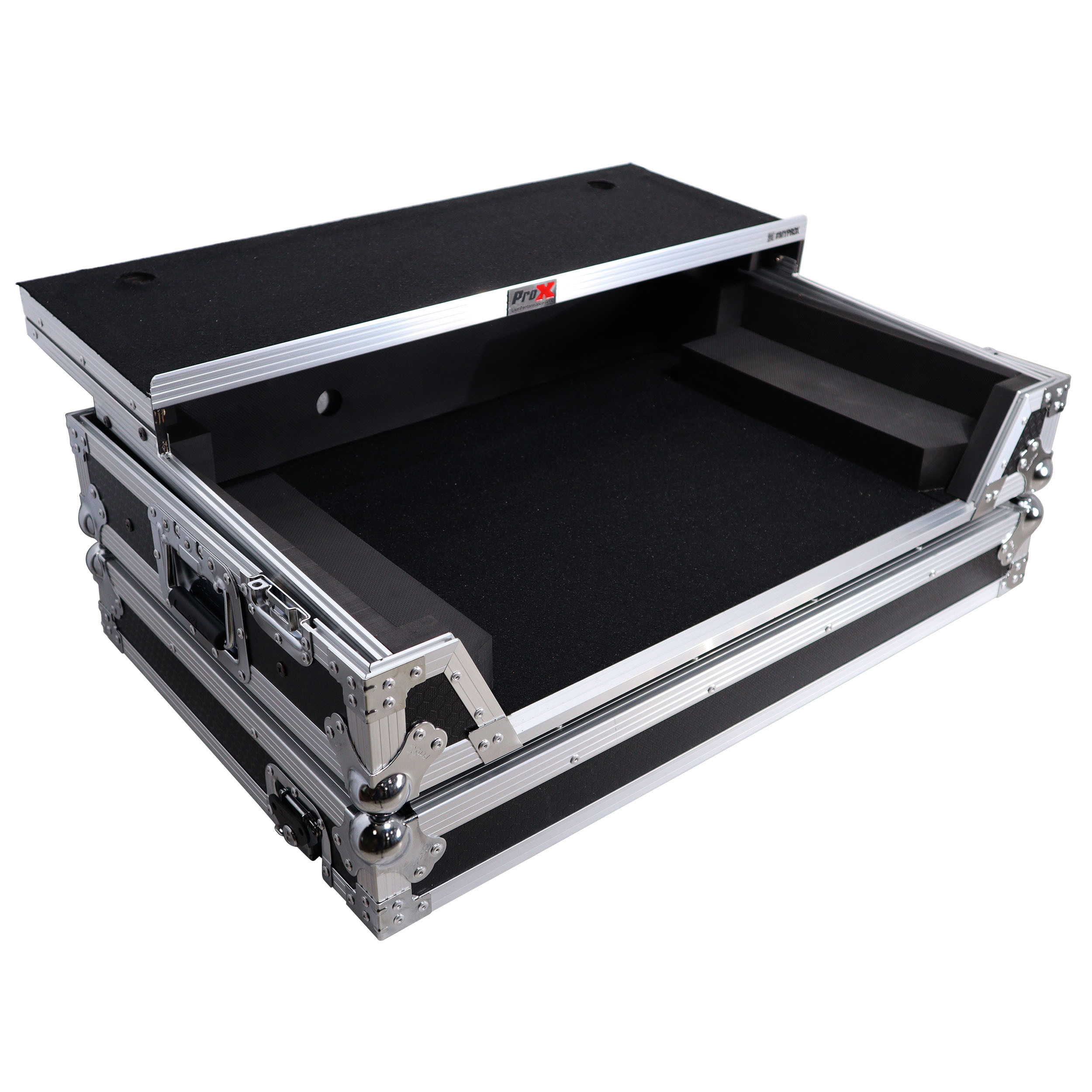 Gig-Ready' SeriesProX Gig-Ready' Series cases are constructed from rugged 3/8" Plywood, reinforced with steel ball corners, spring-loaded recessed padded handles, and twist-locking latches. There is additional space for cables and small accessories at the rear underneath the controller for convenience. The removable front panel allows for easy access to the DJ controller front control knobs, headphones, mic jacks, etc.