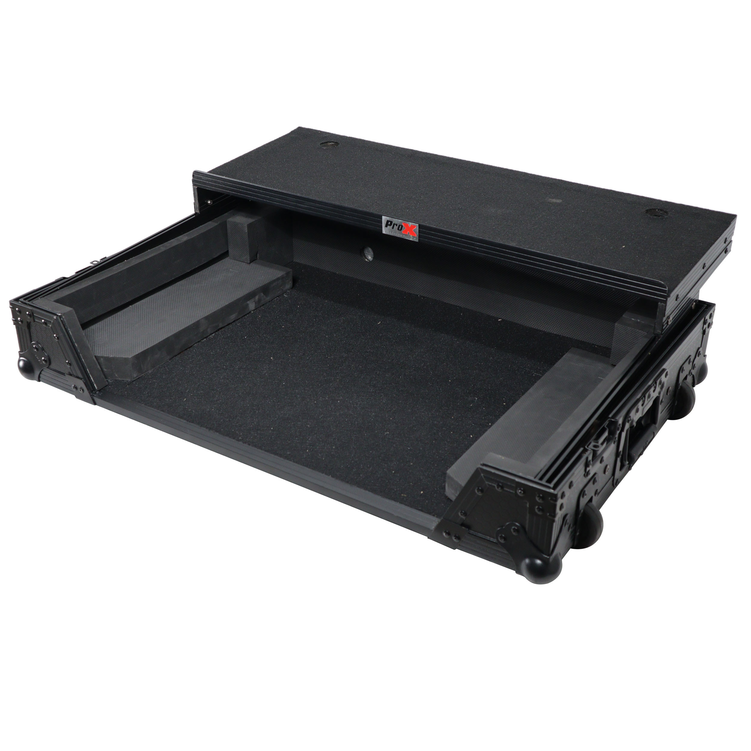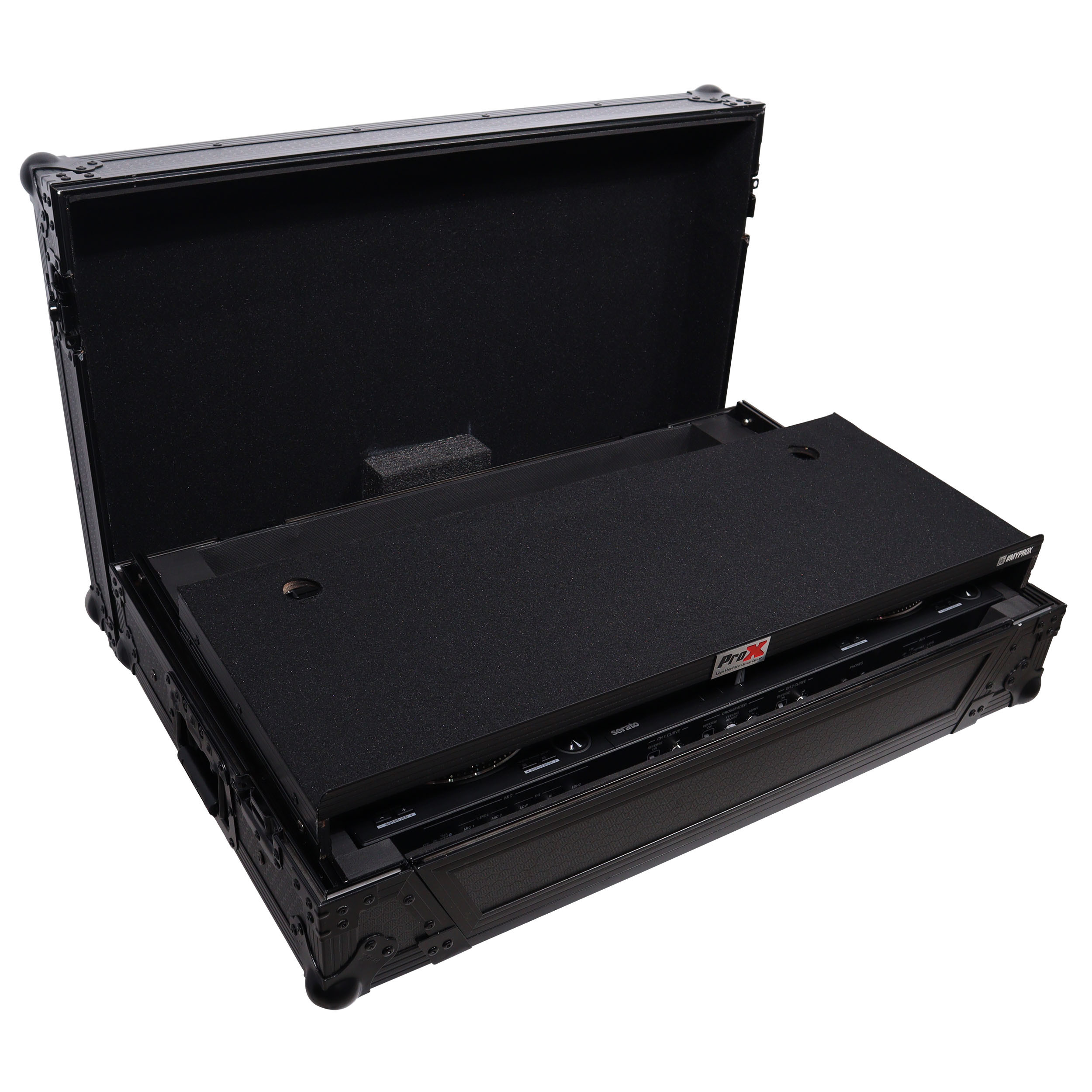 The ProX XS-DDJ-REV5 WLT BL is constructed with our rugged signature 3/8" Gig-Ready Series Plywood, reinforced steel ball corners, and recessed steel padded handles and latches. There is additional space for cables and small accessories in the back and underneath the unit for convenience, and a 1U Rack Space underneath the unit (1U Rail Hardware Included), as well as a removable front panel. The front removable panel allows for easy access to the 1U rack space, front controls, and headphone/mic jacks.