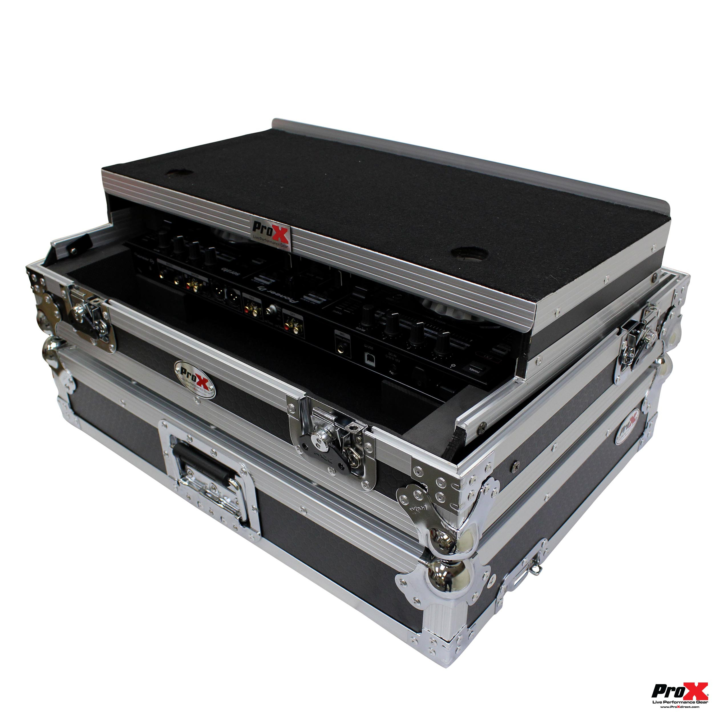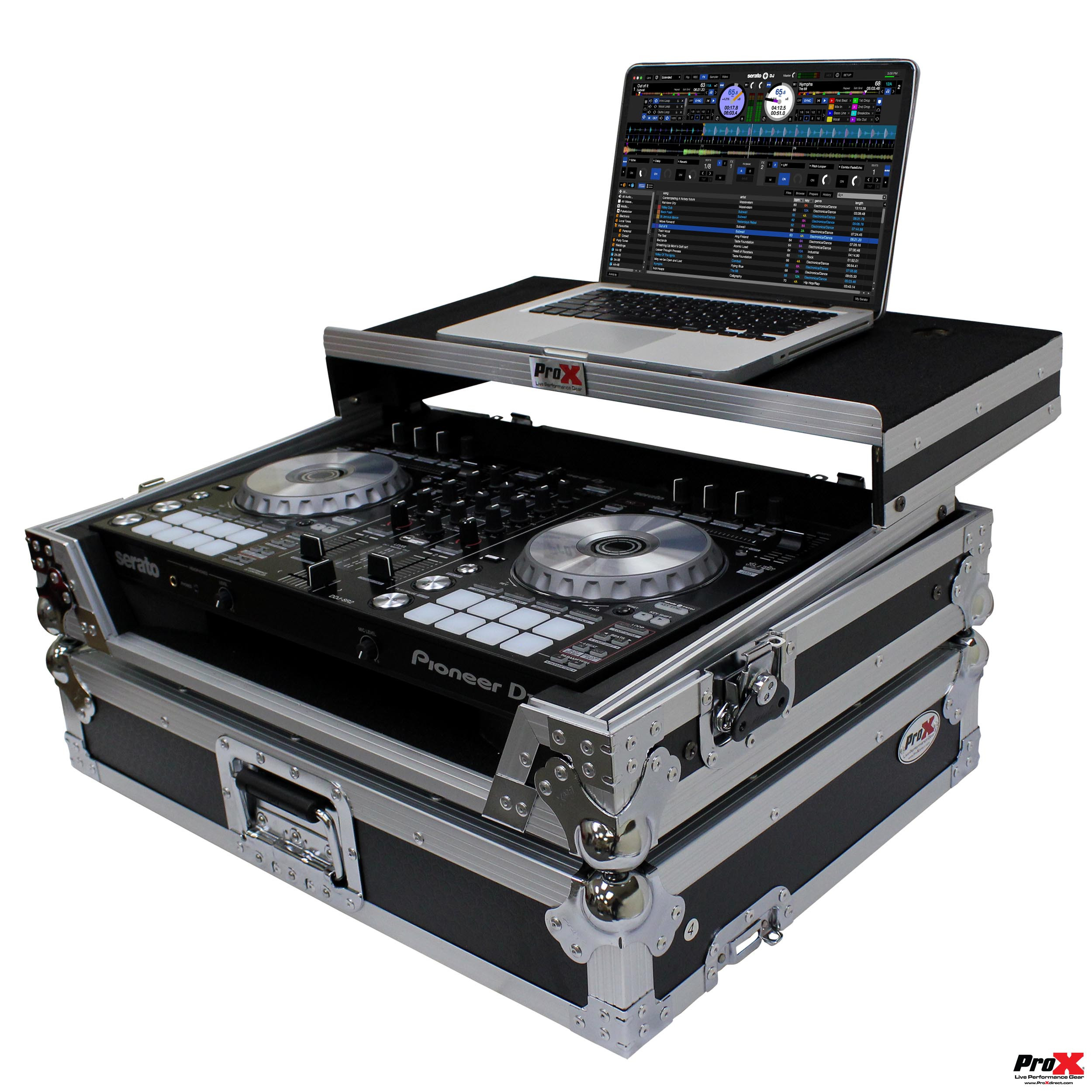 The XS-DDJSR2LT LED case with sliding Laptop Shelf is constructed with our rugged signature 3/8" Gig-Ready Series Plywood, reinforced steel ball corners for protection and easy stacking, and recessed steel paddled handles and latches to protect them from damage during transport. There is additional space for cables and small accessories in the back and underneath the unit for convenience, as well as a removable front panel for you to access front input jacks easily. The front removable panel allows for easy access to the front controls and headphone/mic jacks.