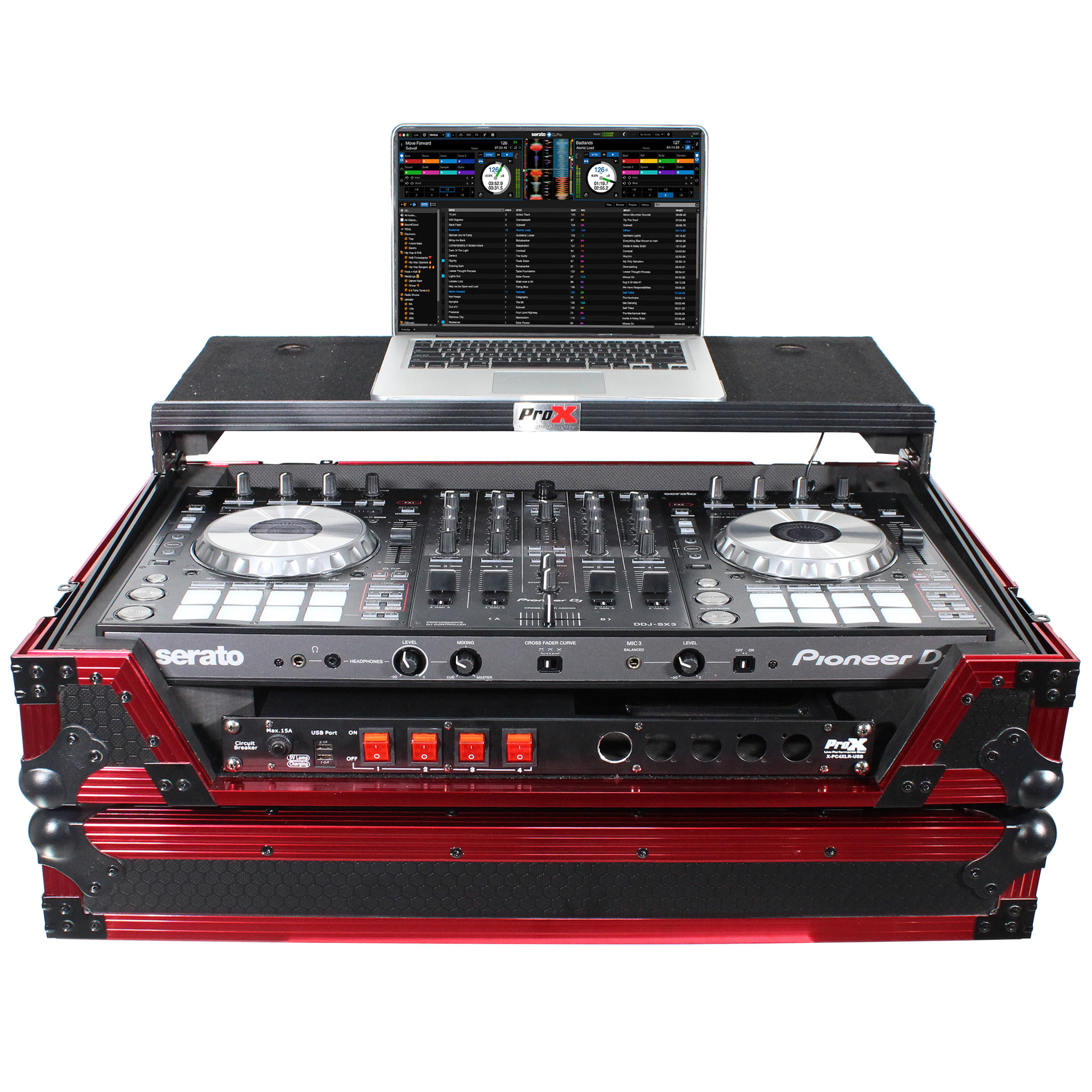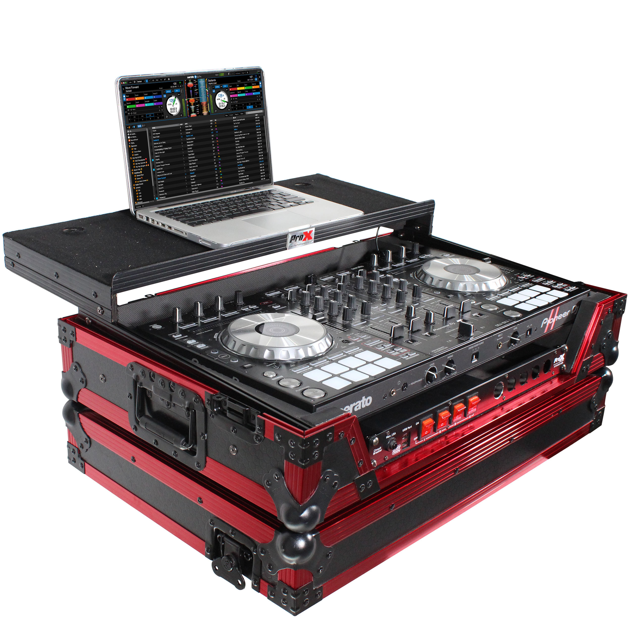 The XS-DDJSX WLT FR LED provides ultimate security for your controller. If you have a passion for your gear and want to keep it safe at all times, this case will perform at the highest level every time. The XS-DDJSX WLT FR LED case with Sliding Laptop Shelf is constructed with a rugged and durable signature Honeycomb Digital' 3/8" Series Plywood, reinforced steel ball corners, as well as recessed steel padded handles and latches. There is additional space for cables and small accessories in the back and underneath the unit for convenience, as well as a removable front panel for you to access front input jacks easily as well as the 1U Rackspace.