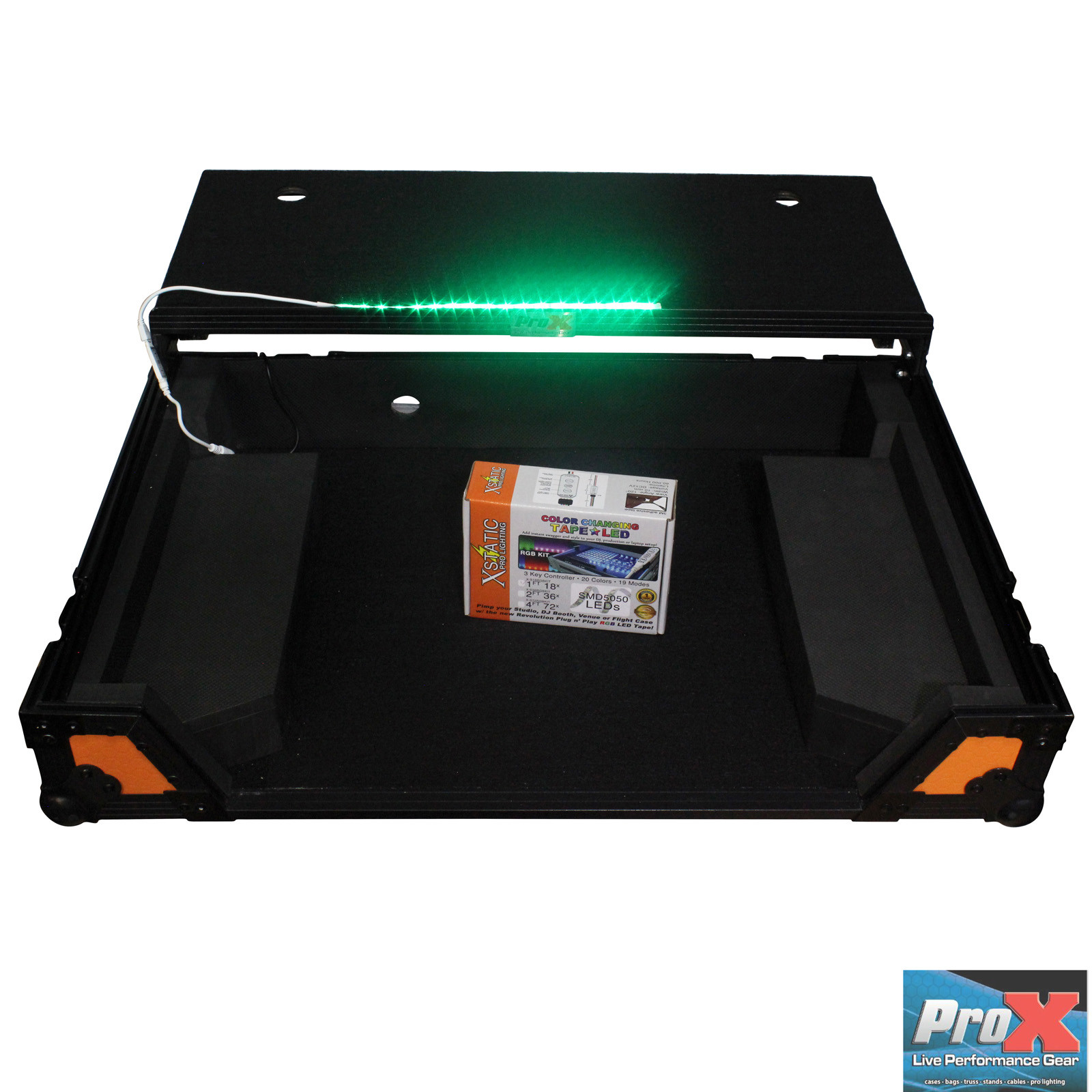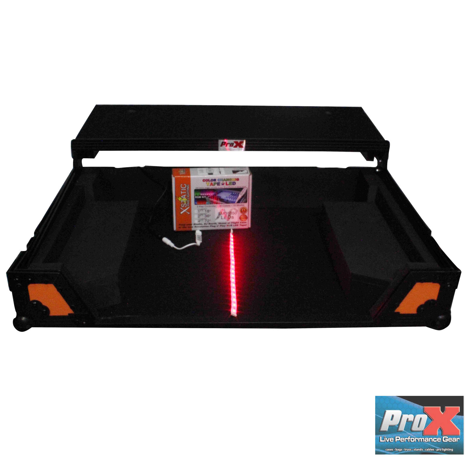 Bonus: The XS-DDJSXWLTOB comes with one Color Changing LED Tape (X-S18RGBKIT); pimp your flight case with the new Revolution Plug n Play RGB LED Tape! X-S18RGBKIT includes a 3-key Controller able to change 20 Colors in 19 Modes. The LED strip tape attaches anywhere you need on the case, including under the laptop shelf to provide overhead lighting on your controller and cable space.