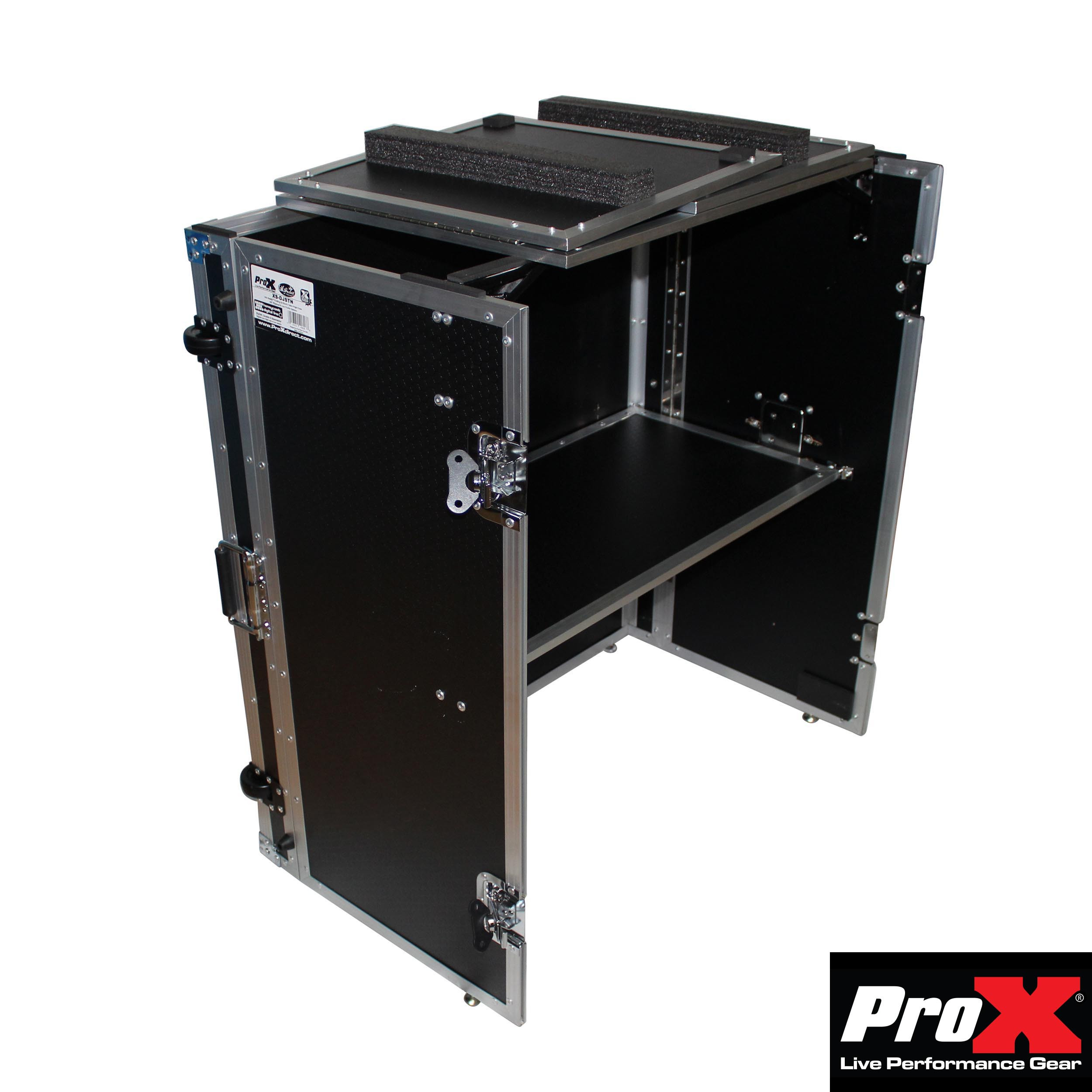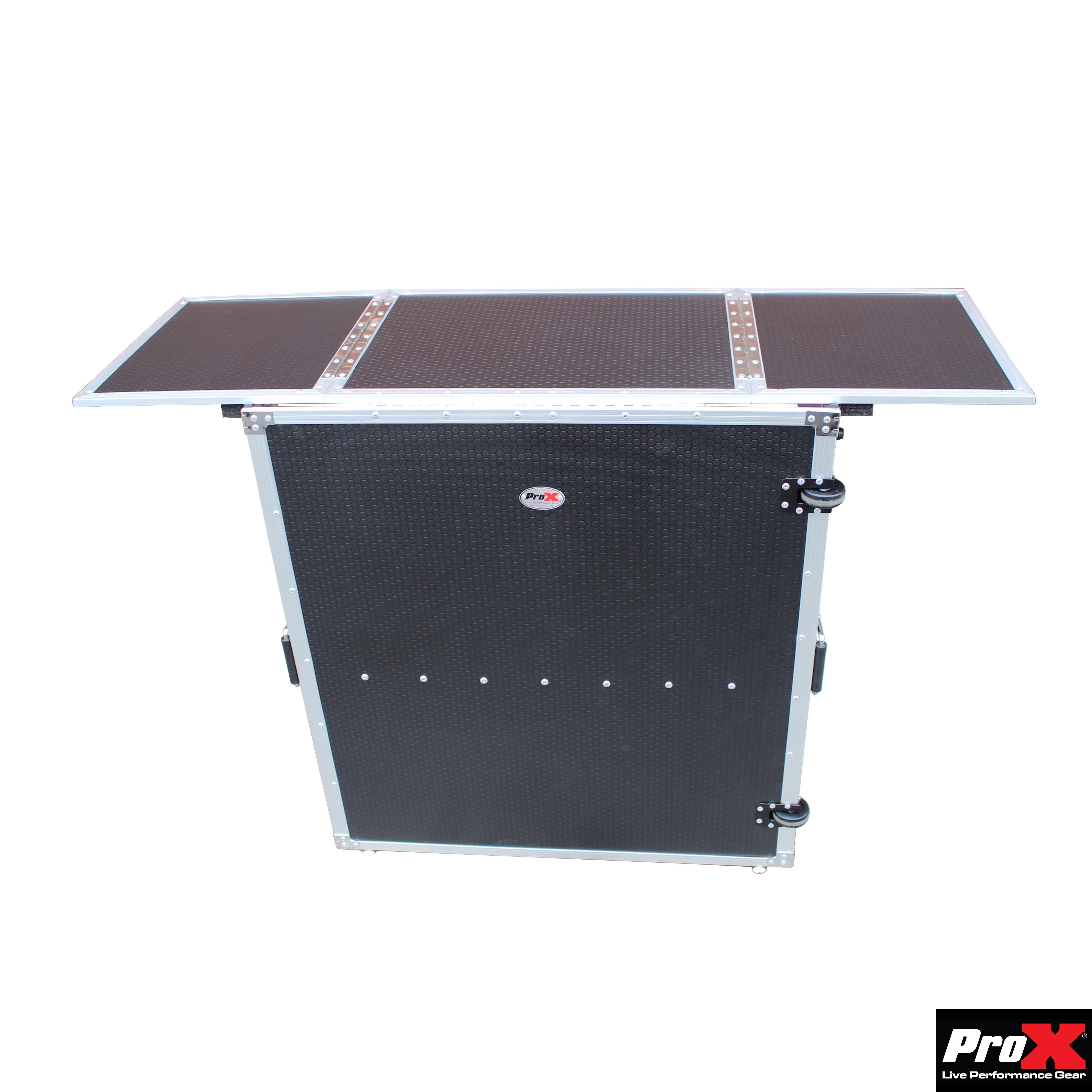 Additionally, it has a utility shelf under the table that can be used for backup controllers or laptops, extra cables, etc. The ProX DJ table is constructed with our signature Sleek Honeycomb Digital' plywood design finished in black, and aluminum accents are sure to make a good impression at your event. This unit is also equipped with wheels that ease your transportation experience.
