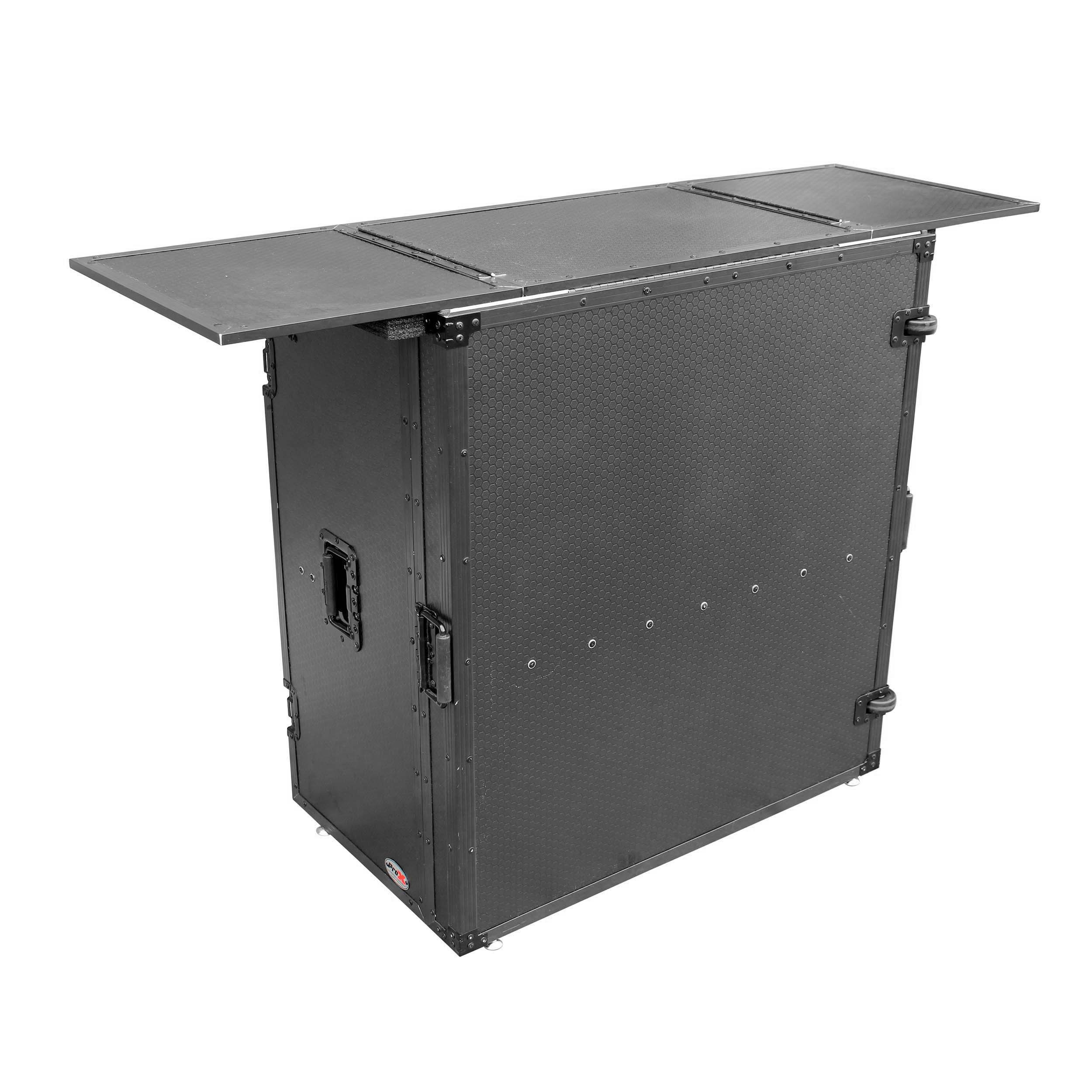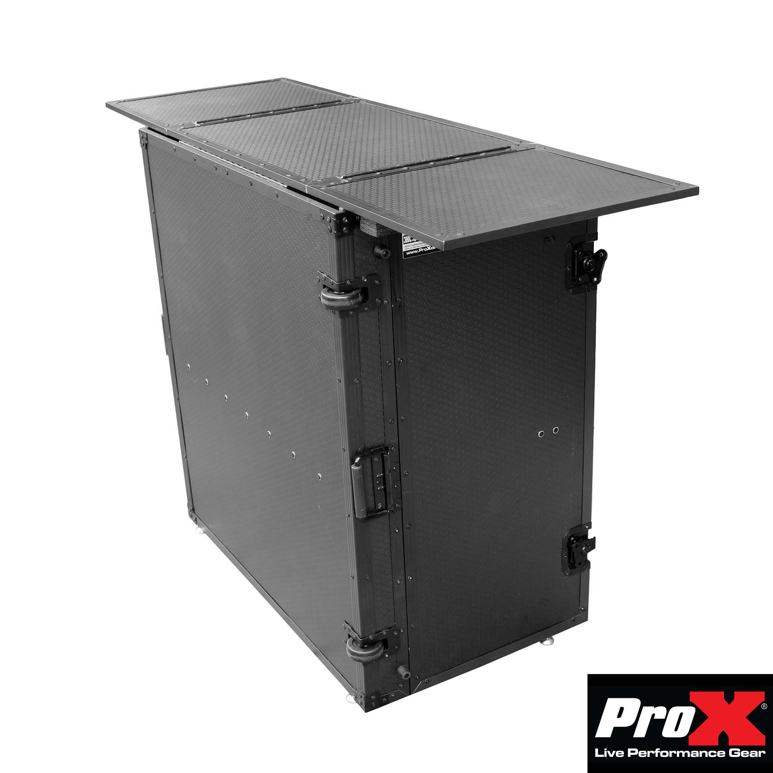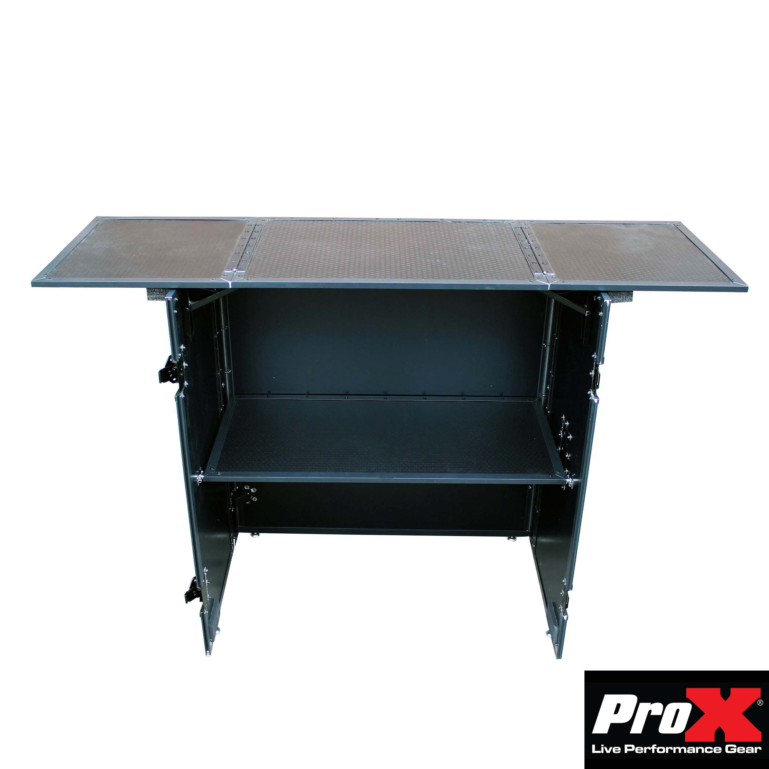 The ProX Transformer Series XS-DJSTNBL fold away DJ performance Desk is exactly what you need for your DJ or Studio Setup. If you are looking for a mobile DJ Workstation that's is easy to transport and will make your setup look amazing, this is for you. It's easily assembled, quick to collapse and folds flat for amazing portability. It's durable enough to place your mixers, CDJ's, keyboard or any type of pro audio or lighting equipment on the go.
