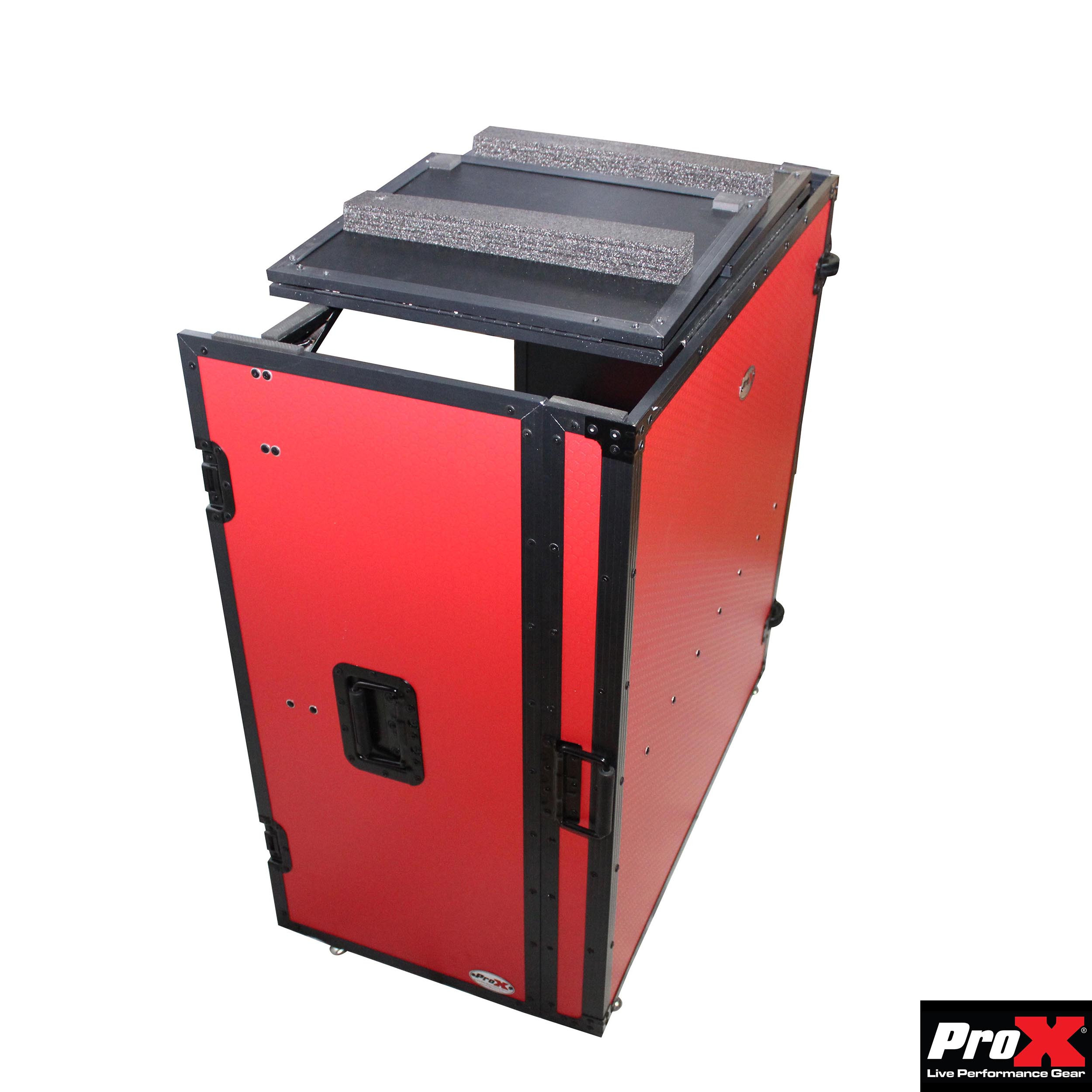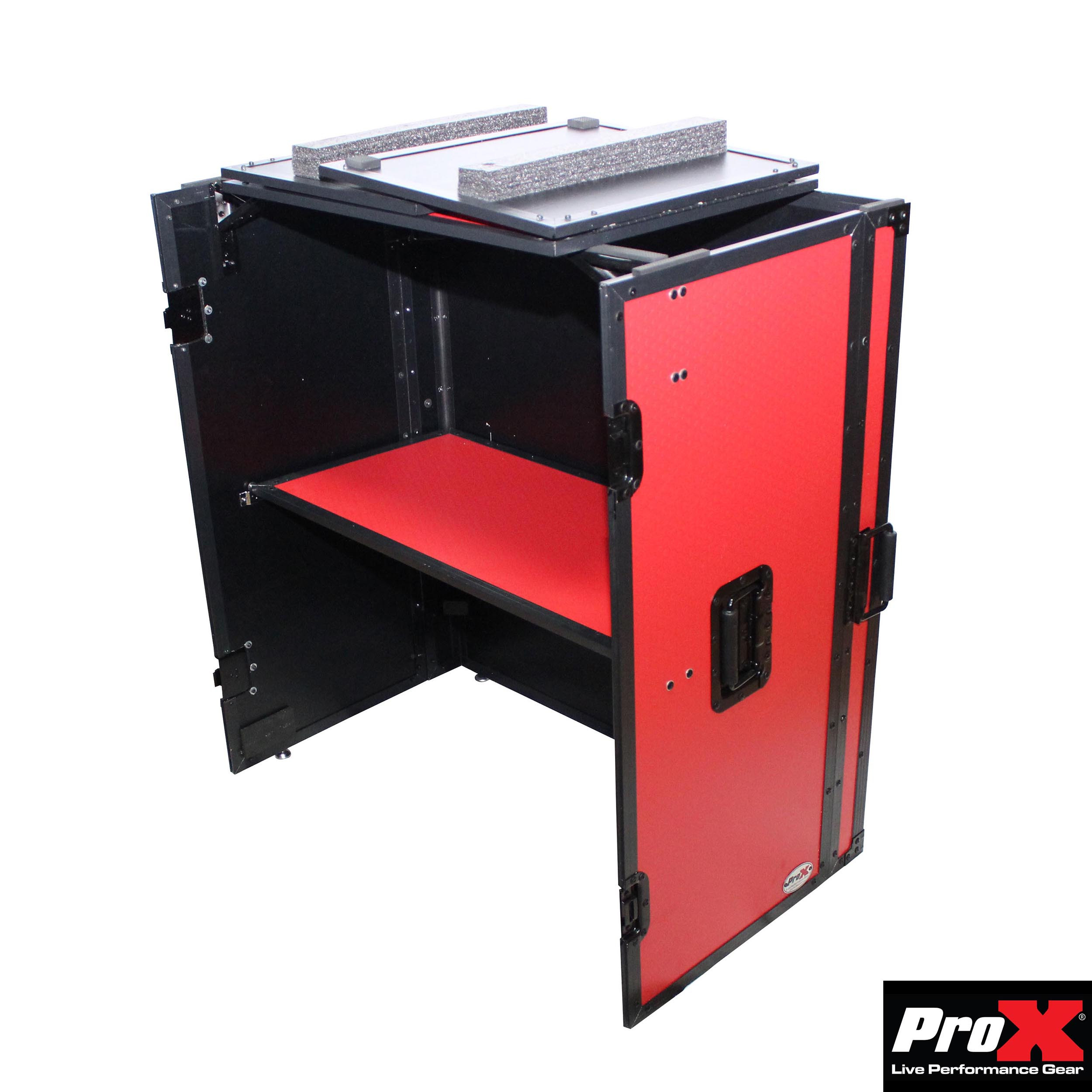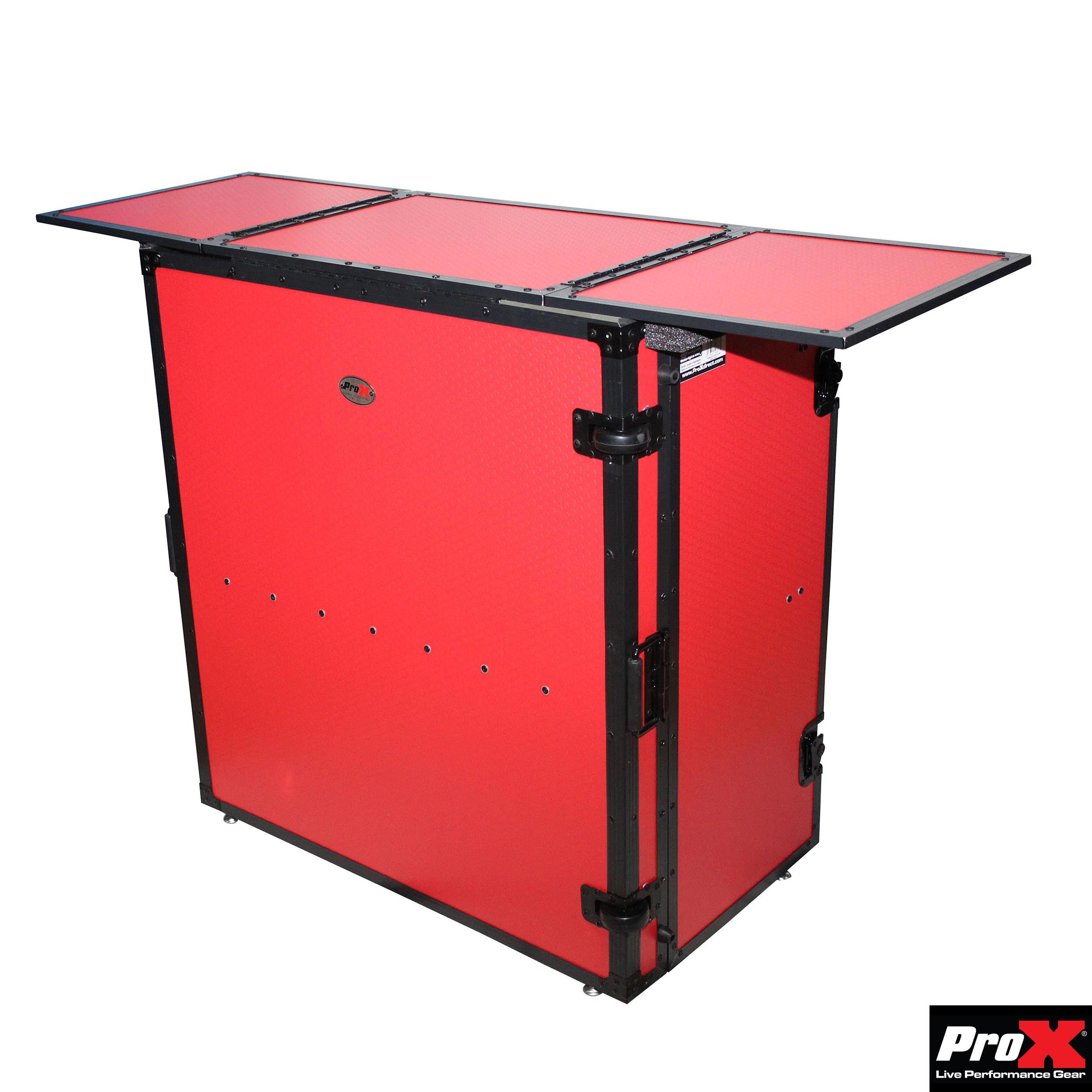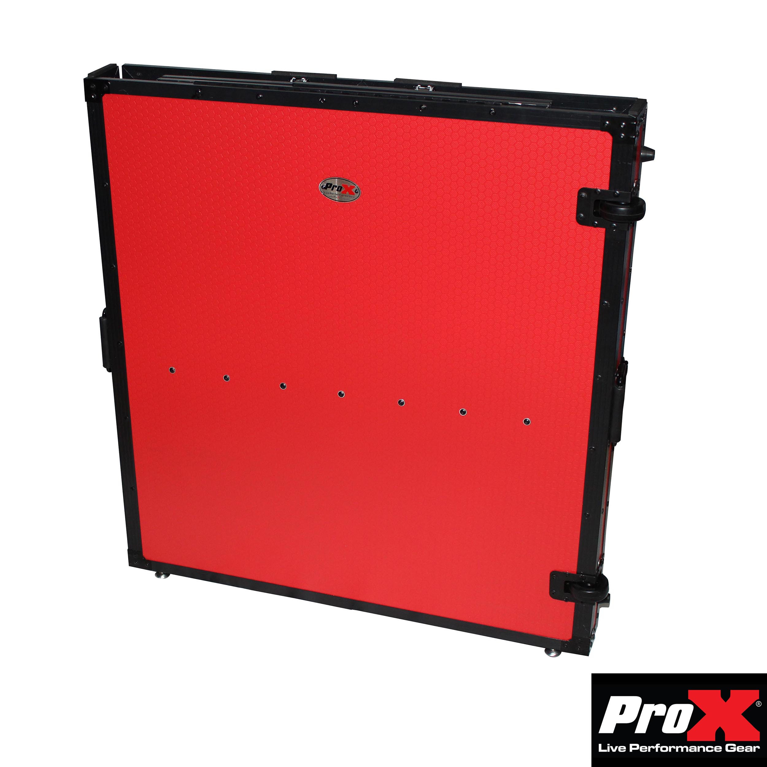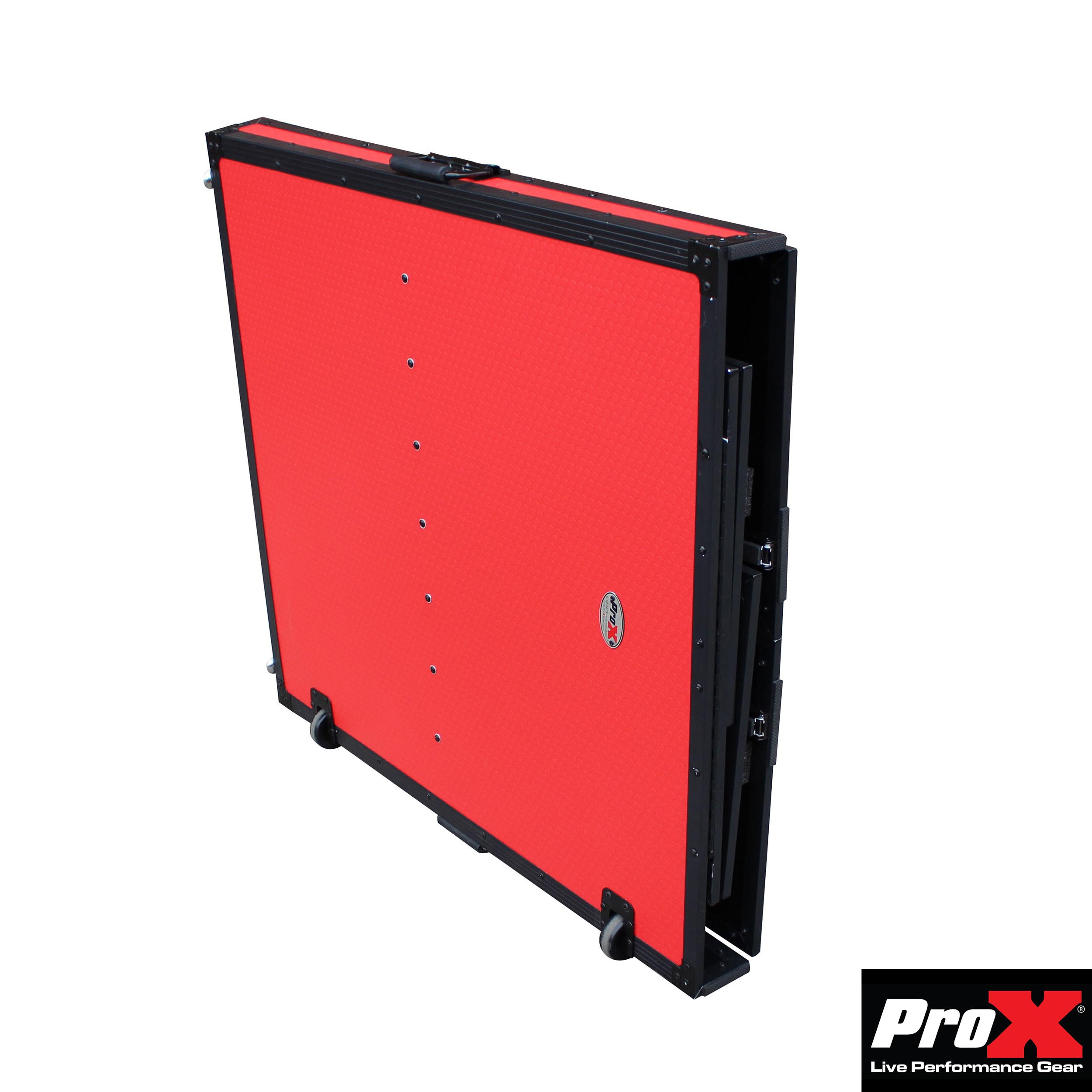 Additionally, it has a utility shelf under the table that can be used for backup controllers or laptops, extra cables, etc. The ProX DJ table is constructed with our signature Honeycomb Digital' design finished in an energetic red, and hardware with a black powder-coated finish it's sure to make a good impression at your event. This unit is also equipped with wheels that ease your transportation experience.