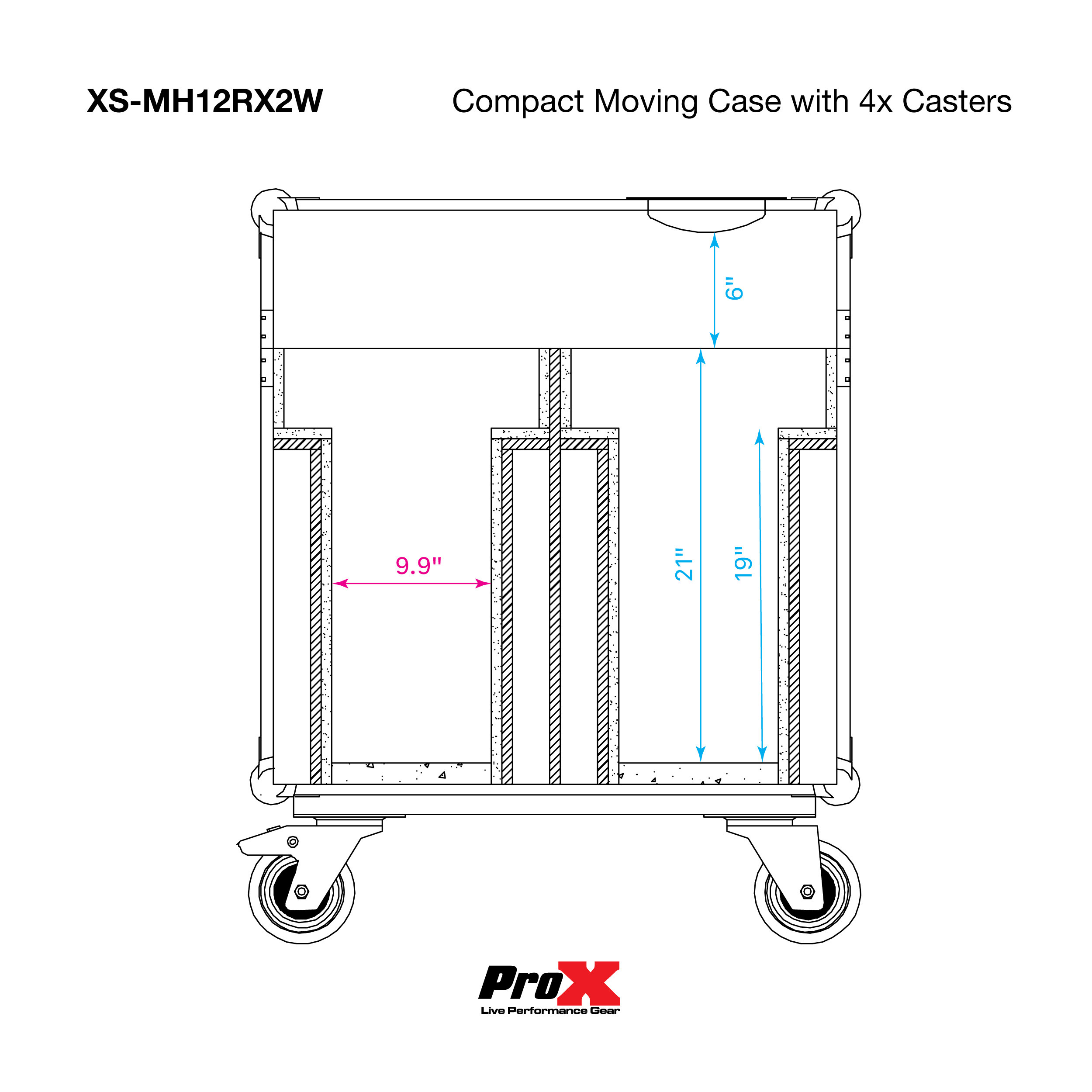 ProX XS-MH12RX2W Moving Head Lighting Road Case for ADJ Hydro Beam X12 Vizi Beam 12RX Fits 2 Units with 4" Casters is designed for ADJ Hydro Beam X12 and ADJ Vizi Beam 12RX compactmoving heads and unitswith similar size.