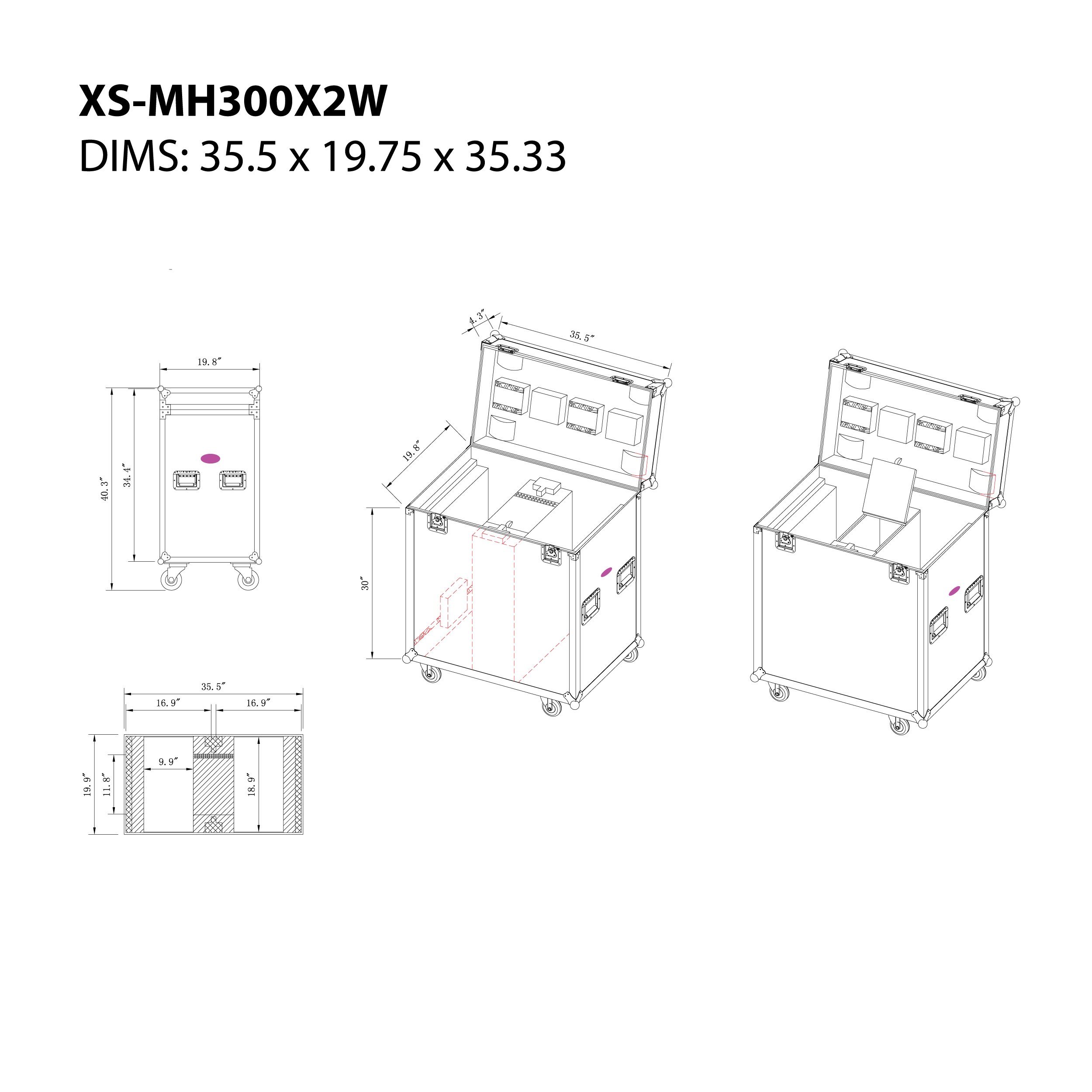 The ProX XS-MH300X2W is constructed with our rugged signature 3/8" Gig-Ready Series Plywood, durable 4" rubber wheels, reinforced steel ball corners.