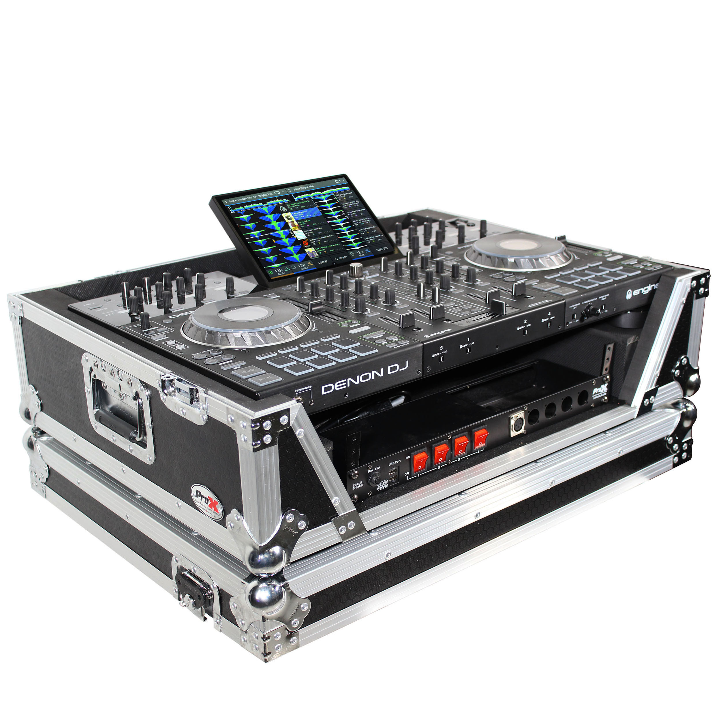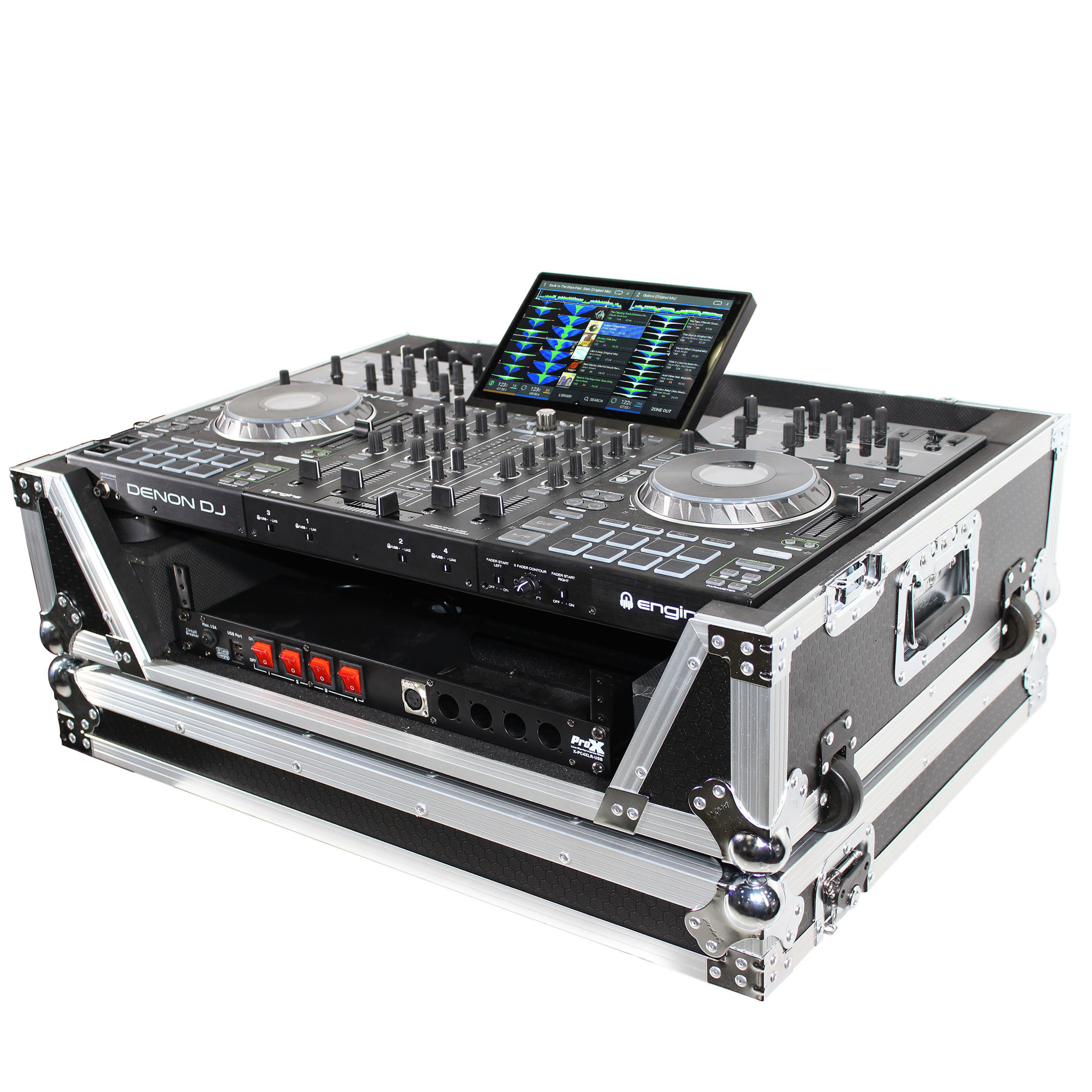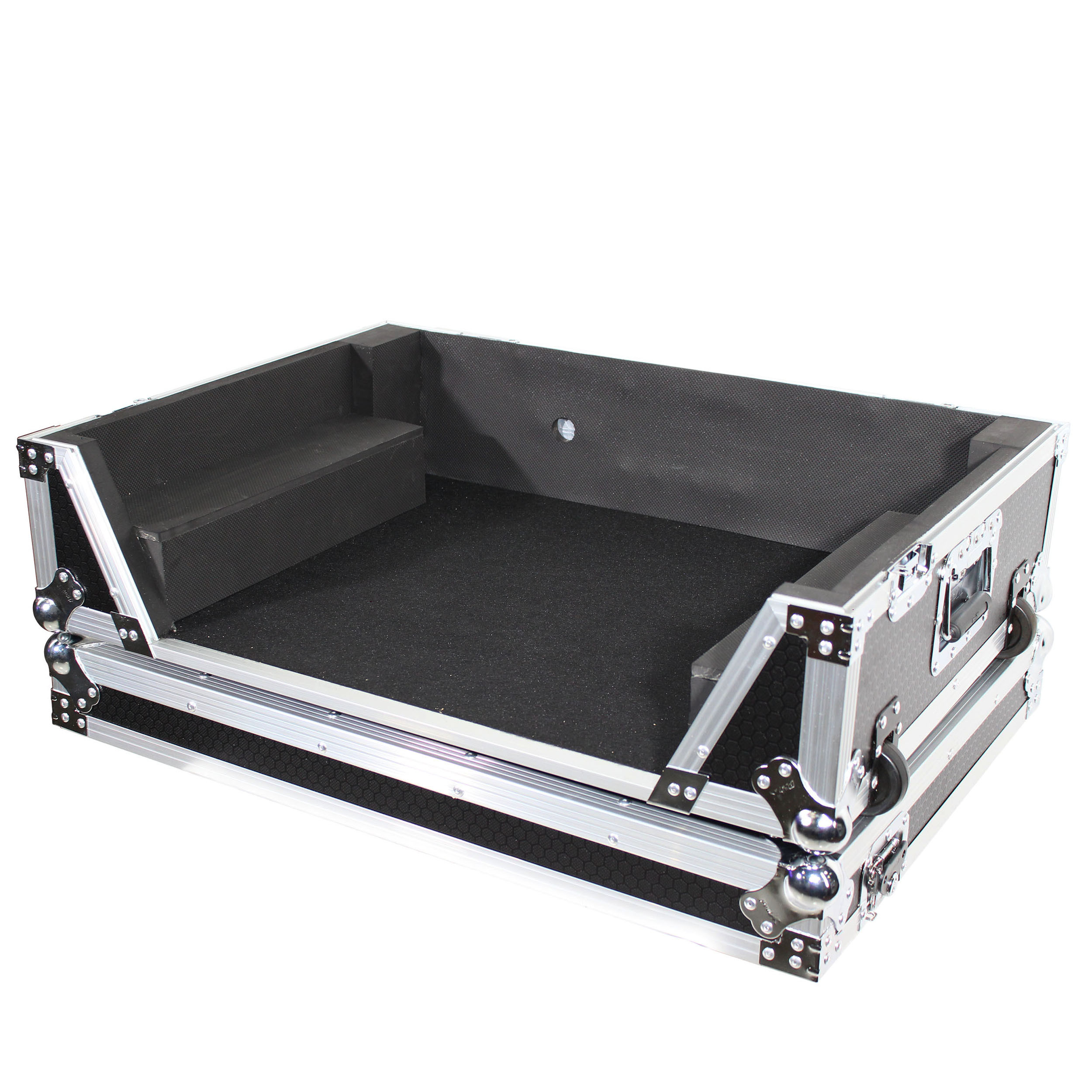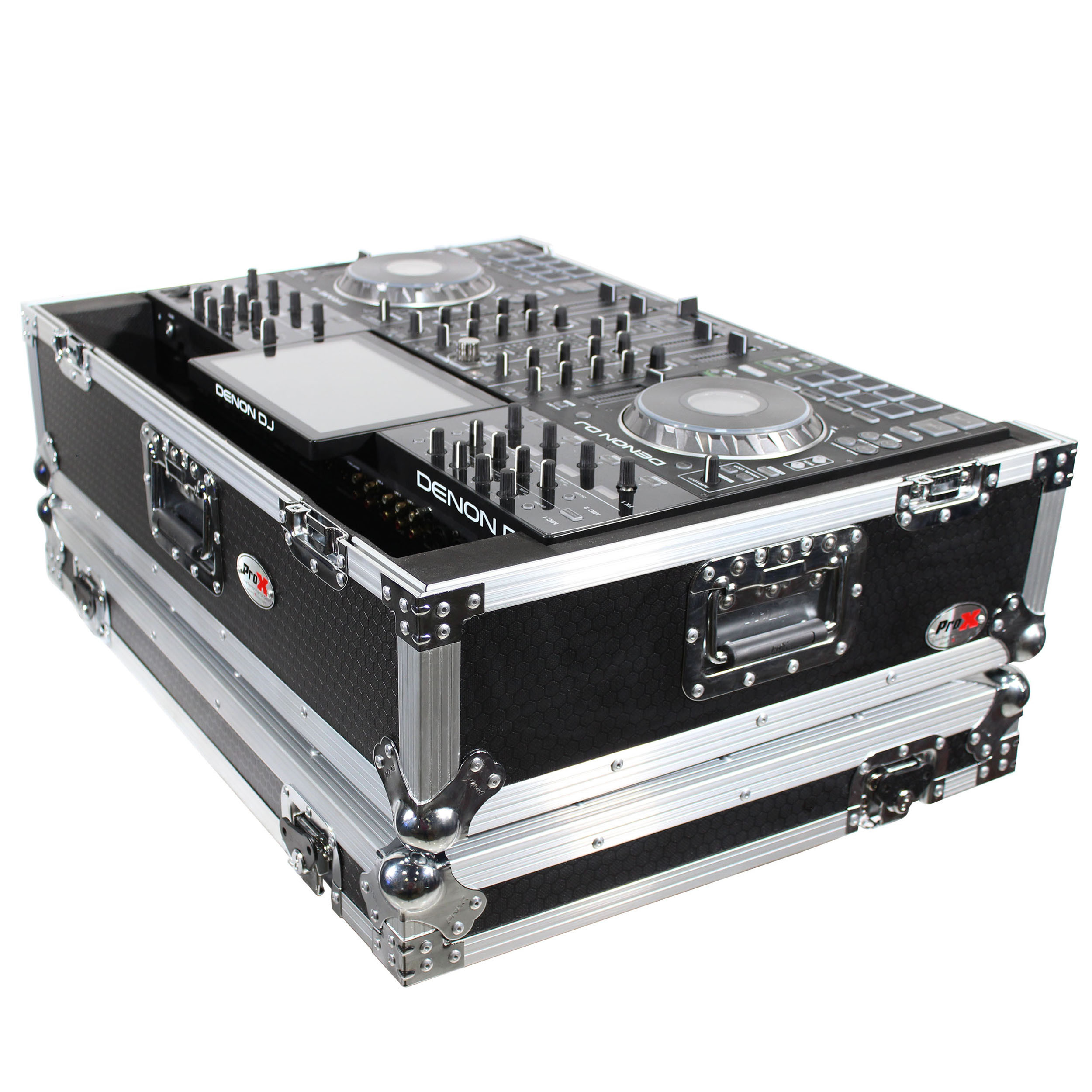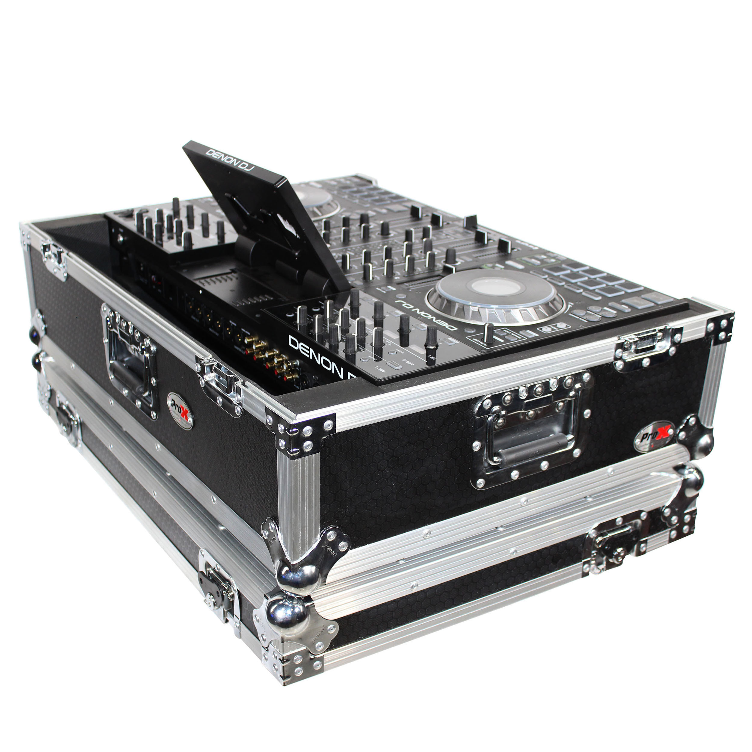 The ProX XS-PRIME4 W2U provides ultimate security for your standalone DJ system. It also has a 2U Rackspace below the device. The case is constructed with a rugged and durable signature 3/8" Series Plywood, reinforced steel ball corners, as well as recessed steel padded handles and latches. There is additional space for cables and small accessories in the back and underneath the unit for convenience, as well as a removable front panel for you to access front input jacks easily and access the 2U Rackspace below.