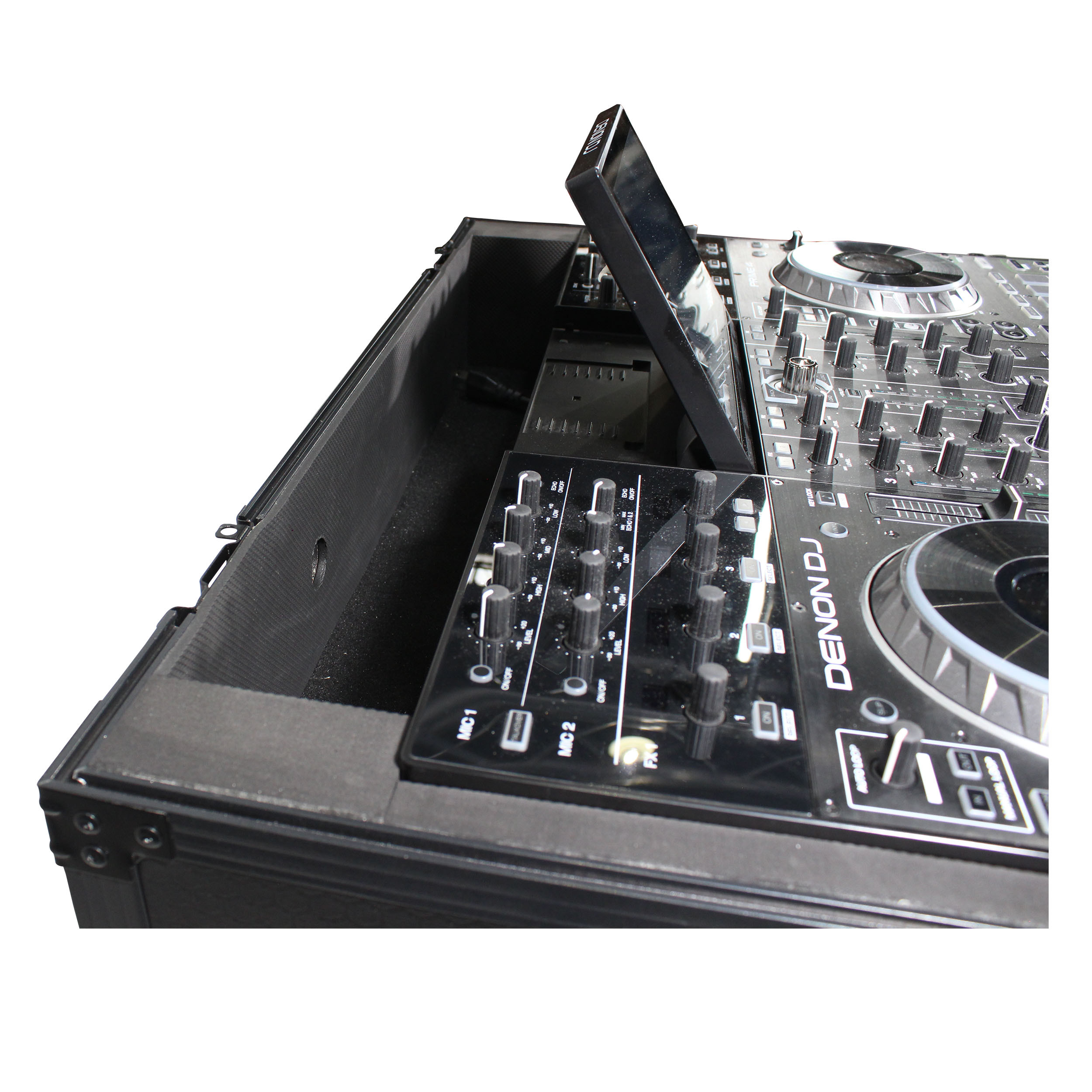The ProX XS-PRIME4 WBL provides ultimate security for your Denon PRIME4 standalone DJ system. It is constructed with a rugged and durable signature 3/8" Series Plywood, reinforced steel ball corners, as well as recessed steel padded handles and latches. There is additional space for cables and small accessories in the back and underneath the unit for convenience, as well as a removable front panel for you to access front input jacks easily and access the 1U rack space below.