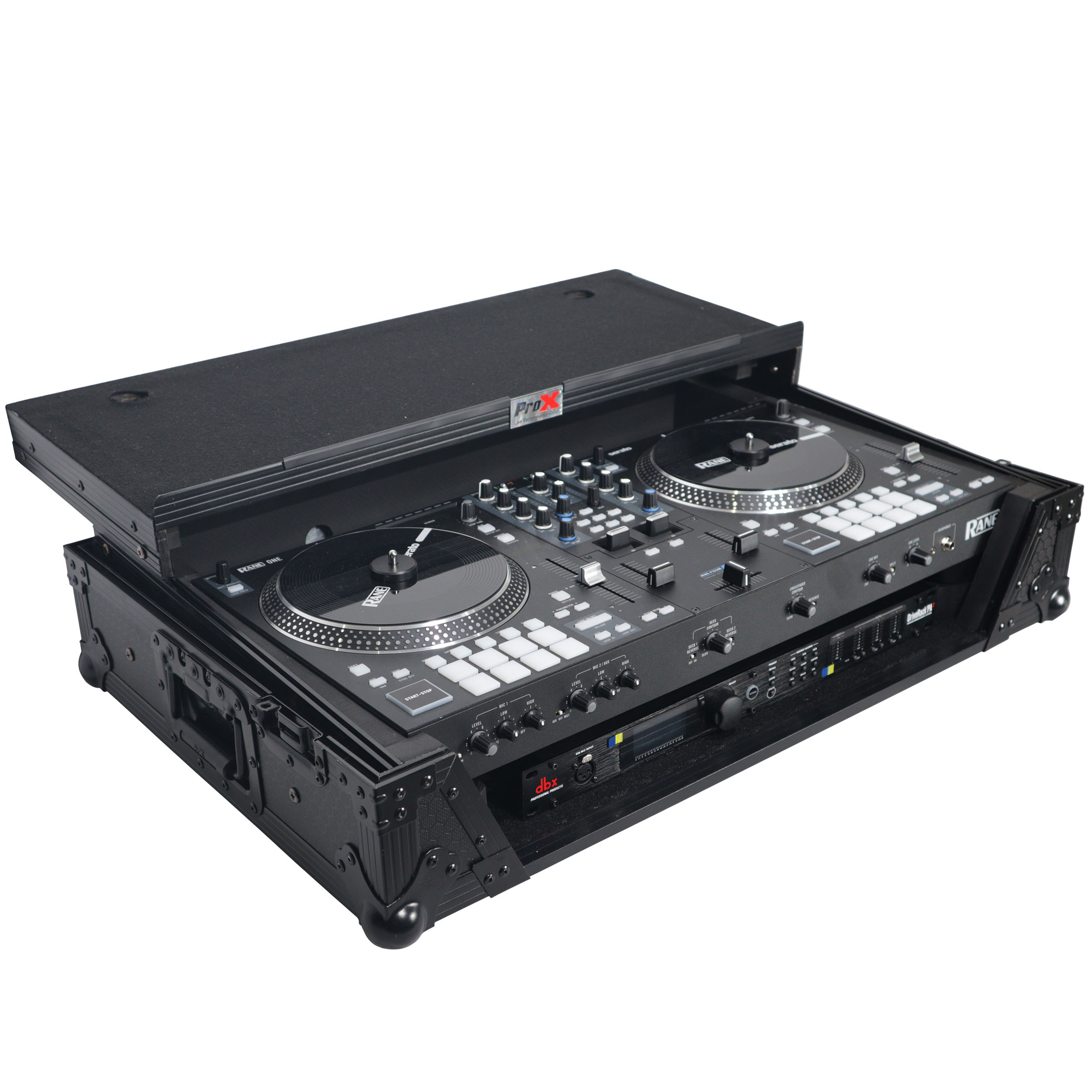 The ProX XS-RANEONE WLTBL flight case is constructed with our rugged signature 3/8" Gig-Ready Series Plywood, reinforced steel ball corners for protection and easy stacking, and recessed steel padded handles and latches to protect them from damage during transport. There is additional space for cables and small accessories in the back and underneath the unit for convenience, and a 1U Rack Space underneath the unit (1U Rail Hardware Included), as well as a removable front panel. The front removable panel allows for easy access to the 1U rack space, front controls, and headphone/mic jacks.