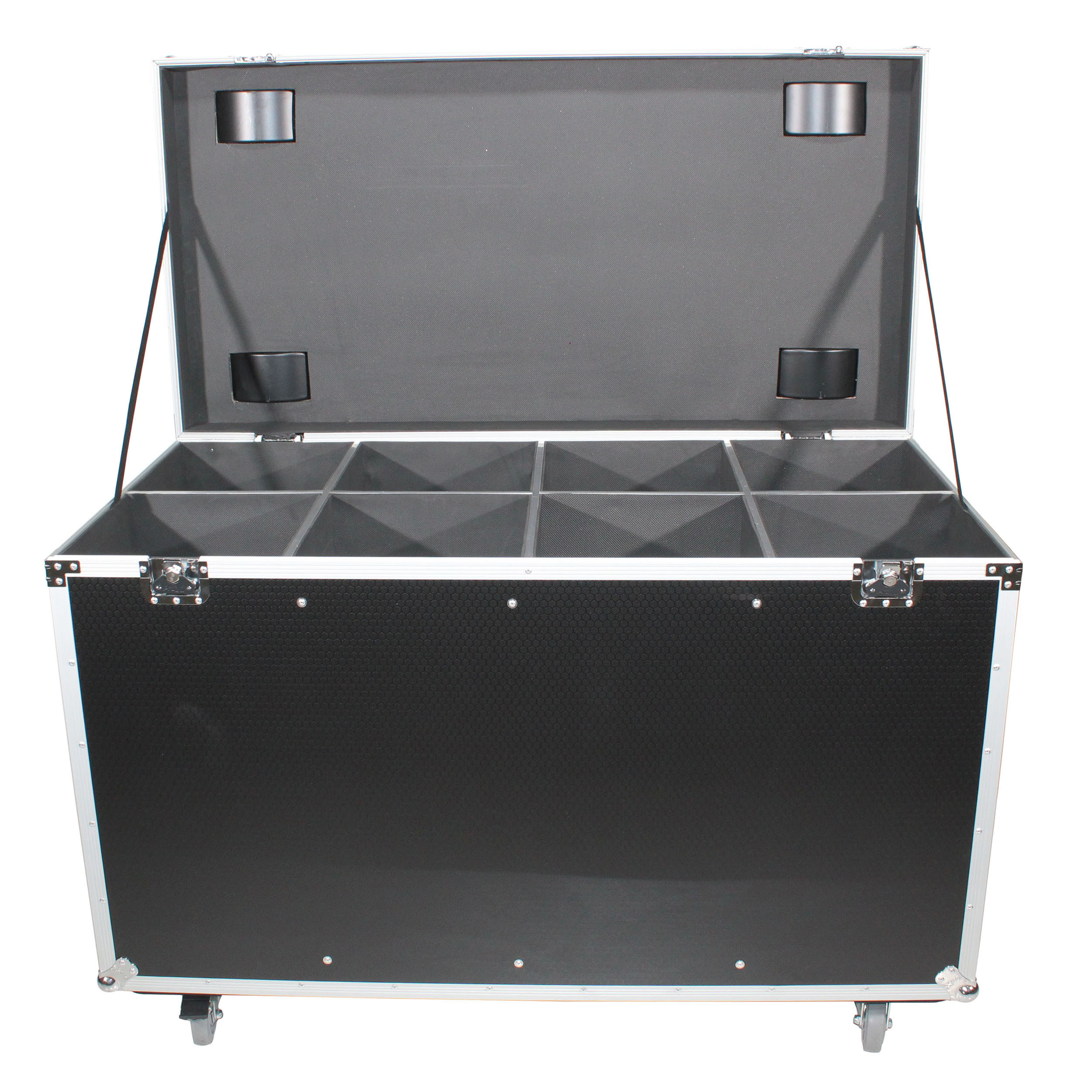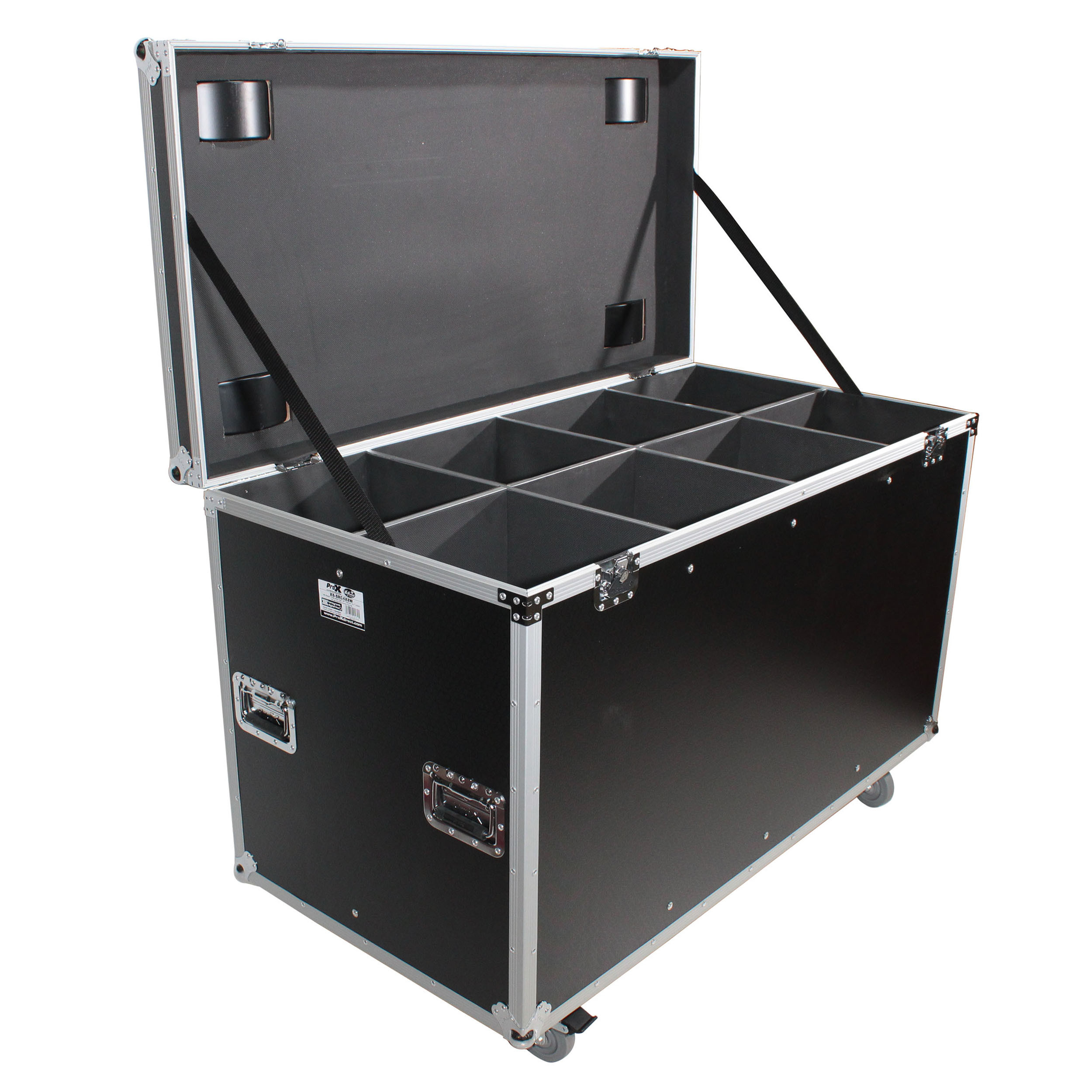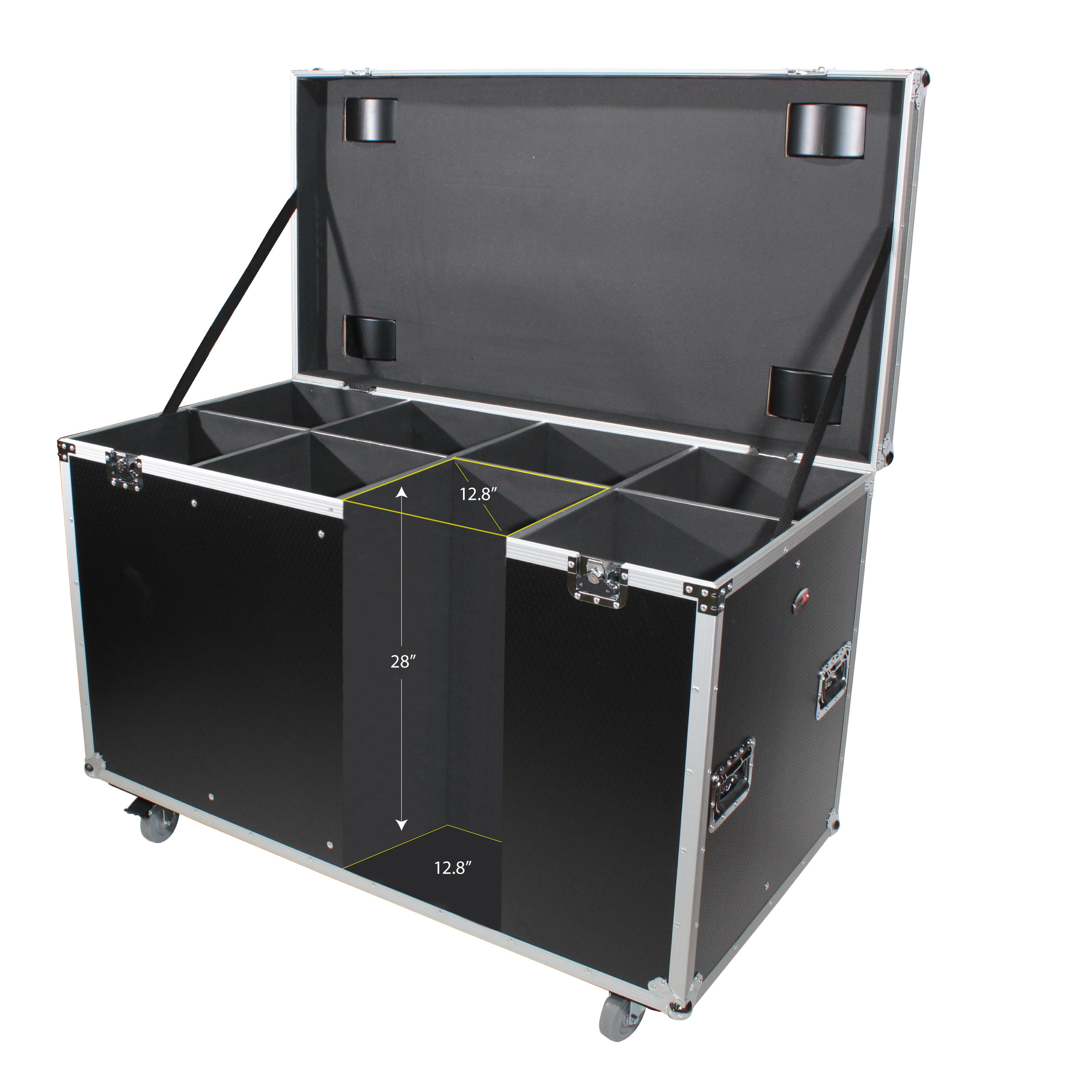 The ProX XS-SRC4X8W Road Case for up to (8) ETC Source Four Fixtures is constructed with our Signature Series Plywood, durable recessed handles, wheels for easy transportation and reinforced steel ball corners for years of on the road use. This case has 8 individual spaces to fit the ETC Source Four lighting fixtures.