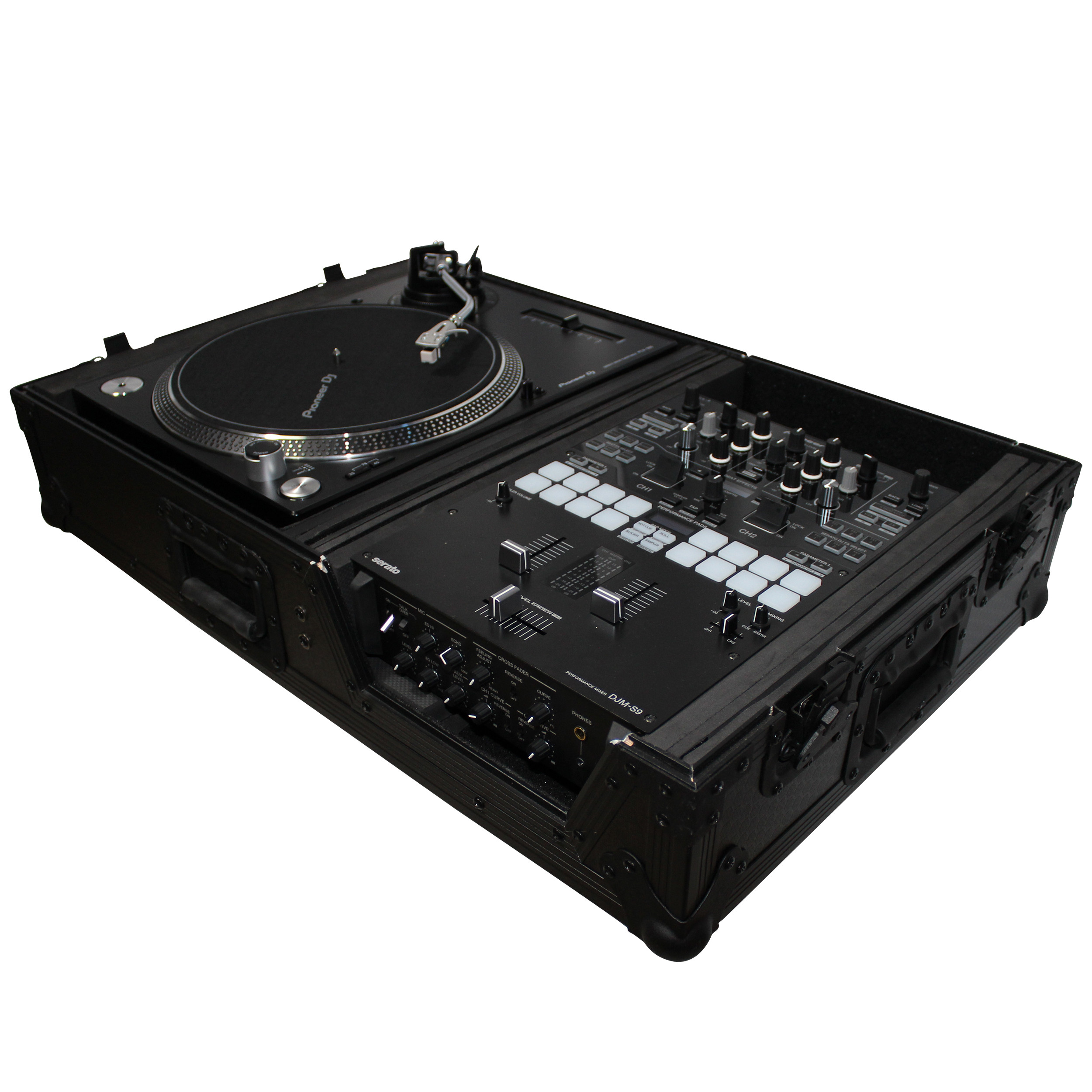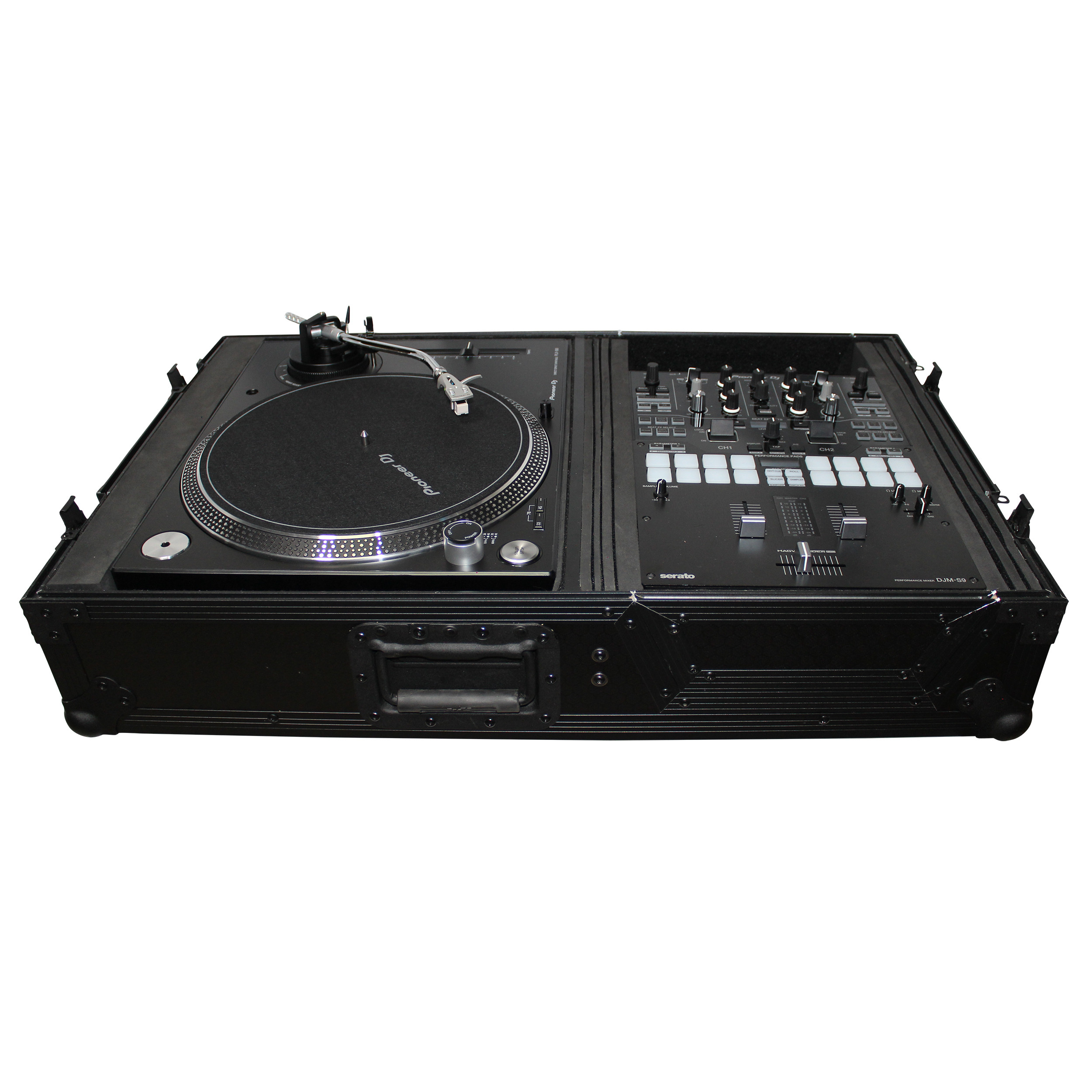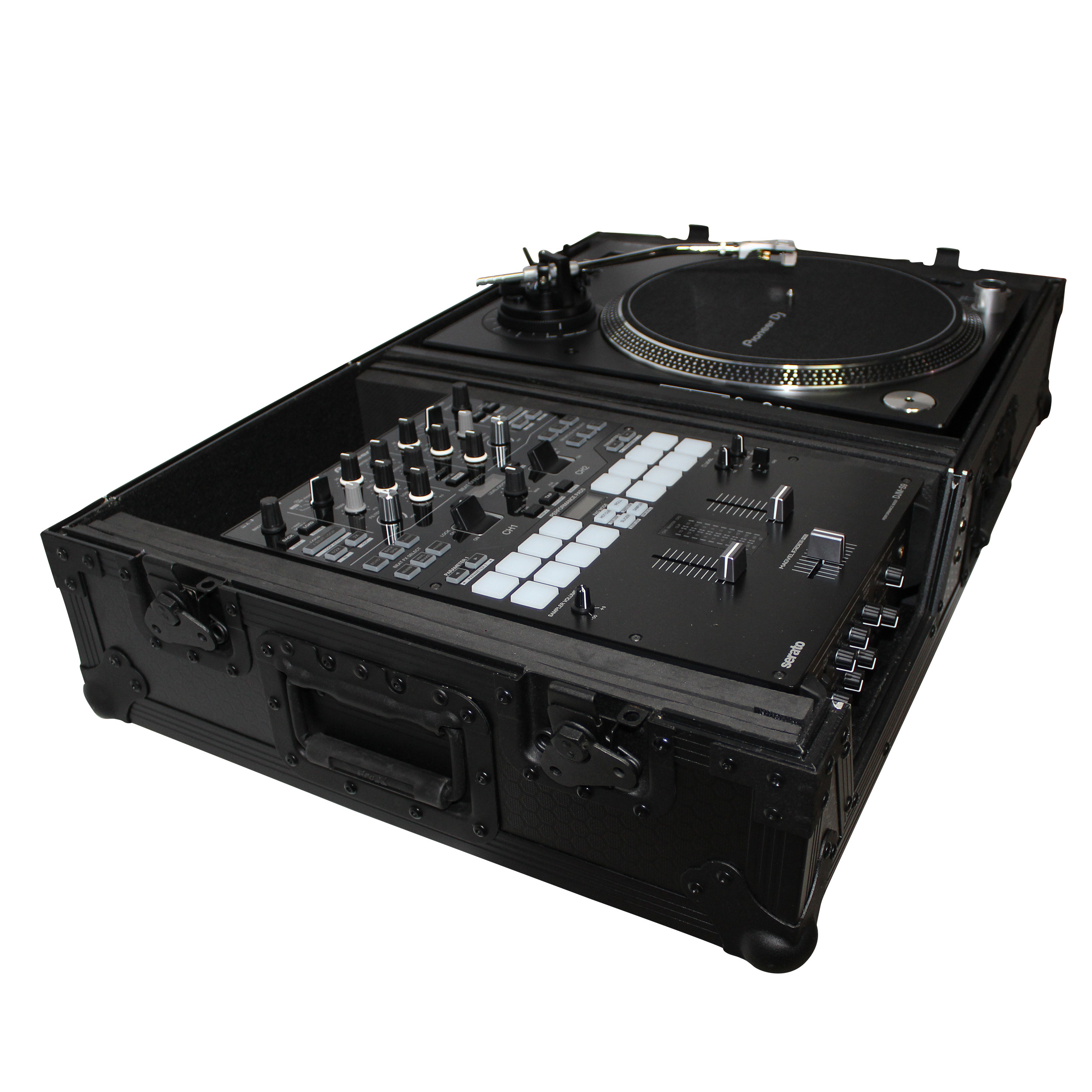 The ProX XS-TMC1012WBL Single turntable/single mixer coffin case is the case you been waiting for. If you only use one turntable and a mixer and are looking to lighten your load the XS-TMC1012WBL is the case for you. Fits most any turntable (battle mode) and most any 10 to a 12-inch mixer. The case weighs 34 lbs. Made from ProX Signature series Plywood. Your gear is more than protected and still looks sleek with your setup.