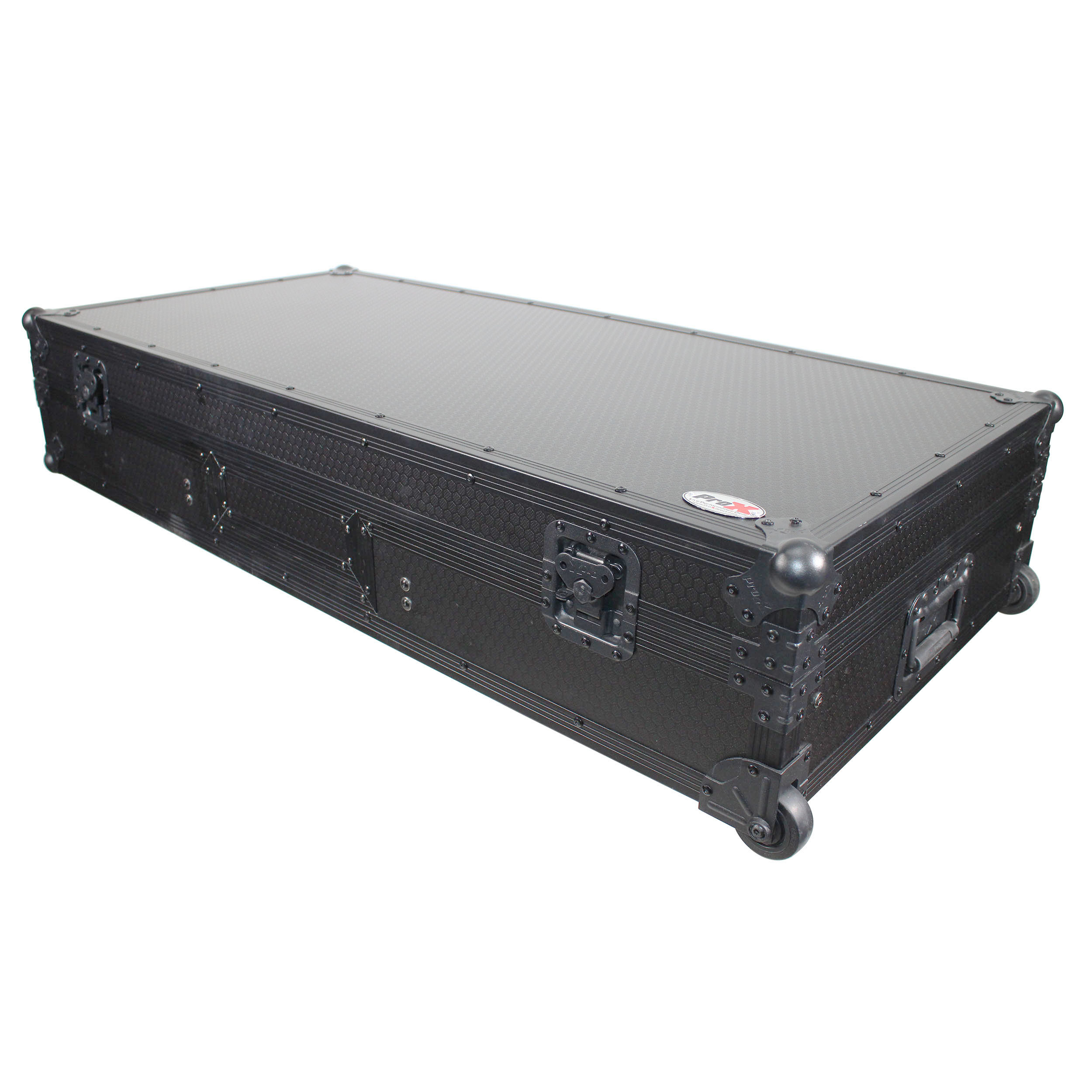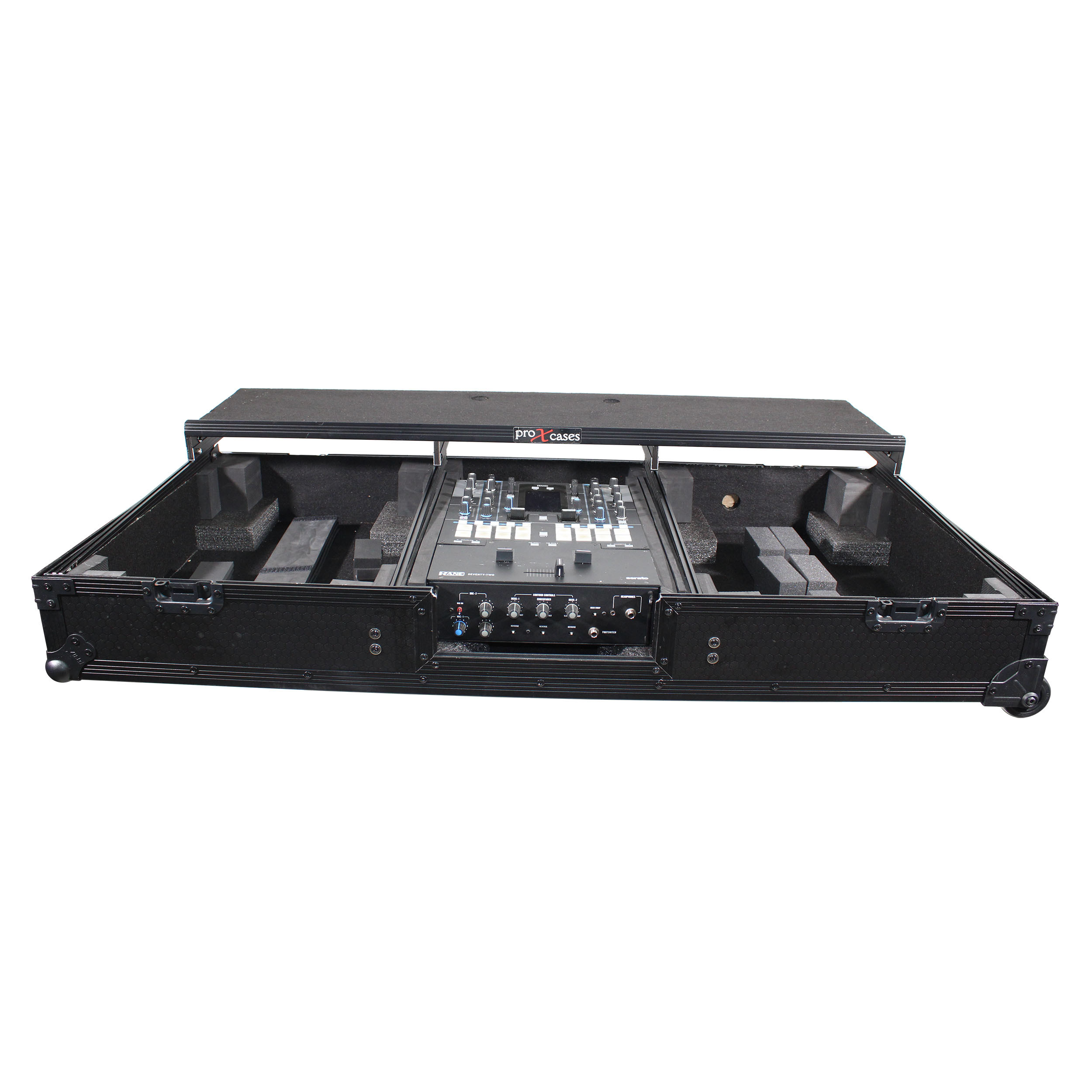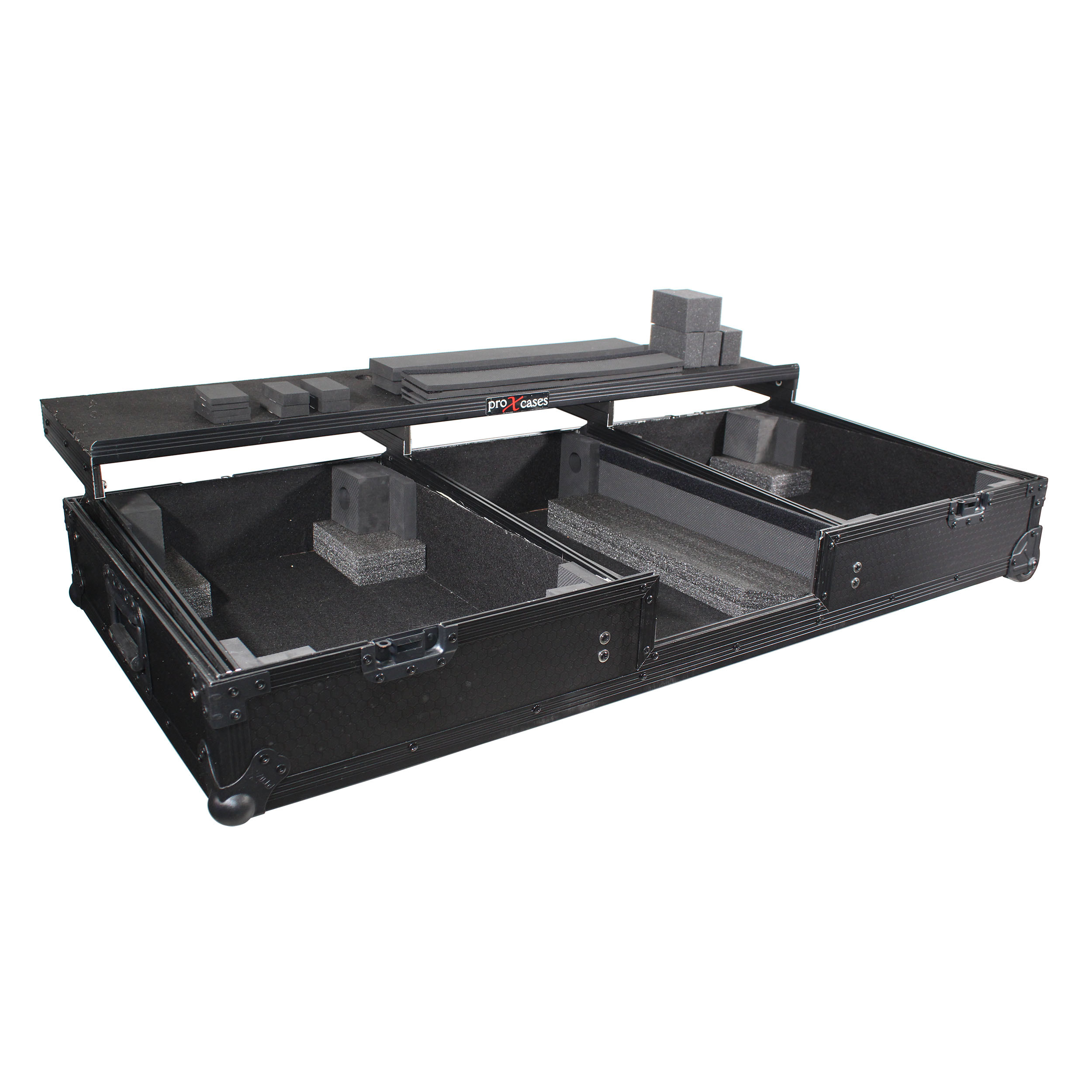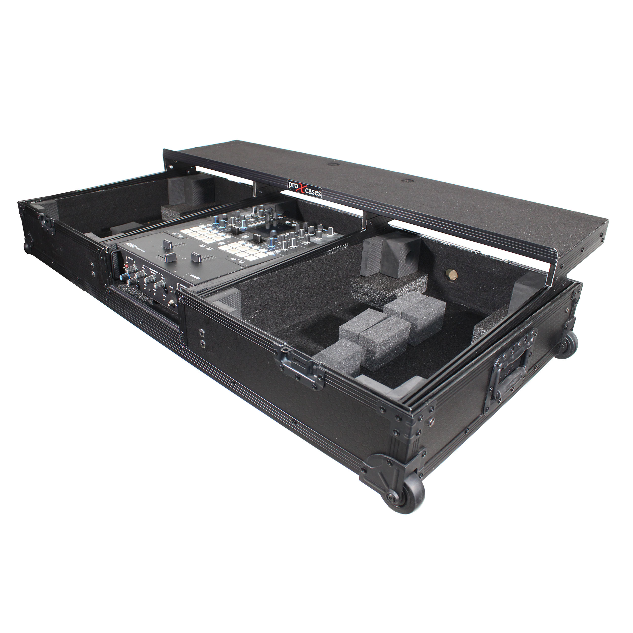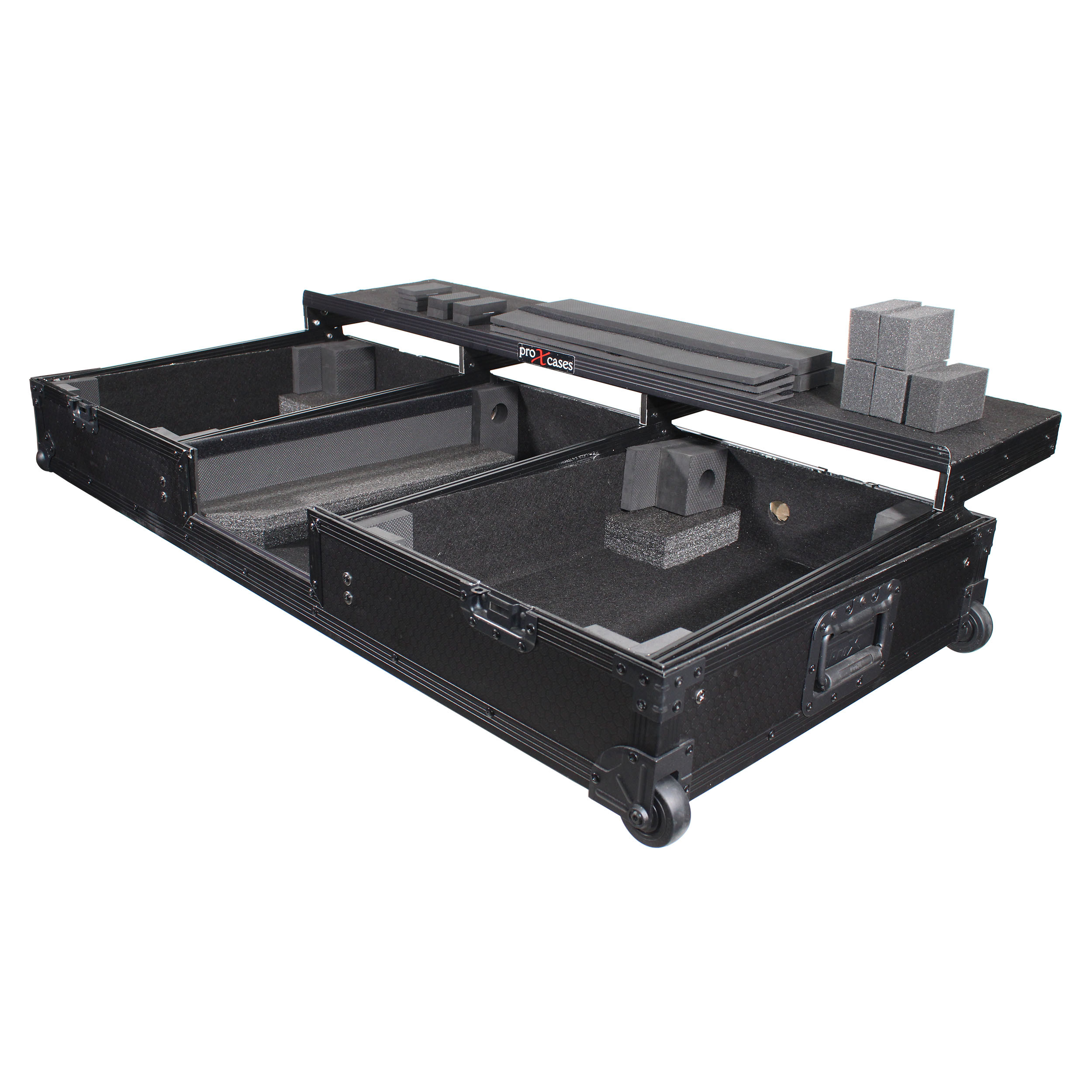 The ProX XS-TMC1012WLTFBTLBL Flight Coffin Case is For Rane 72 mixer and 2 Turntables in Battle Mode w/ Full Laptop Shelf with Black hardware on Black laminate. This case is constructed with ProX Gig Ready Signature Series 3/8" Plywood for complete protection of your investment. Standard on all our cases is steel, heavy-duty ball corners to withstand the rigorous travel that a pro-DJ demands. Black on Black modern design will turn heads and keep with the decor of any venue.