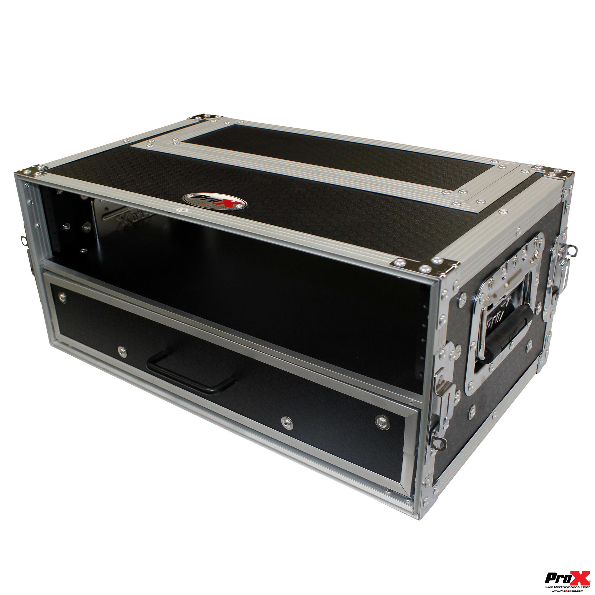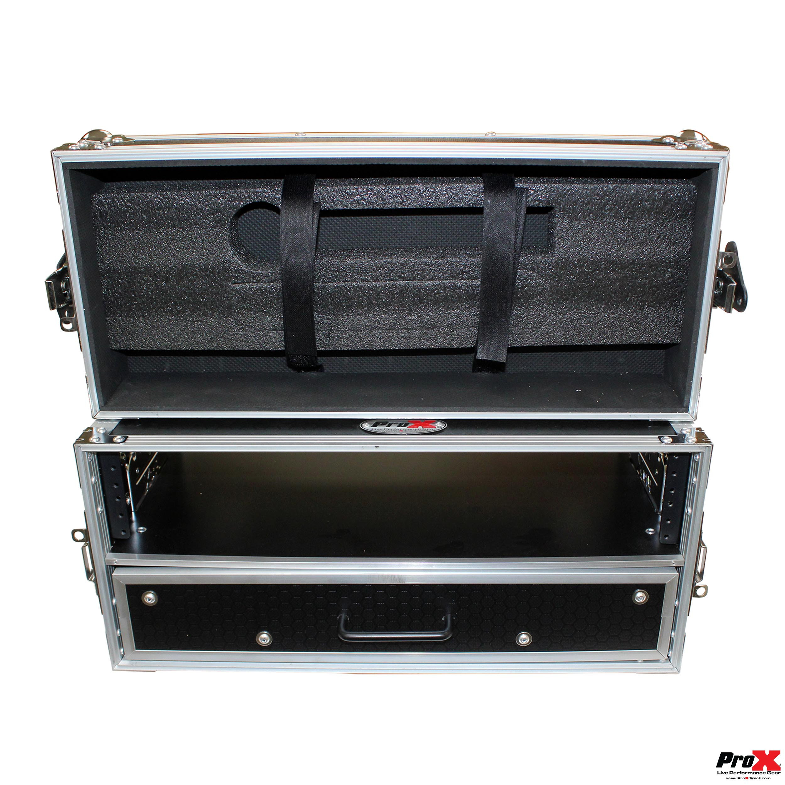 The ProX WM2U2DR 2 Space 2U vertical plus a 2U Drawer 10" deep, rack case is the perfect storage solution for convenient security for a wide variety of wireless microphones as well as amplifiers, mixers, effects, and any other standard 19" width rack-mountable professional audio/DJ/Network gear