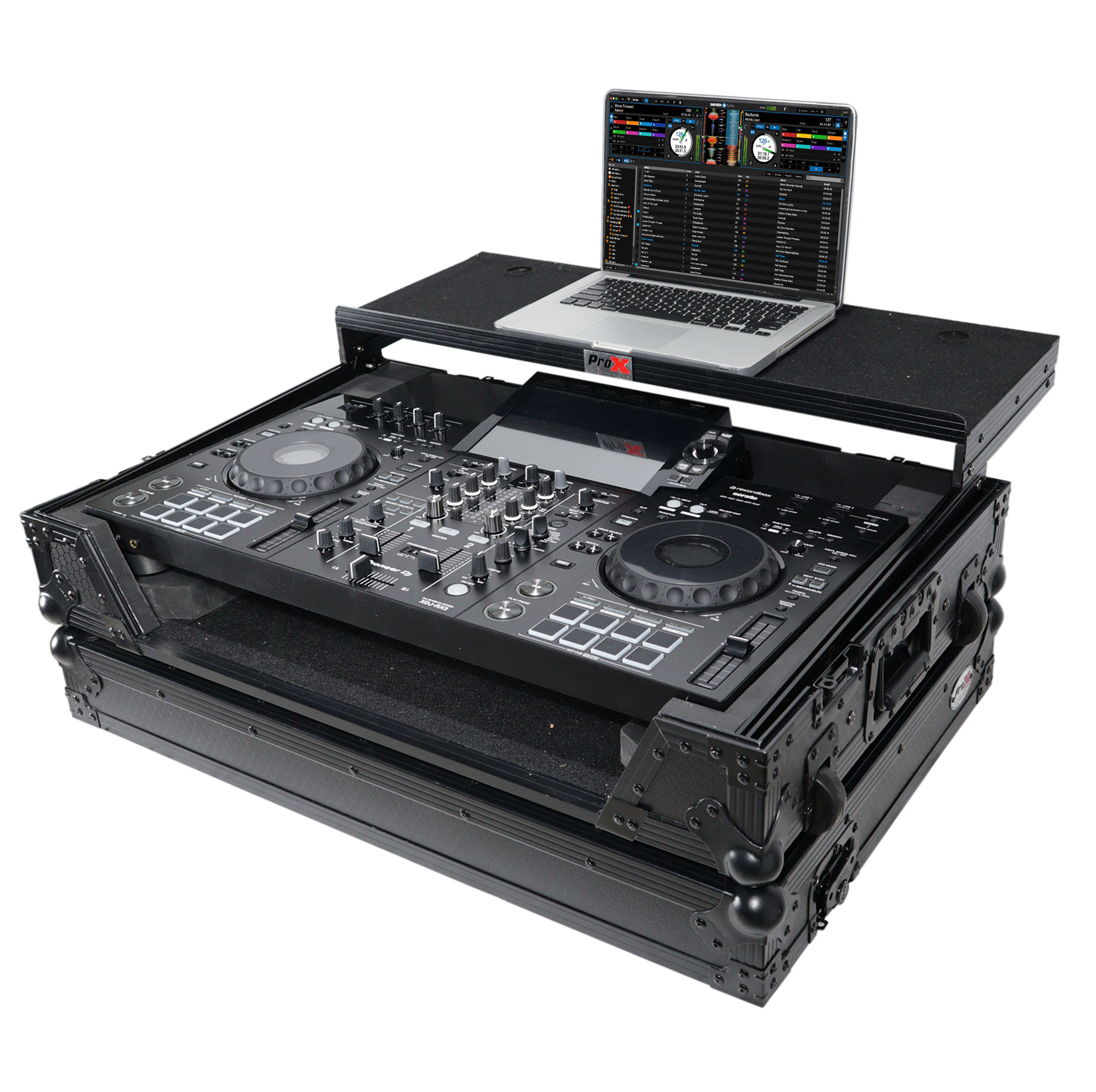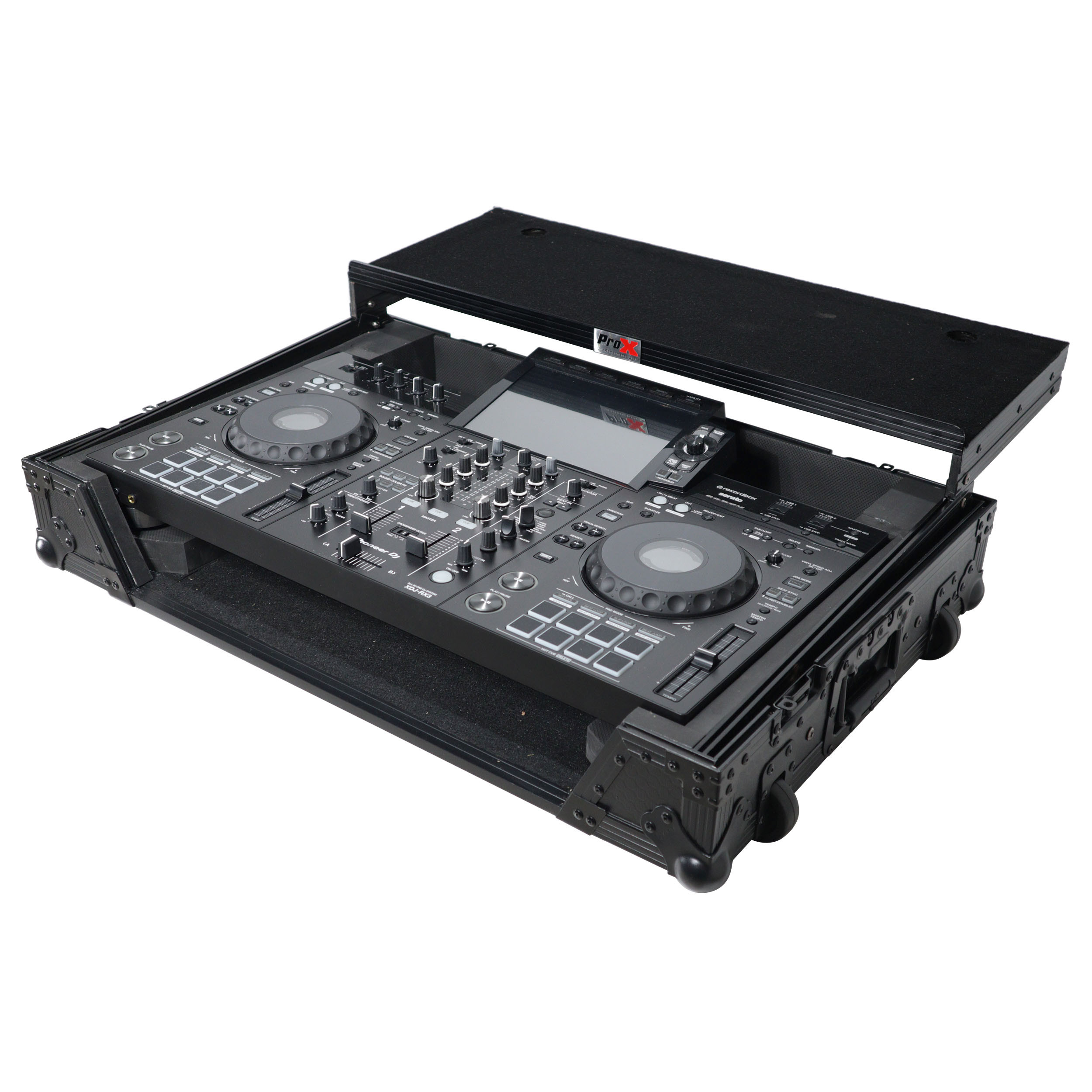 The XS-XDJRX3WLTBL is constructed with our rugged signature 3/8" Gig-Ready Series Plywood, durable rubber wheels, reinforced steel ball corners, as well as recessed steel padded handles and latches. There is additional space for cables and small accessories in the back and underneath the unit.