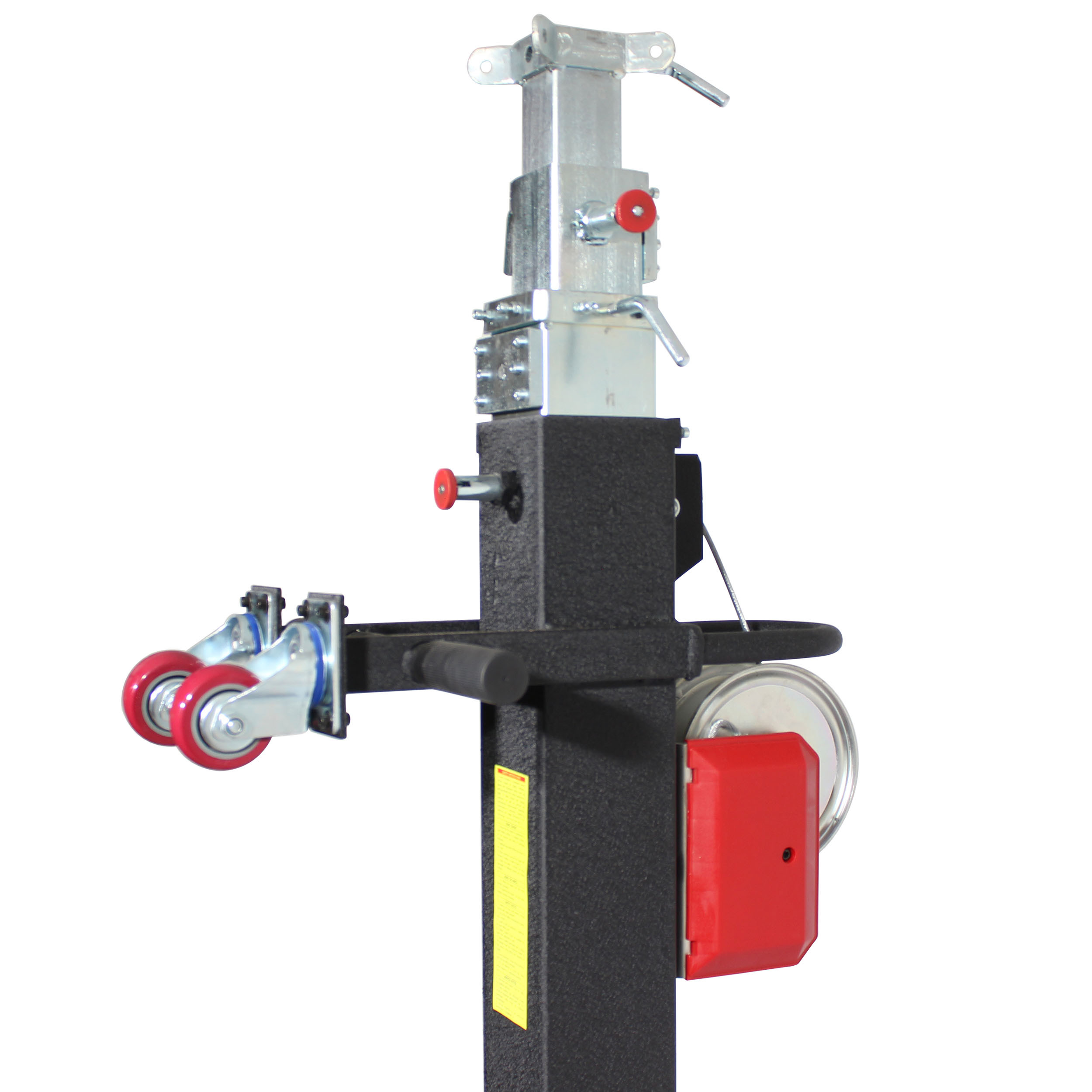It folds easily to a portable size for transport. It's equipped with a smooth, heavy-duty cranking mechanism. Perfect for a live band and mobile DJ applications, eliminate direct lifting and lowering of heavy loads.
