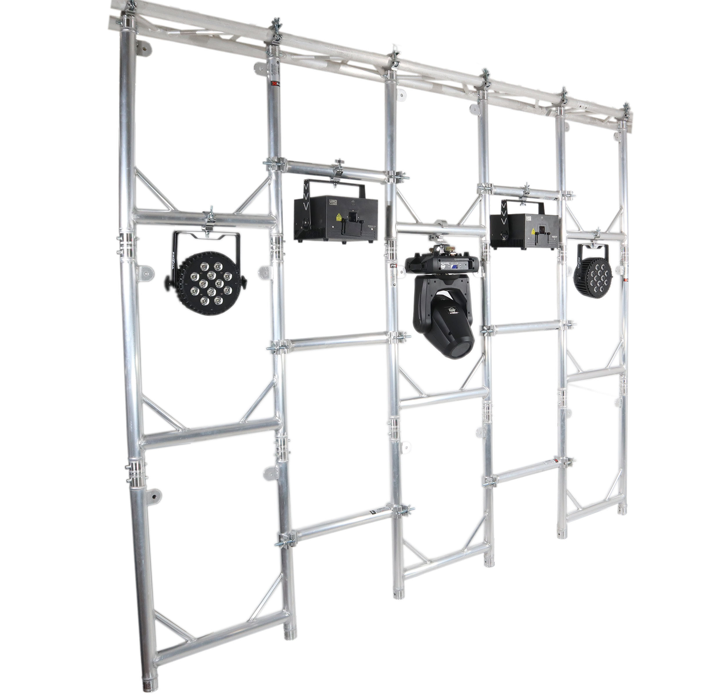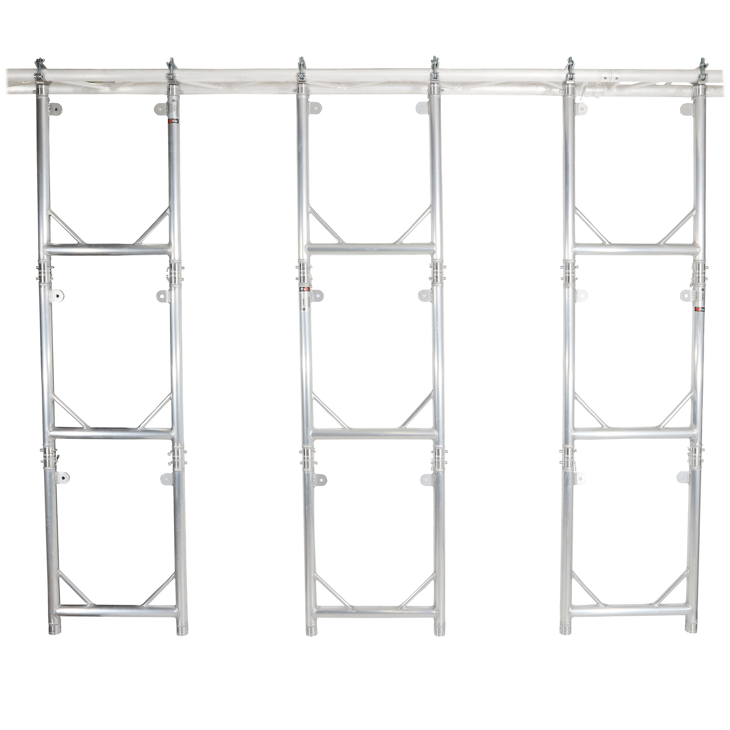 Each U module has two safety point attachments, one on each side for use with multiple styles of fixtures. The ProX GRU Rapid Grid' System has been designed for quick deployment and take down in any environment. The lightweight yet strong aluminum construction is additionally reinforced to provide added stability and safety.