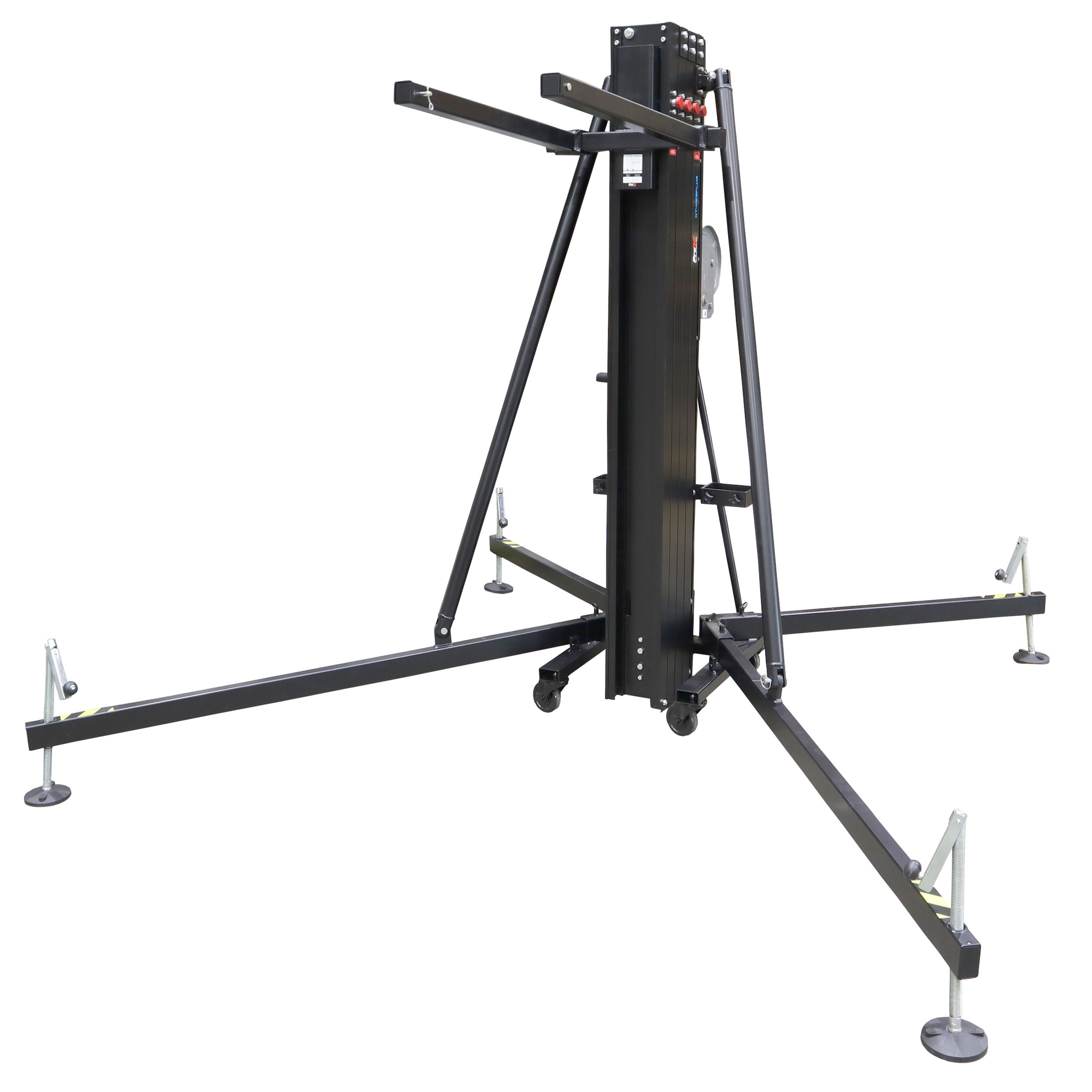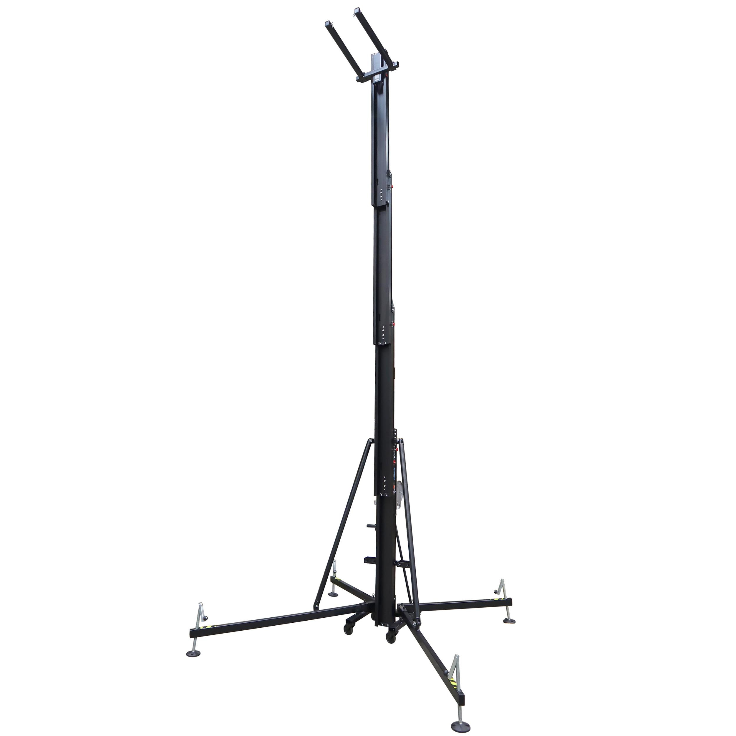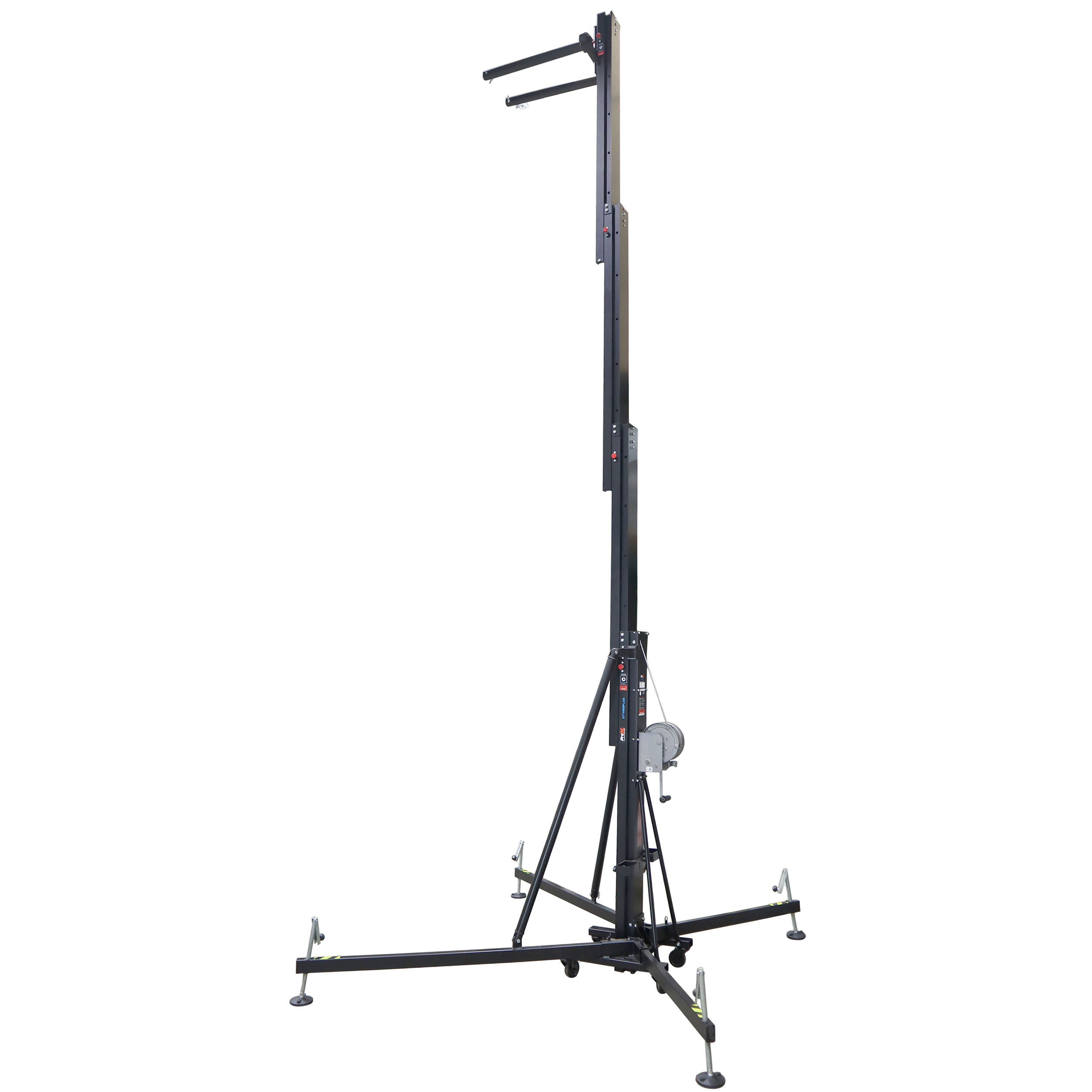 ProX XT-HERCULES 6.5 PLUS Fexix Rigging tower Frontal loading lifting tower allows raising the load from the floor, avoiding any single effort and specially designed for a reliable lifting of Line Array Systems of up to 500kg/1102 lbs to a maximum height of 6.5 meters / 21.30 Ft. This product is perfect to fly line array systems, trusses and LED screens.