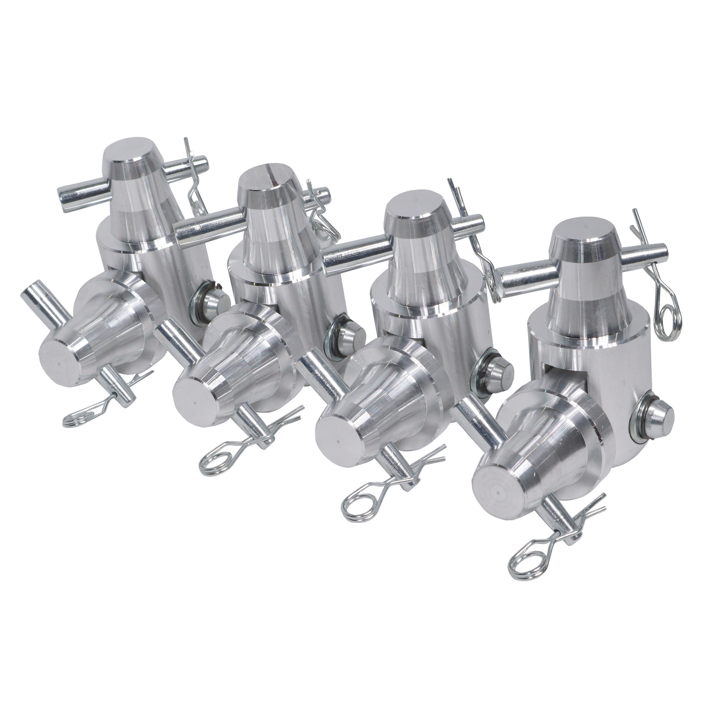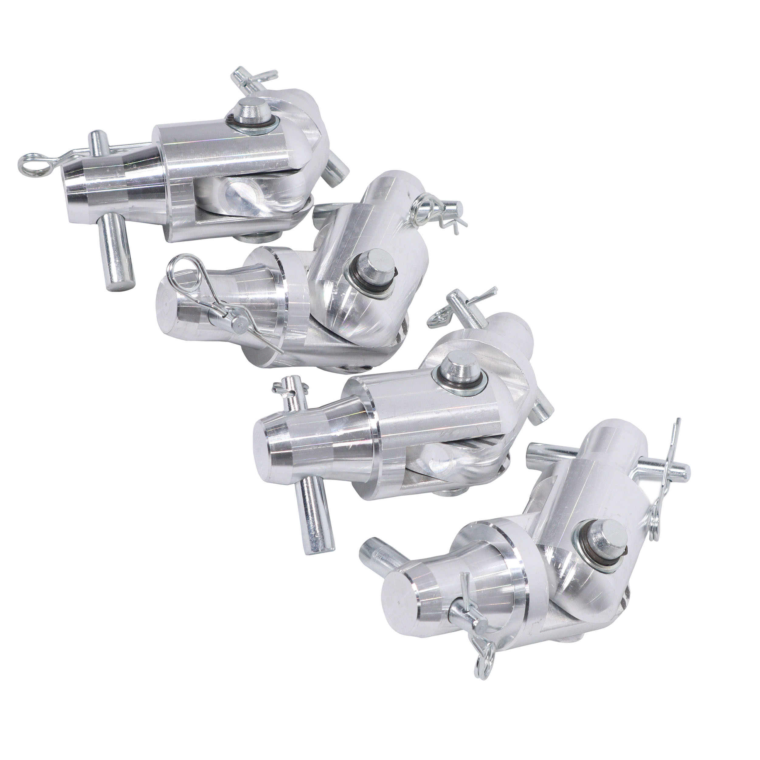 The ProX XT-HINGEX4 includes Pack of 4 Male-to-Male Tube Hinge can be used for a Ground Support Truss roof system. This hinge fits standard F31 - F32 - F34 Conical 2" Truss. The hinge sets, mainly used as hinges in towers, are also used to make various shapes with standard lengths. Mix and combine different pipes and hinges to create unique shapes, angles, and displays. Made from high-grade 6082-T6 aluminum and securely fastened with locking pins and cotter keys, the Single Tube Hinge Block can carry the weight of most stage and lighting while giving you a one of a kind display.