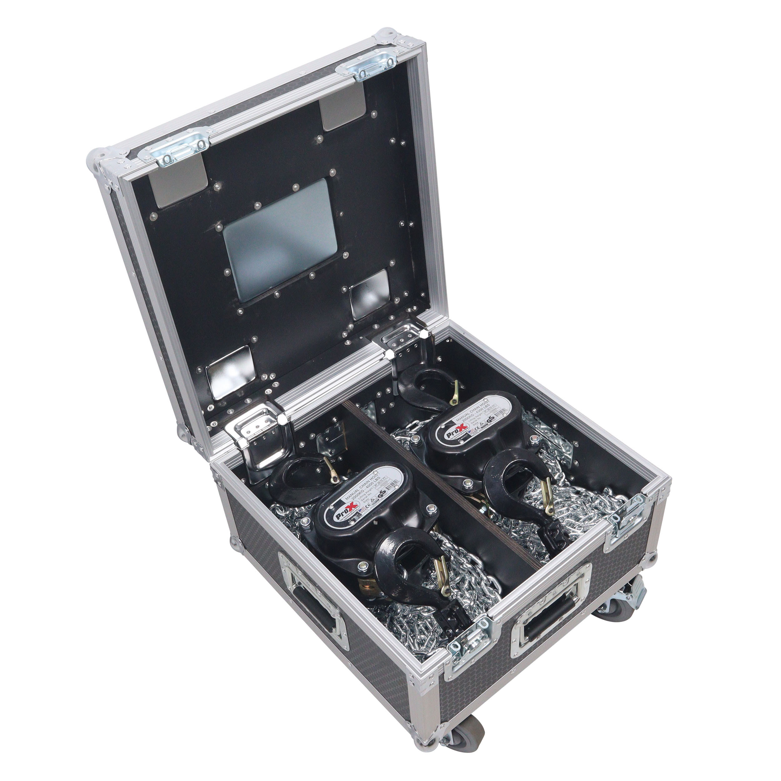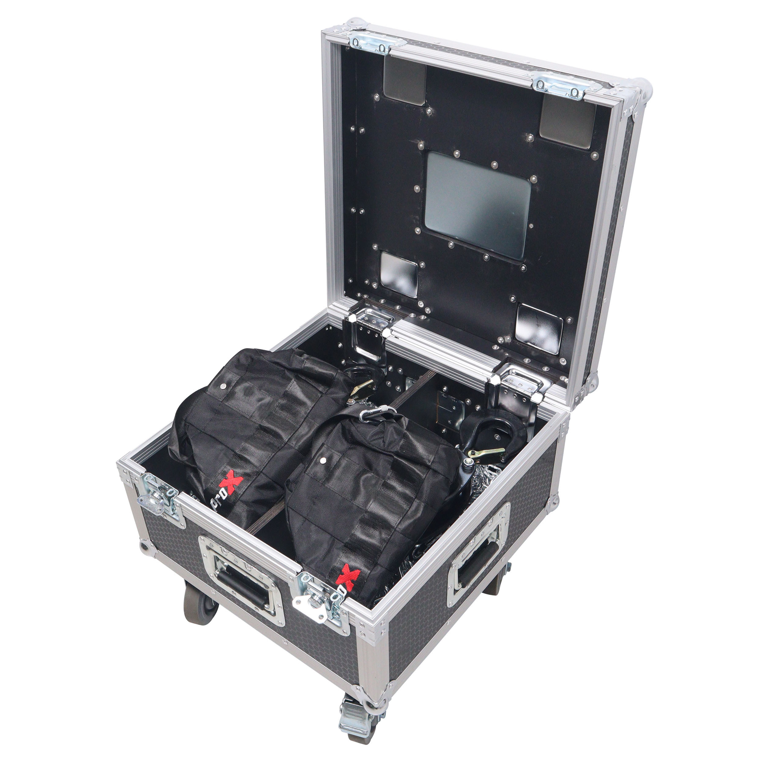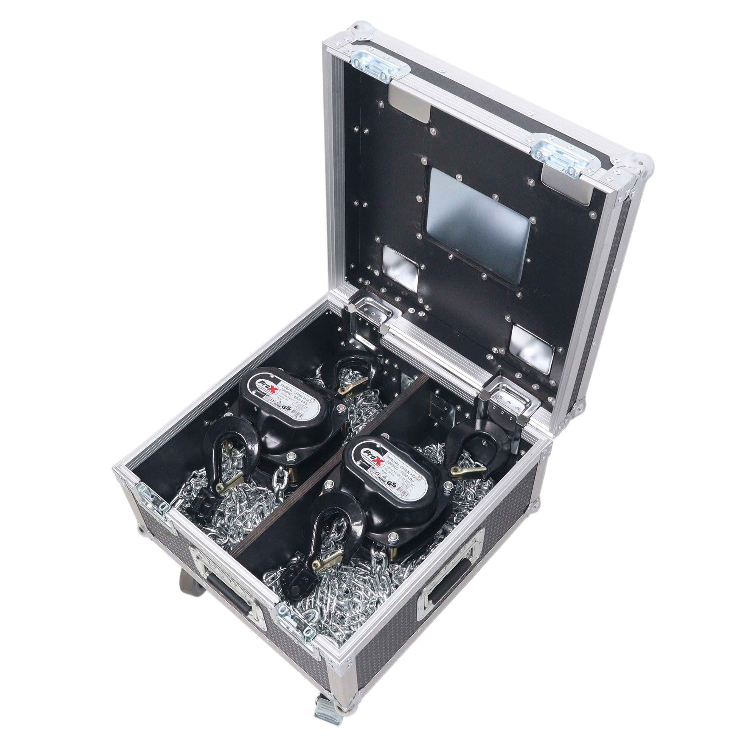 Included with each Chain Hoist is a convenient chain bag, providing you with a safe and secure place to store your chains when not in use. This helps to protect your equipment from damage and keeps them organized for quick and easy access when needed. To make transportation even more convenient, we've also included a Heavy-duty flight style road case that can hold both hoists. This makes it easy to move them around from venue to venue, ensuring that you always have the right equipment for the job.