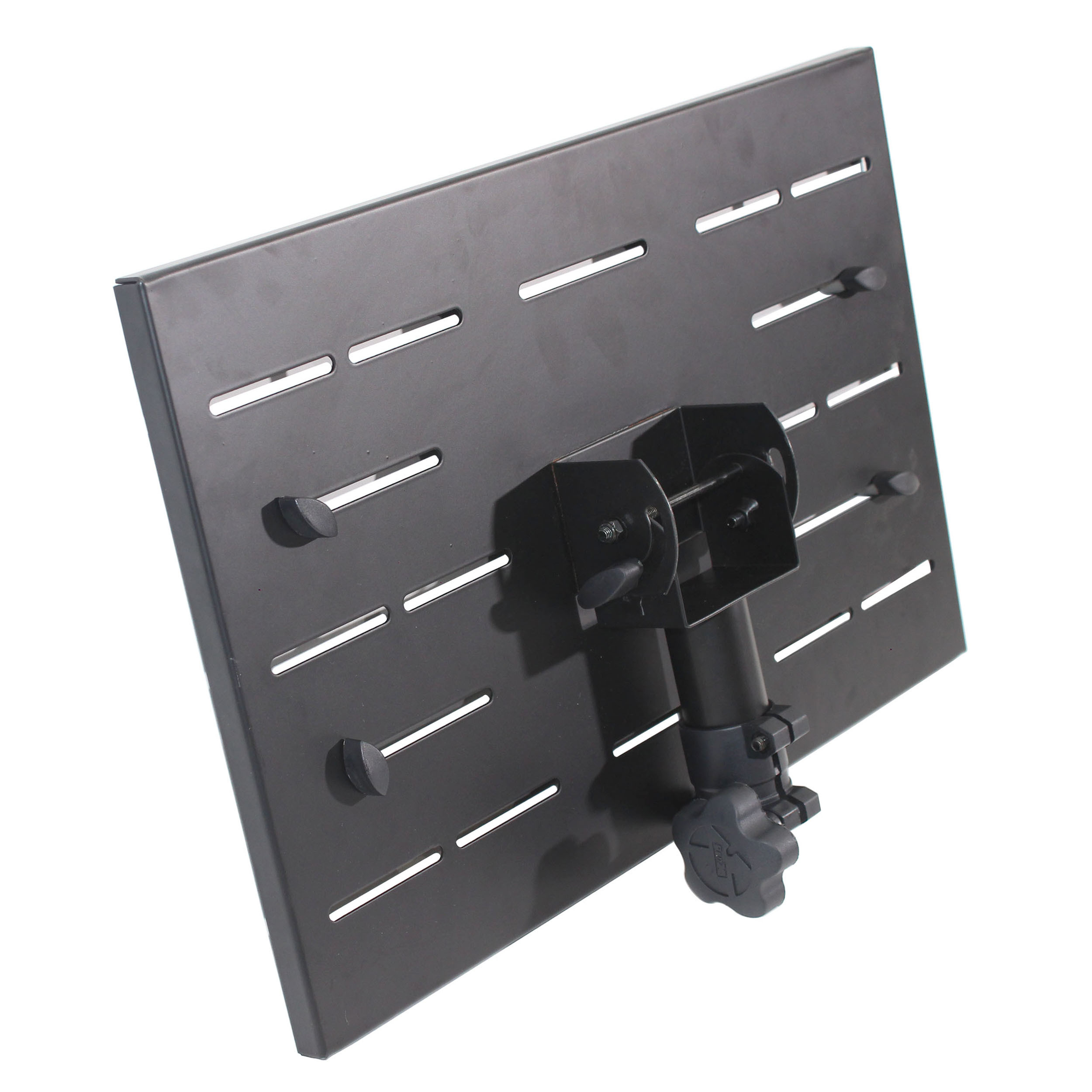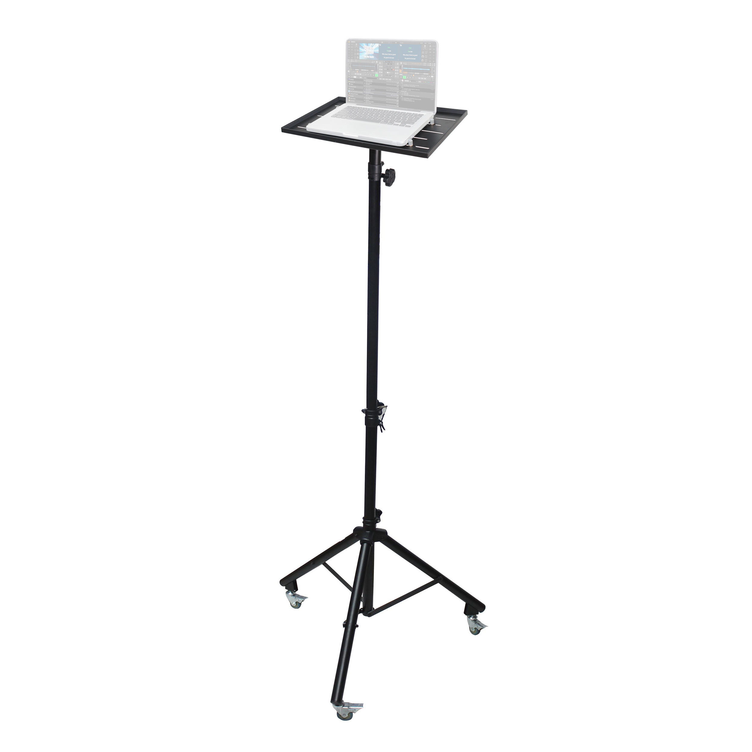 This unique and practical tray works well as a portable laptop or a notebook desk workstation for laptops, projectors, or sound equipment. It can be used by musicians, DJs, and other performers. Designed for rugged use and hard-wearing with all metal construction.