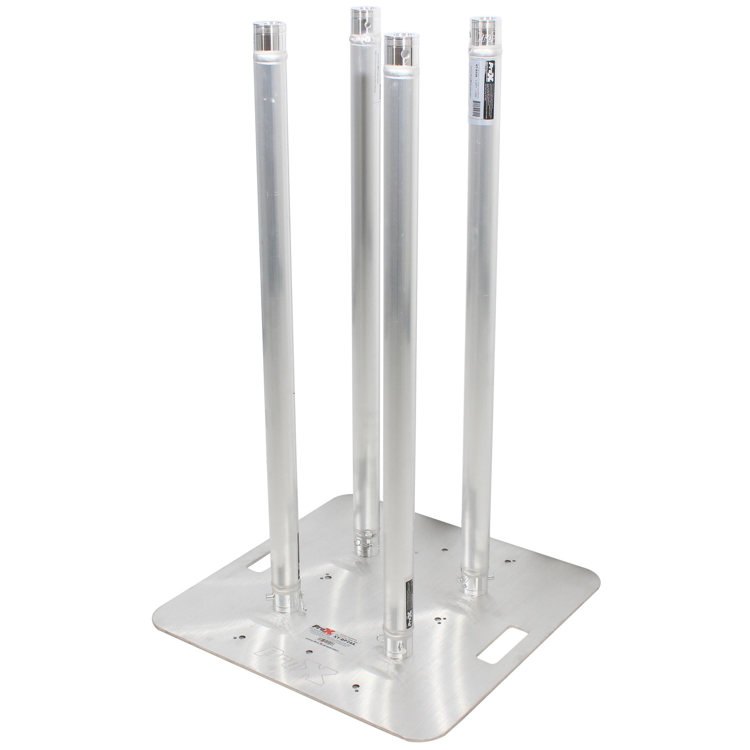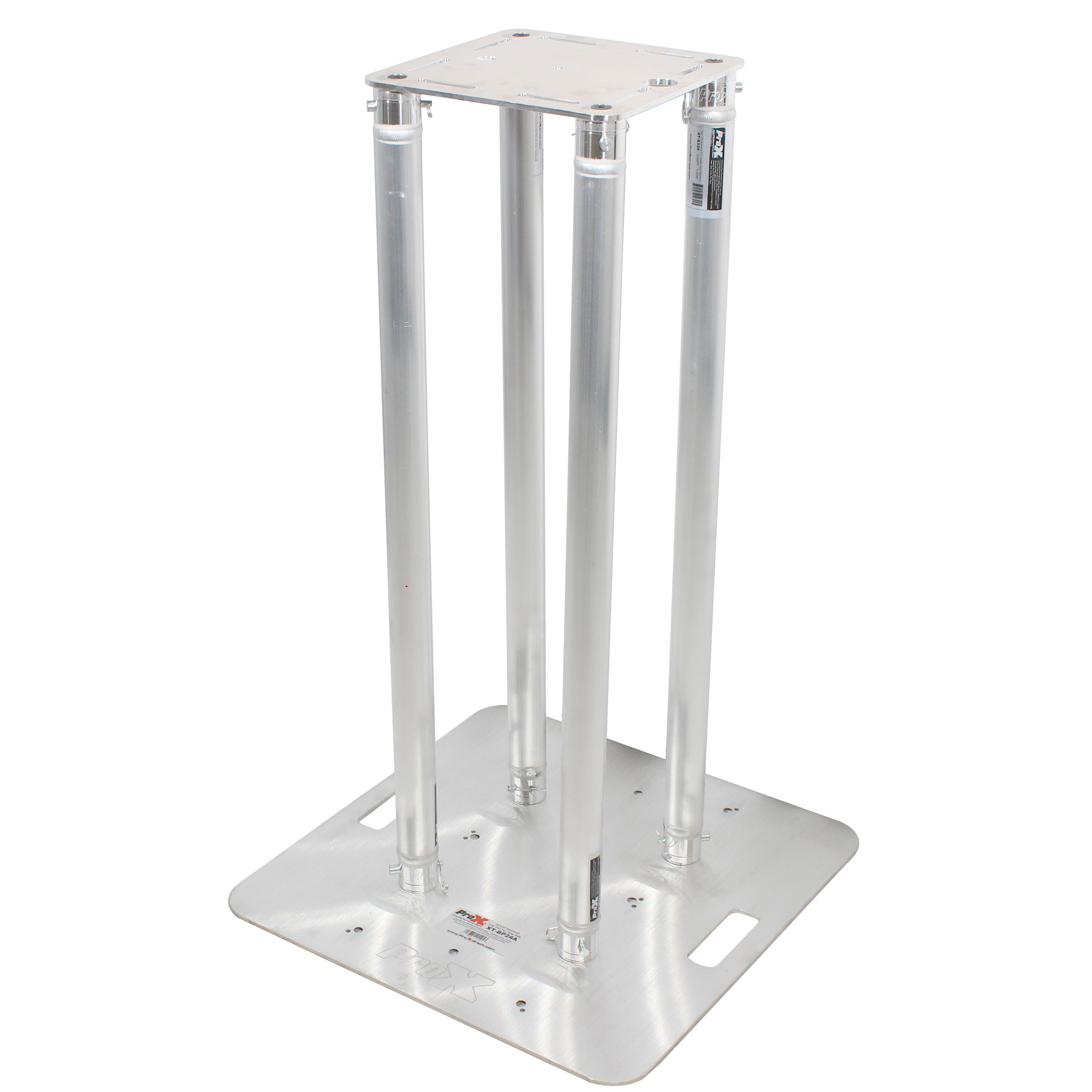 At the core are four of the ProX XT-S328 Single Tube Truss sections which are made with 2mm EN-AWT6 6082 Aluminum for safety and strength, an XT-BP24A 24 In. x 24 In. 8mm Aluminum Base Plate, and an XT-BP12A 12" X 12" F34 8mm Aluminum Top Plate W/Slots and Mounting Holes. You can use the totem exposed as "all-aluminum" or dress it up for a smooth, finished appearance with the included XTC-SQ328TS-W White Lycra-Spandex Cover.