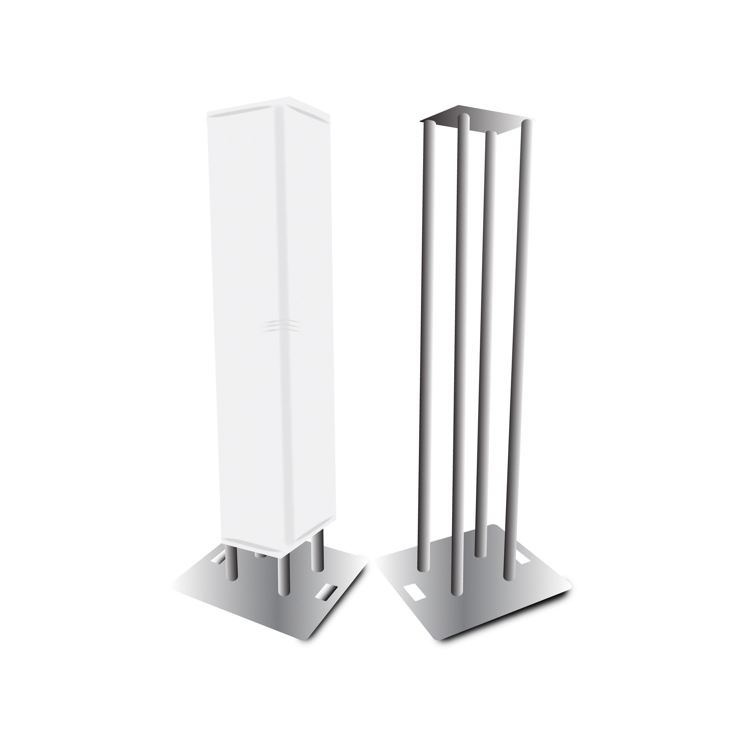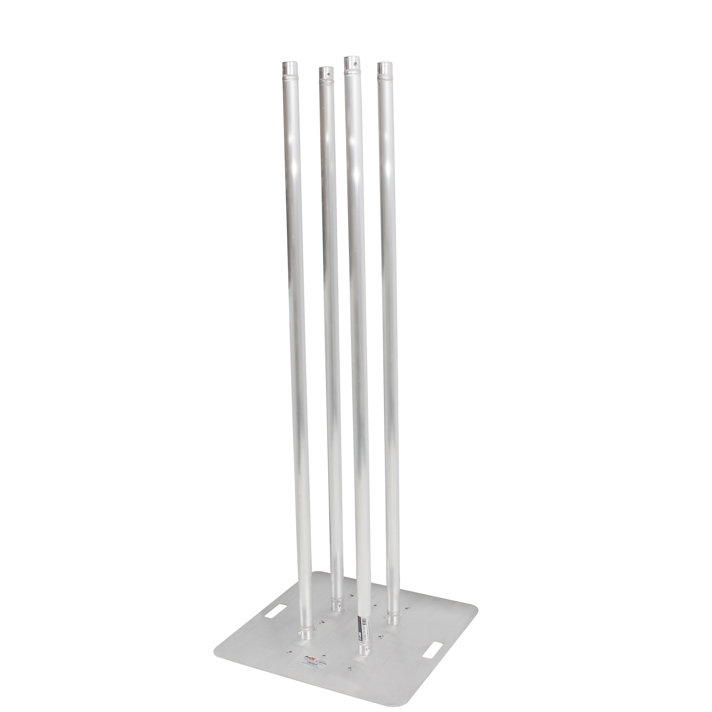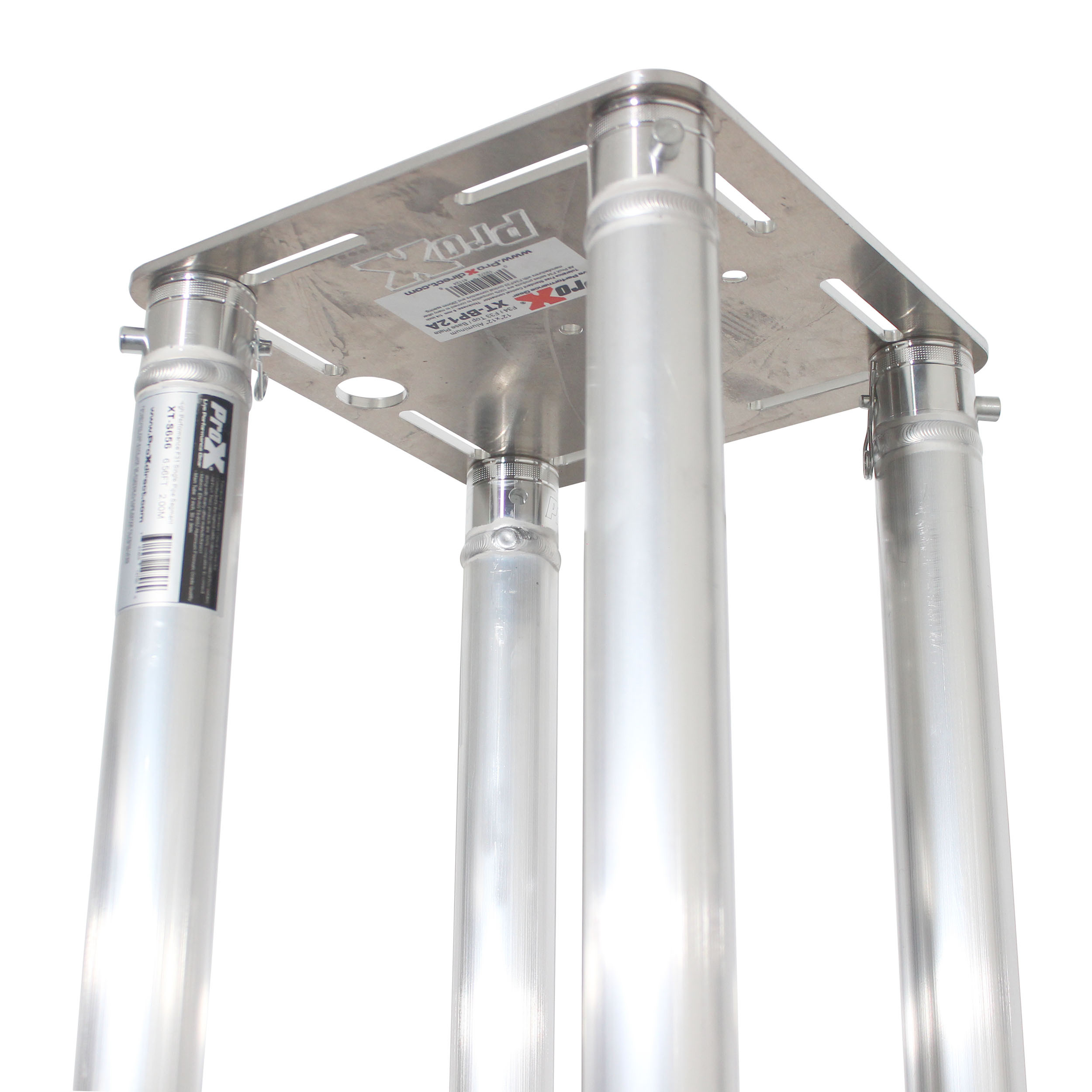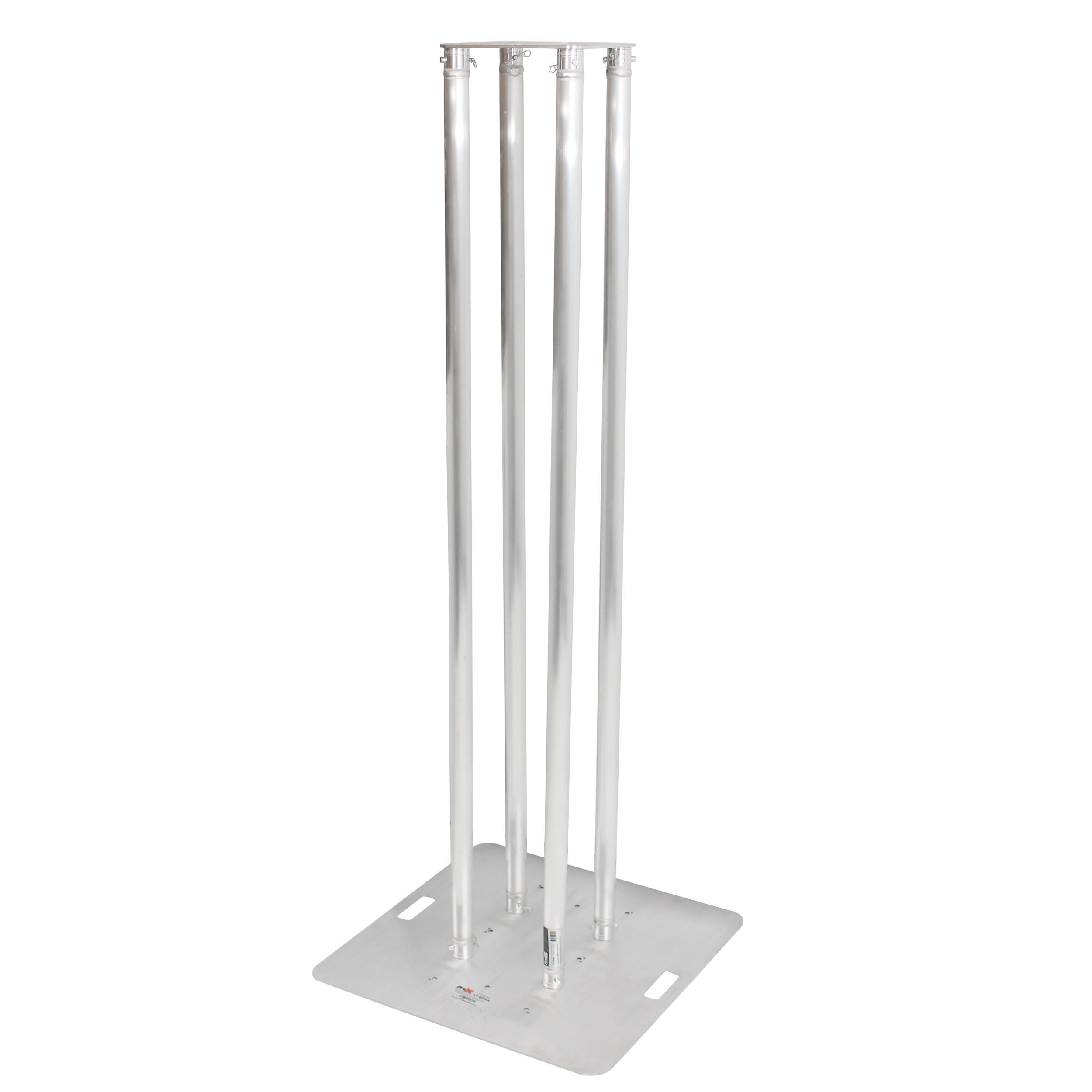 At the core is four of the ProX XT-S656 Single Tube Truss sections which are made with 2mm EN-AWT6 6082 Aluminum for safety and strength, an XT-BP30A 30 In. x 30 In. 8mm Aluminum Base Plate, and an XT-BP12A 12" X 12" F34 8mm Aluminum Top Plate W/Slots and Mounting Holes. You can use the totem exposed as "all-aluminum" or dress it up for a smooth, finished appearance with the included XTC-SQ656TS-WBG White Lycra-Spandex Cover.