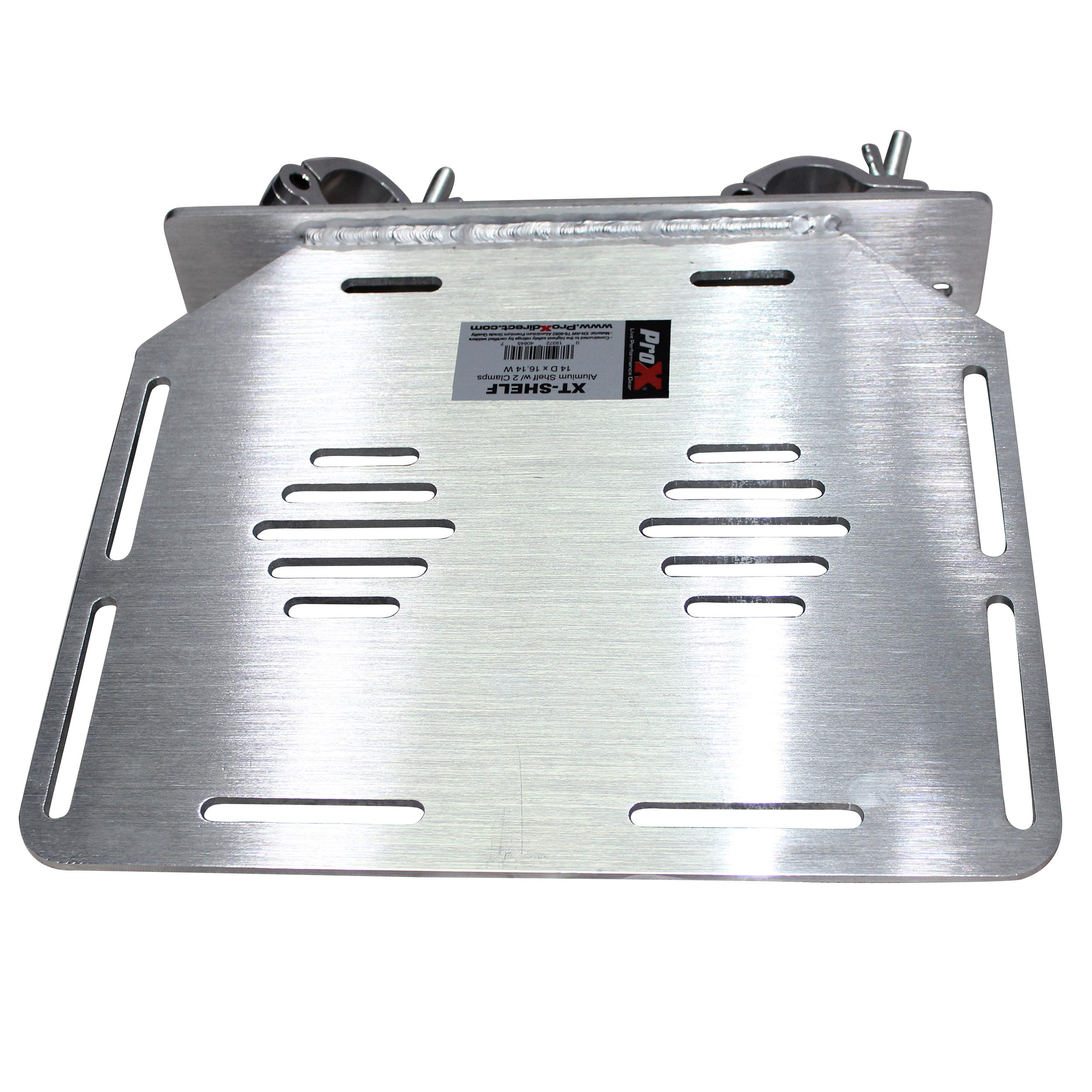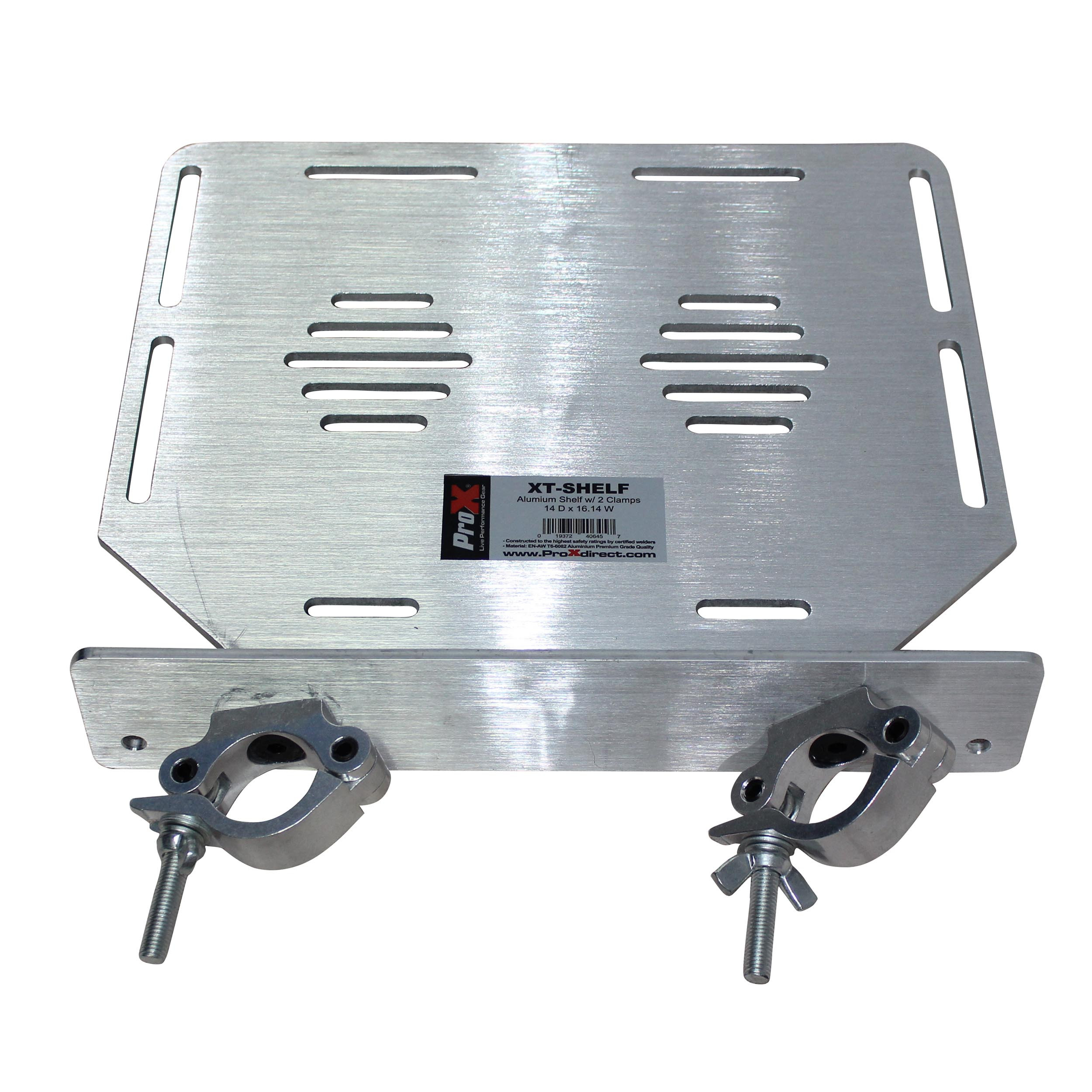 TheProX XT-SHELF Aluminum Truss Shelf W-2 Clampsis the best truss shelf on the market today. The XT-SHELF is made from heavy-duty aircraft aluminum and constructed to the highest safety ratings by certified welders. It comes with two pro slim clamps and is designed to hold up to 220 lbs.