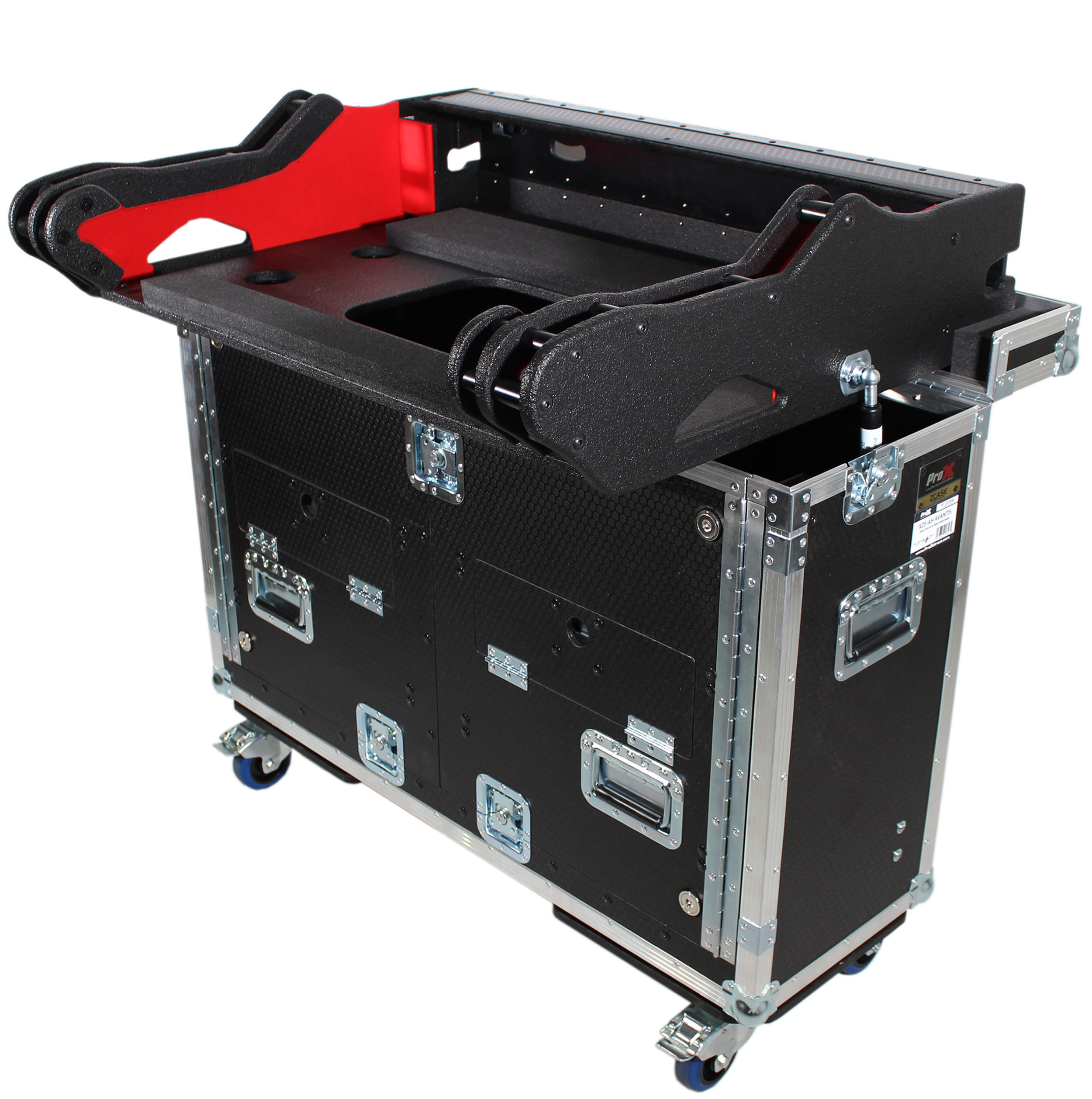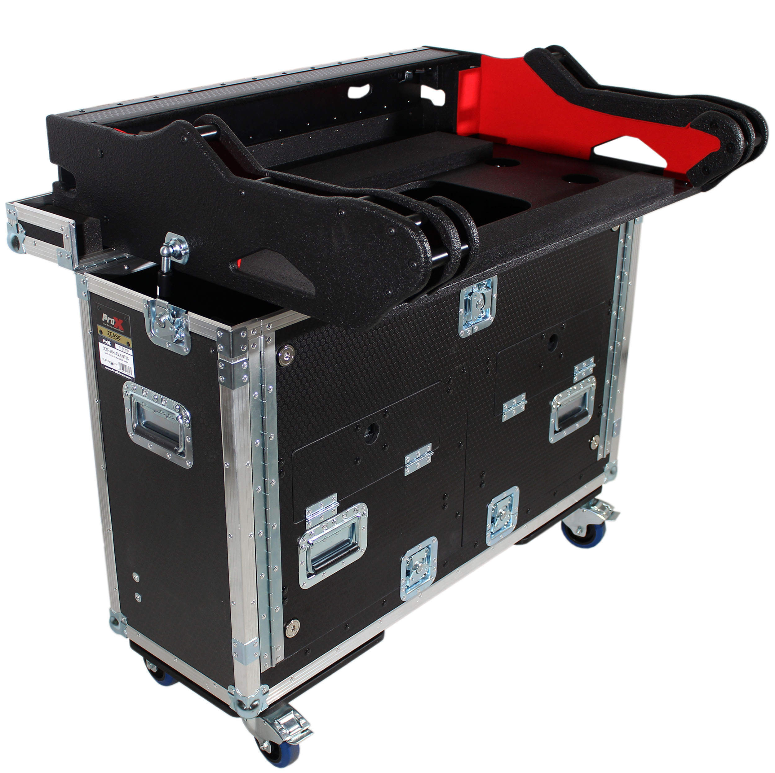 The ProX Exclusive XZF-AHAVANTIS Flip-Ready' case is Made in Poland exclusively for ProX by ZCase These cases for digital audio consoles are designed and built to make transport and setup quick and very easy. No more lifting heavy consoles into place on a table or stand. The patent-pending hydraulic lift system provides easy movement from a vertical transport position to the horizontal operational position using just one finger.