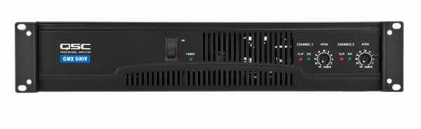 The V in the model name designates the ability to directly drive 70-volt and/or 100-volt distributed loudspeakers. The CMX500V must be configured for bridged-mono operation in order to directly drive high-impedance systems.