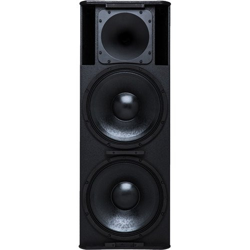 The E215 is a trapezoidal, two-way loudspeaker featuring dual 15-inch 500 W (continuous) die-cast aluminum frame woofers with 3.5-inch voice coil. It employs a Frequency-shading topology across both woofers to maximize low frequency output, while minimizing interference through the HF crossover transition. It is intended for use when high-power and extended low-end are needed from a single full-range loudspeaker. A large format 2.8-inch compression driver attached to the 75 DMT' waveguide assures that even distant listeners will be well covered.