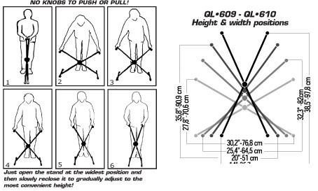 Designed exclusively by Quik-Lok engineers, the "Auto-Disc" is the most innovative and simplest locking device ever made for any "X" stand. The ingenious system houses four positive-lock height positions and is completely sealed exposing no parts. The mechanism allows the user to instantly open and close the stand from the top tiers without having to push or pull any knobs or buttons on the center disc. Heavy duty 30 mm x 30 mm steel tubing, the single-brace QL-609 can hold keyboards up to 180 lbs. Easily expandable by adding any of the available QLX accessories.