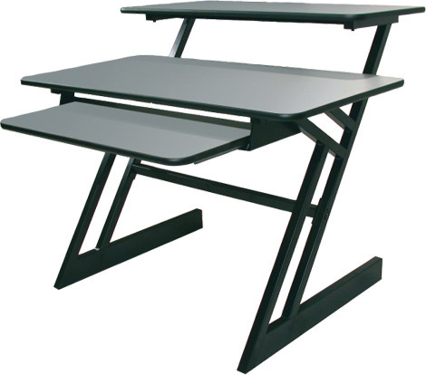Triple Shelf Workstation with wood tops and pull-out shelf.