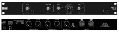 There is no easier or smarter way to biamp your system than with the SAC 22 Crossover. The Mono Sub Output provides a separate mono sum of the Left and Right Low Outputs. A 100 Hz low pass filter may be activated for this Output. The Subwoofer Output may be used along with the Left and Right Low Outputs.