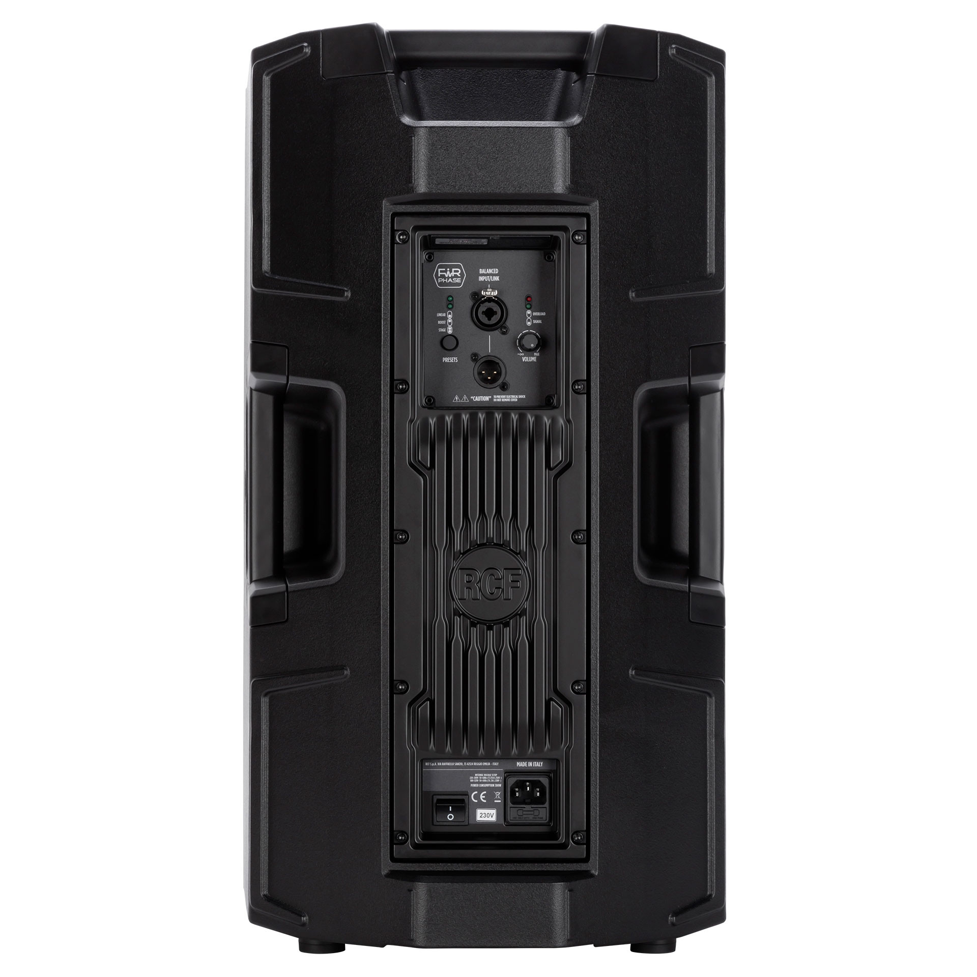Merging RCF proprietary FiRPHASE and Bass Motion Control DSP processing, perfectly tuned for each model, the audience will experience absolute clarity and deep, powerful bass response. The sleek cabinet uses a special polypropylene composite material with an M-brace internal reinforcement, making it easy to carry and secure to install on a pole, flown-, wall-, or truss-mounted using the multiple rigging points available.