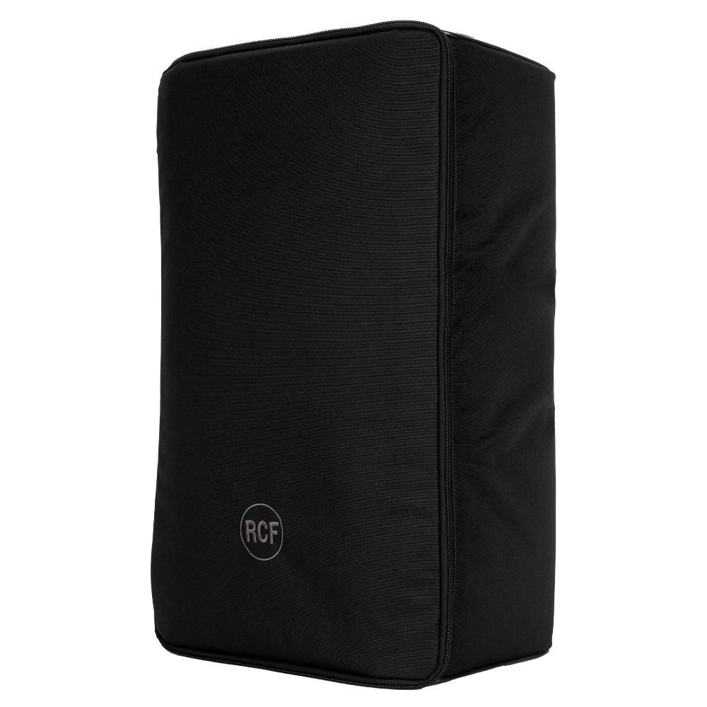 Padded Cover for ART 910-A, ART 9 SERIES. It features heavy-duty weatherproof polyester outer fabric, foam rubber padding, and zip openings with Velcro fasteners. The frontal cover can be opened and blocked with velcro on one side. It features multiple openings for handles, for the rear connection panel, and the pole mount cap.