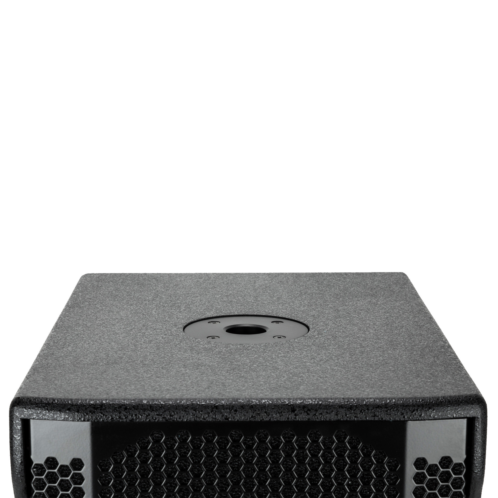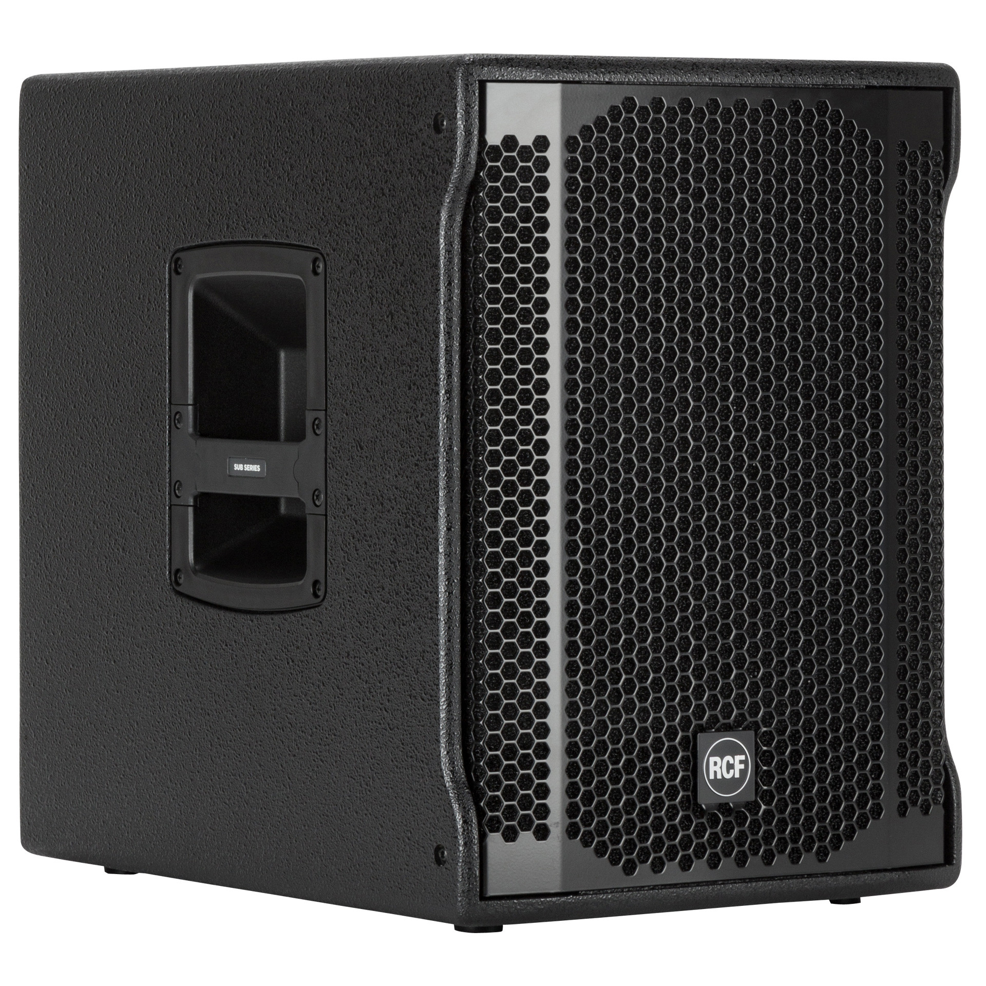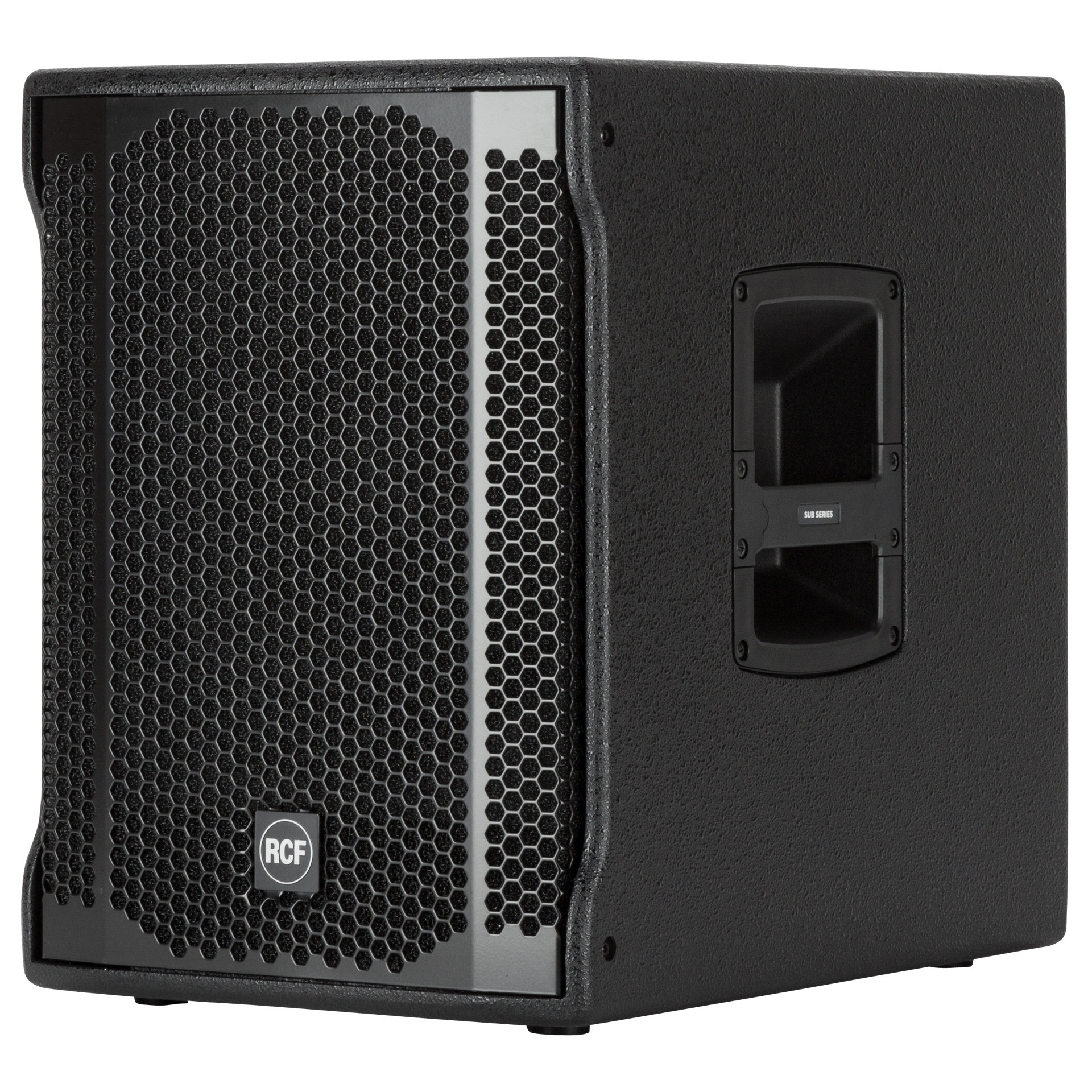 CABINET & MECHANICSThe RCF cabinets are made of birch plywood coated with a textured black finish. The subs are stackable and light-weight, for easy set-up and tear down, thanks to the ergonomic handles. A pole receptacle allows the use of the box in various configurations. The powder coated front grille integrates a special transparent-to-sound foam backing on the inside to further protect the transducers from dust.