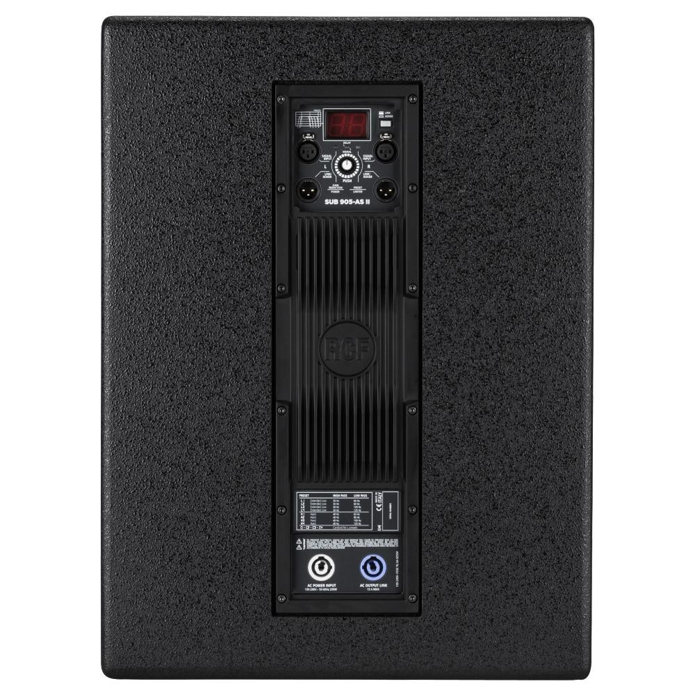 The SUB 905-AS II active subwoofer is ideal for building powerful subwoofer satellite systems where compactness and high sound levels are required at the same time. The SUB 905-AS has the most advanced RCF woofer technology, coupled with a powerful 2200 W digital amplifier. It offers the perfect blend of bass reproduction, high SPL and compact dimensions for mobile use by bands or DJs.