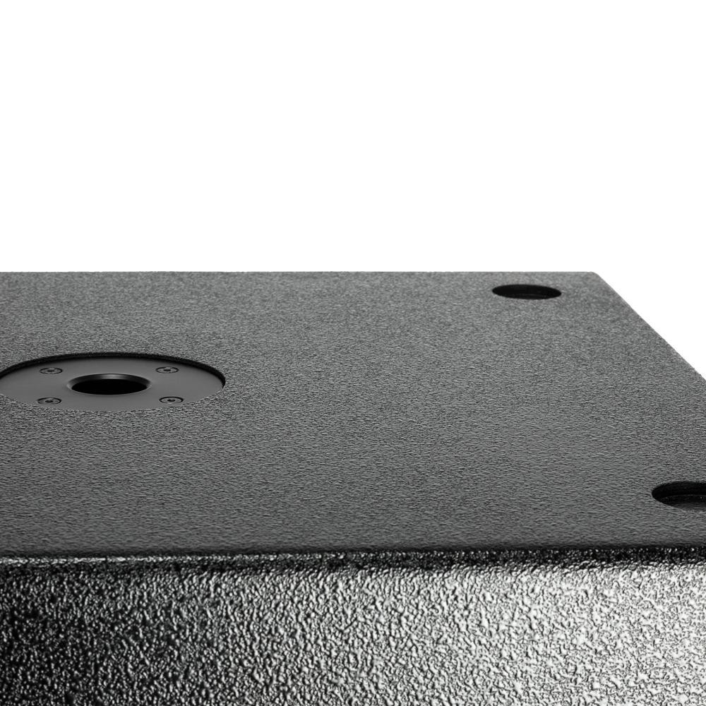 Cabinet & MechanicsThe RCF cabinets are made of the best multi-ply hardwood coated with a textured black finish. The subs are stackable and light-weight, for easy set-up and tear down, thanks to the ergonomic handles. A pole receptacle on top and side allows the use of the box in various configurations. The powder coated front grille integrates a special transparent-to-sound foam backing on the inside to further protect the transducers from dust.