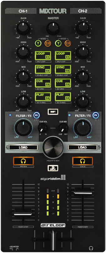 CHANNEL-STRIP WITH CLUBMIXER-DESIGN & QUALITY. The strong, durable, full-size control knobs and 45mm Pro-Faders are set out in the same way as a class-leading club mixer. The three-band EQ, gain trim pots, bipolar filters and VU meter (switchable between master and pre-fader) ensure you have everything you need to perform. All controls have been rigorously tested to ensure a high-quality performance every time you play, and the whole MIXTOUR carries with it a sense of solidity and reliability.