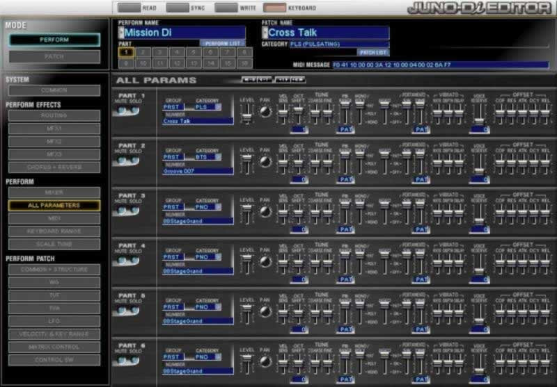 Travel Light, Play Heavy On stage or in the streets, the JUNO-Di is a traveling musician's dream. It's lightweight, it can run on batteries, and it's easy to use, yet it performs and sounds like a heavyweight synth. It's packed with a wide variety of top-quality sounds over 1,000 to choose from! It has a friendly "direct access" control panel for easy editing and a Song Player for larger-than-life performances. First-timers and pros alike will love this friendly, portable, great-sounding synth.