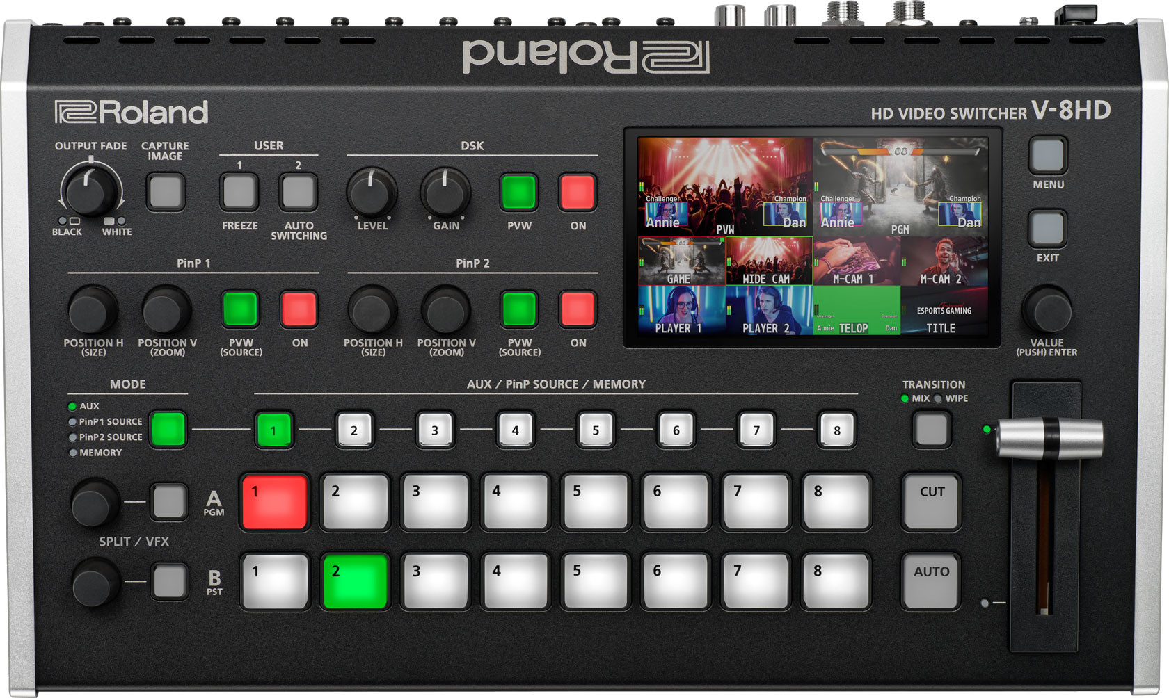 Seamless Memory Recall With the V-8HD, storing and recalling unique looks requires only a few button presses. The eight preset memories and powerful composition effects engine work together to provide a completely seamless load between the different looks.