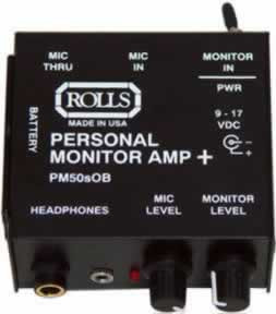 The PM50sOB mixes a microphone signal with a stereo monitor signal, to a headphone output. The microphone signal is passed through (hard-wired for no signal degradation) to a mixer or pre-amplifier.