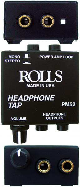 The PM52 is for connecting headphones to a speaker line. The 1/4" Mono/stereo loop jacks are for connecting many boxes in series. There are 2 headphone jacks and volume control. The PM52 uses the speaker line signal for power, and uses no batteries.