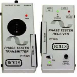 The PT102 consists of two units, a transmitter and receiver. The PT102 transmitter creates a pulse that is sent through an audio system. The receiver then picks up the signal at various intervals in the system, and indicates whether or not the system is in or out of phase.