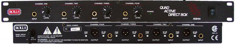 Each channel of this powerful impedance matching device features two paralleled 1/4" inputs (one on the front, one on the rear), an input level control, and an electronically balanced XLR output. The output section features a 30 dB Pad, and a Ground Lift switch.