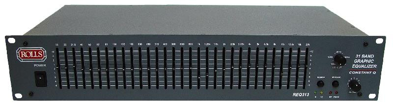 The ROLLS REQ313 graphic equalizer is intended for room equalizing or sound shaping and the approximate frequency response curve can be seen graphically by the settings of the frequency controls. Recording and broadcasting studios, sound contractors and musicians will appreciate the low noise, straightforward design, and versatile signal control of the REQ313. The equalization filters in the REQ313 are constant bandwidth (constant Q). The bandwidth of each individual filter is narrow enough to prevent unwarranted interaction between filters, yet wide enough to produce exactly the type of correction curve demanded by even the most unusual acoustic surroundings.